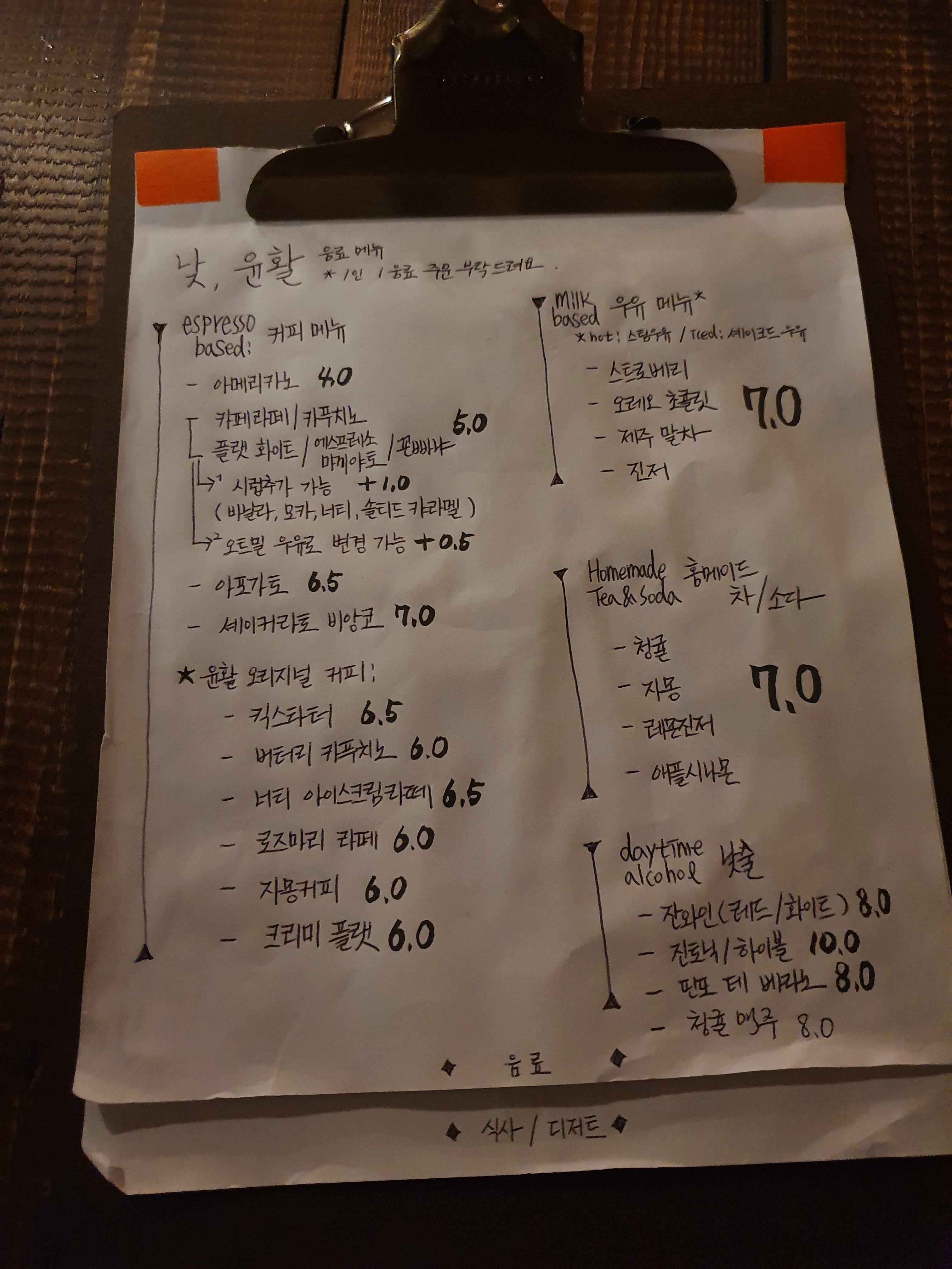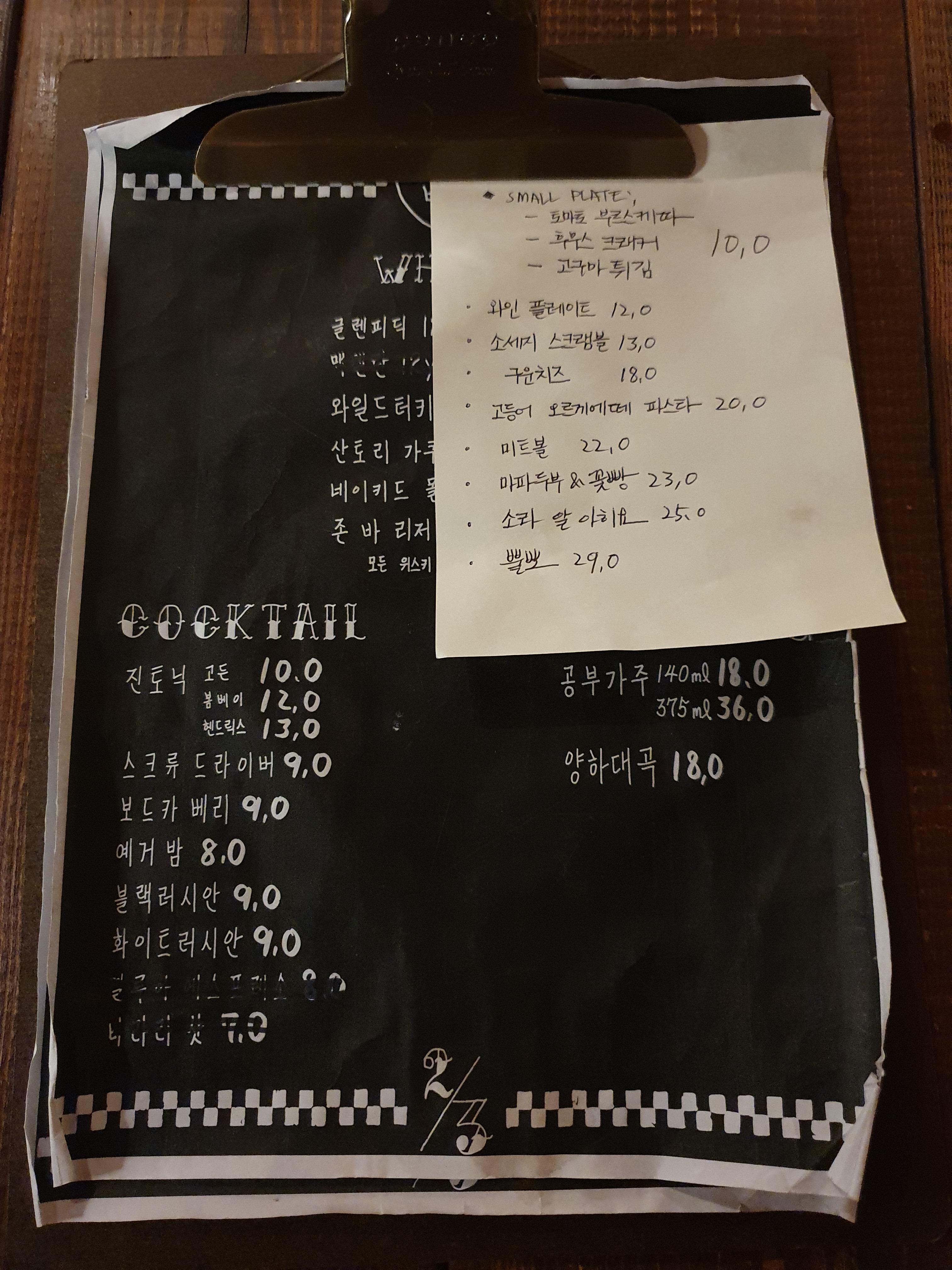 밤 윤활에 방문했더니 주류 메뉴판을 주신다.