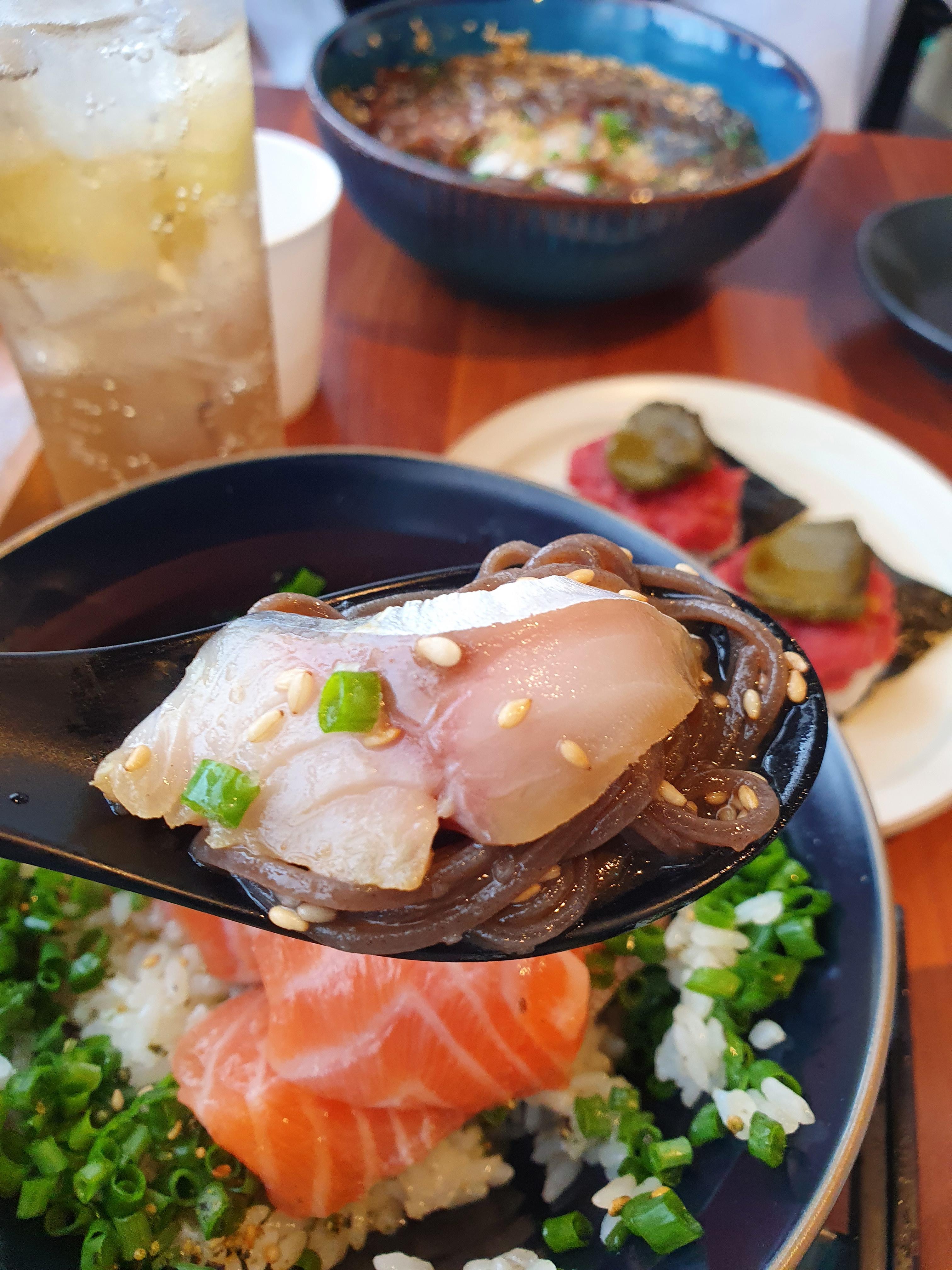 우리는 고등어 참깨 소바와 누룩연어덮밥