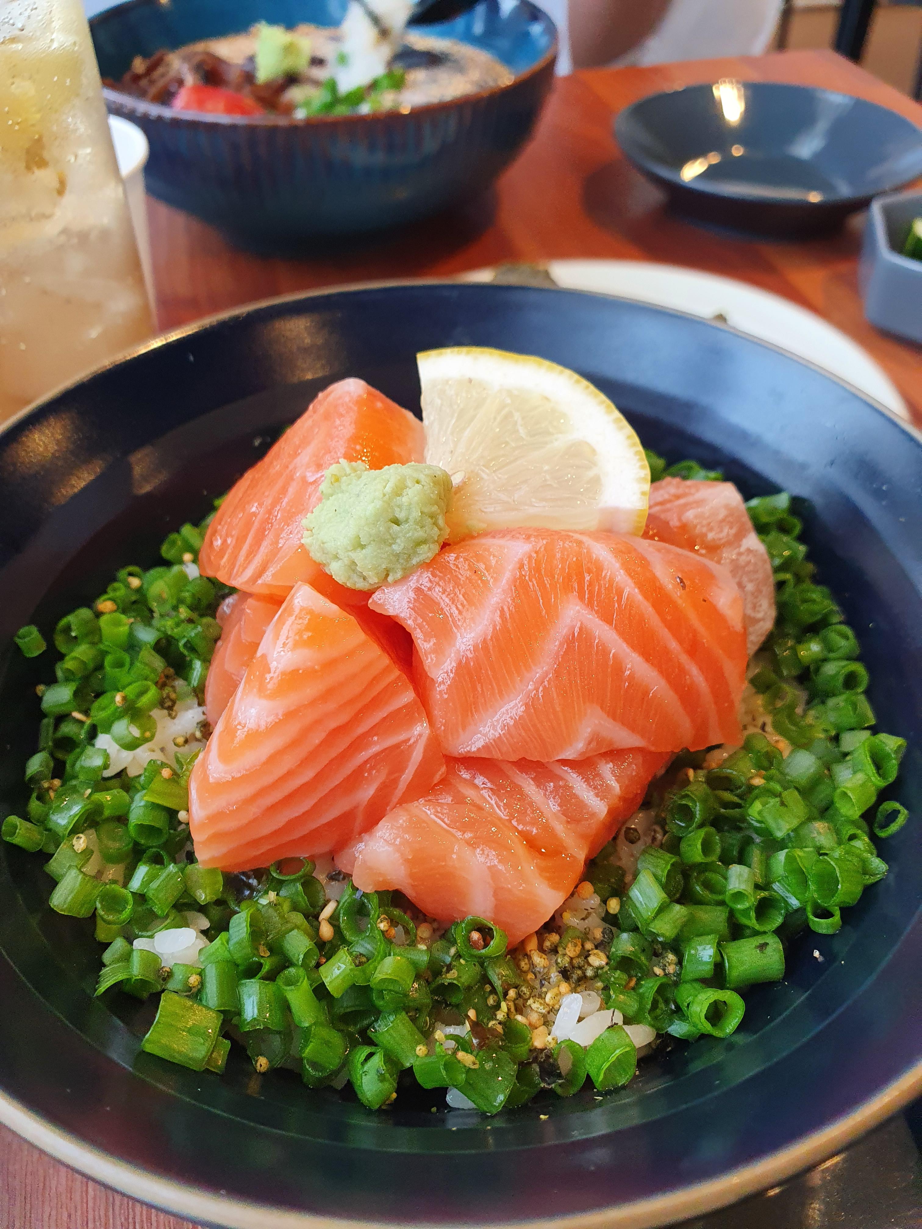 다양하게 맛보려고 연어 덮밥을 주문했지만,
