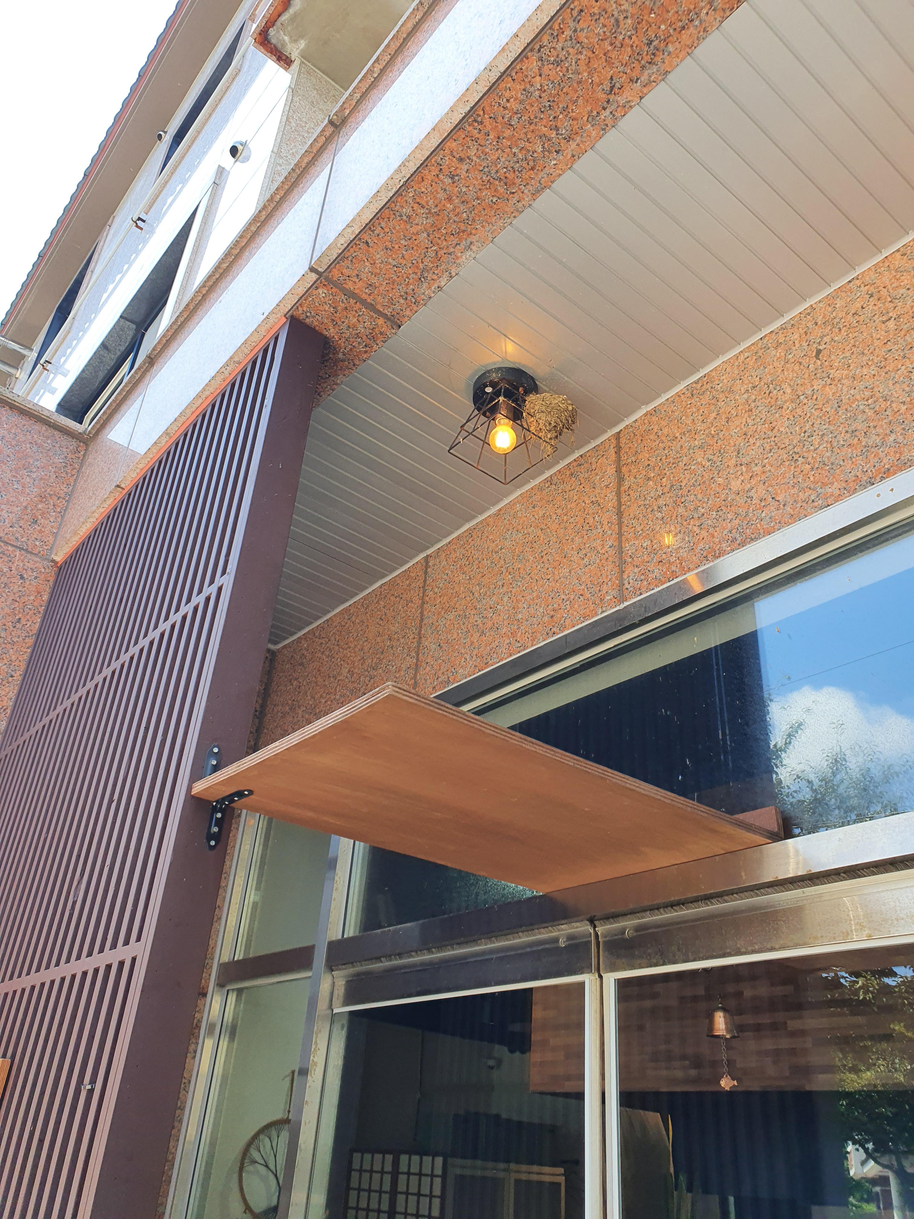가게 조명에 제비가 집을 지었는데,