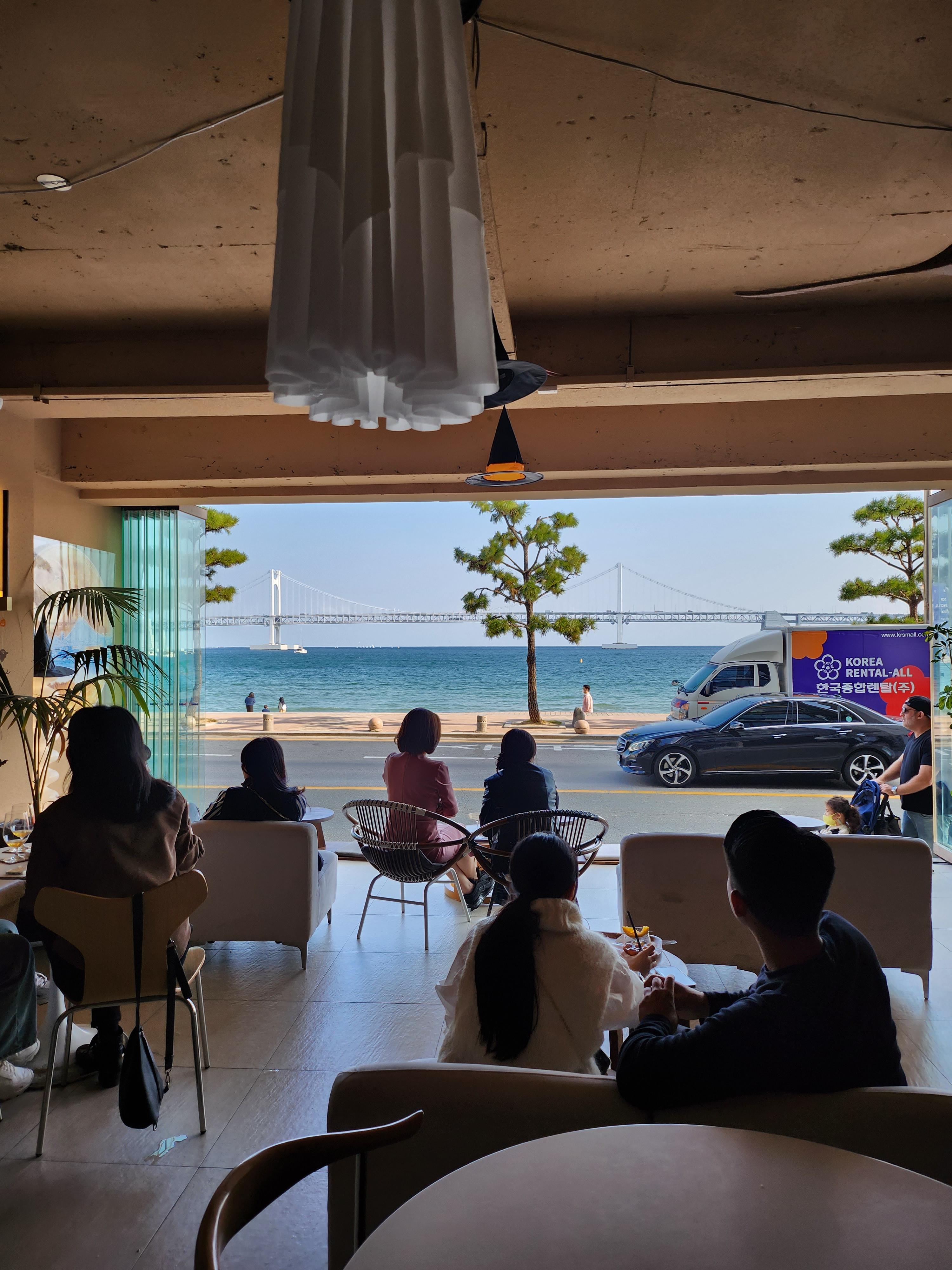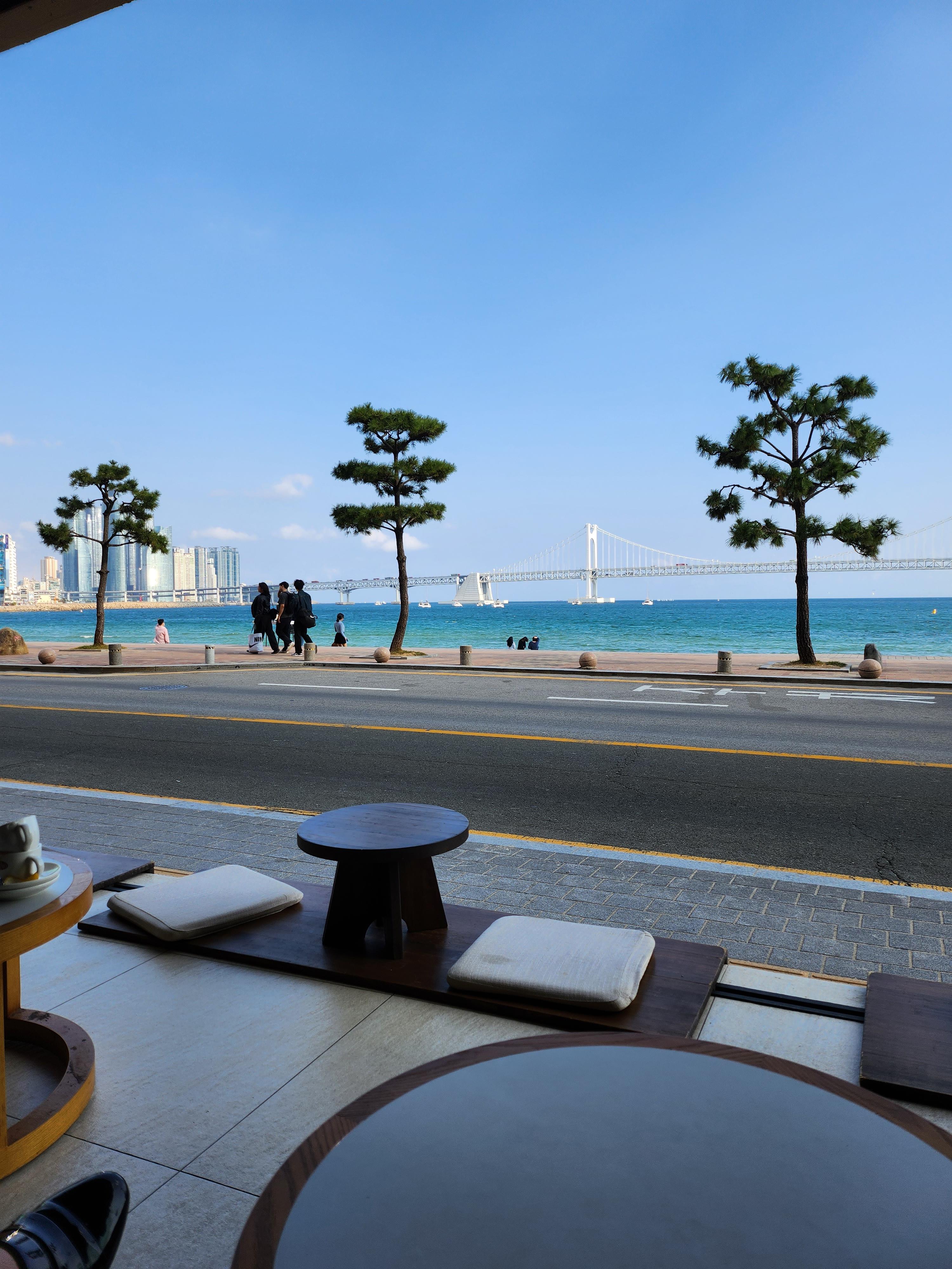 날씨가 좋은 날에는 이렇게 폴딩도어를 열어두고, 춥거나 비가 내리는 날에는 문을 닫아두는 것 같았다. 여행의 반은 날씨라더니 좋은 날씨 덕분에 부산에서의 행복한 추억이 하나 더 쌓인 것 같다.