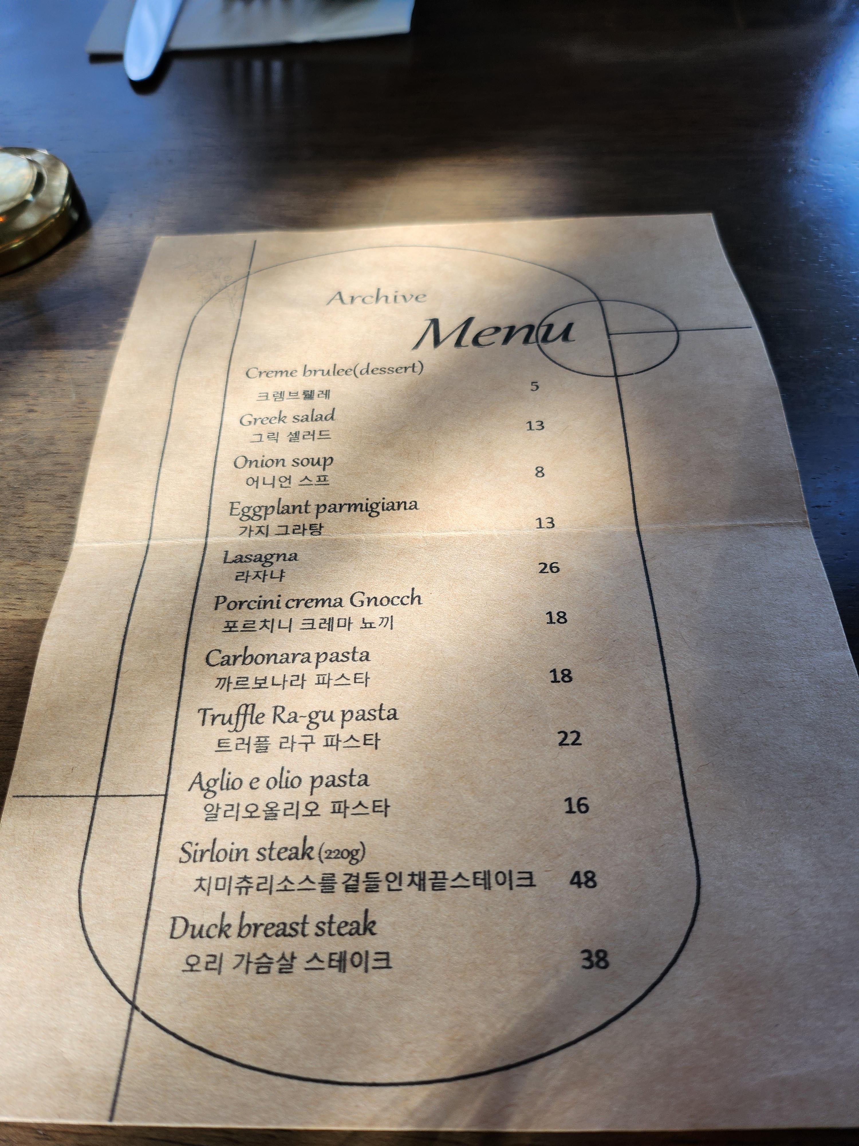 원래 아카이브의 추천메뉴는 라자냐였는데,