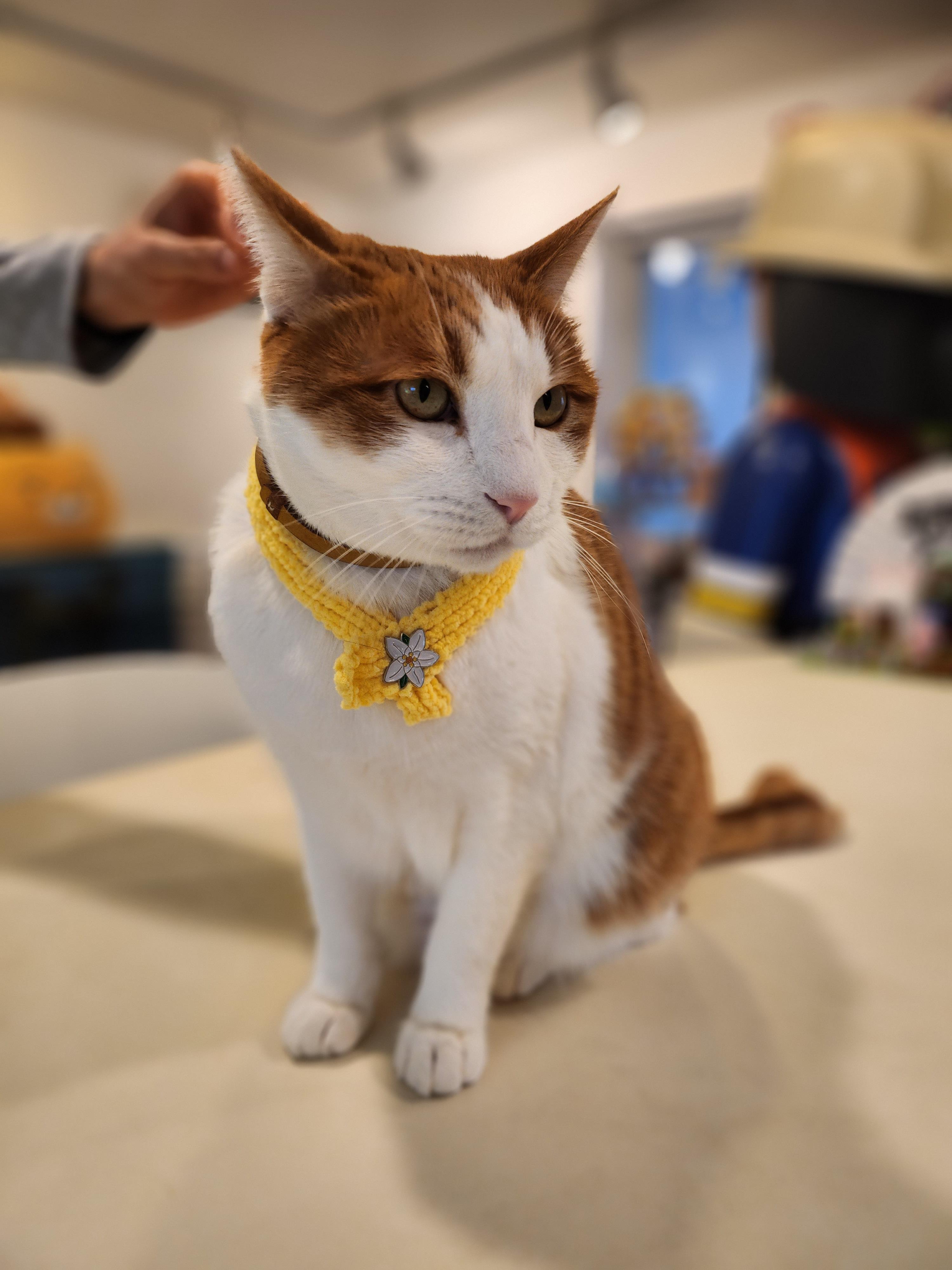 고양이들이 몸에 뭘 두르거나 착용하는걸 싫어하는 반면, 채영이는 어릴적부터 스카프와 이름표, 하네스까지 해주면 해주는대로 적응을 잘하는 고양이였다.