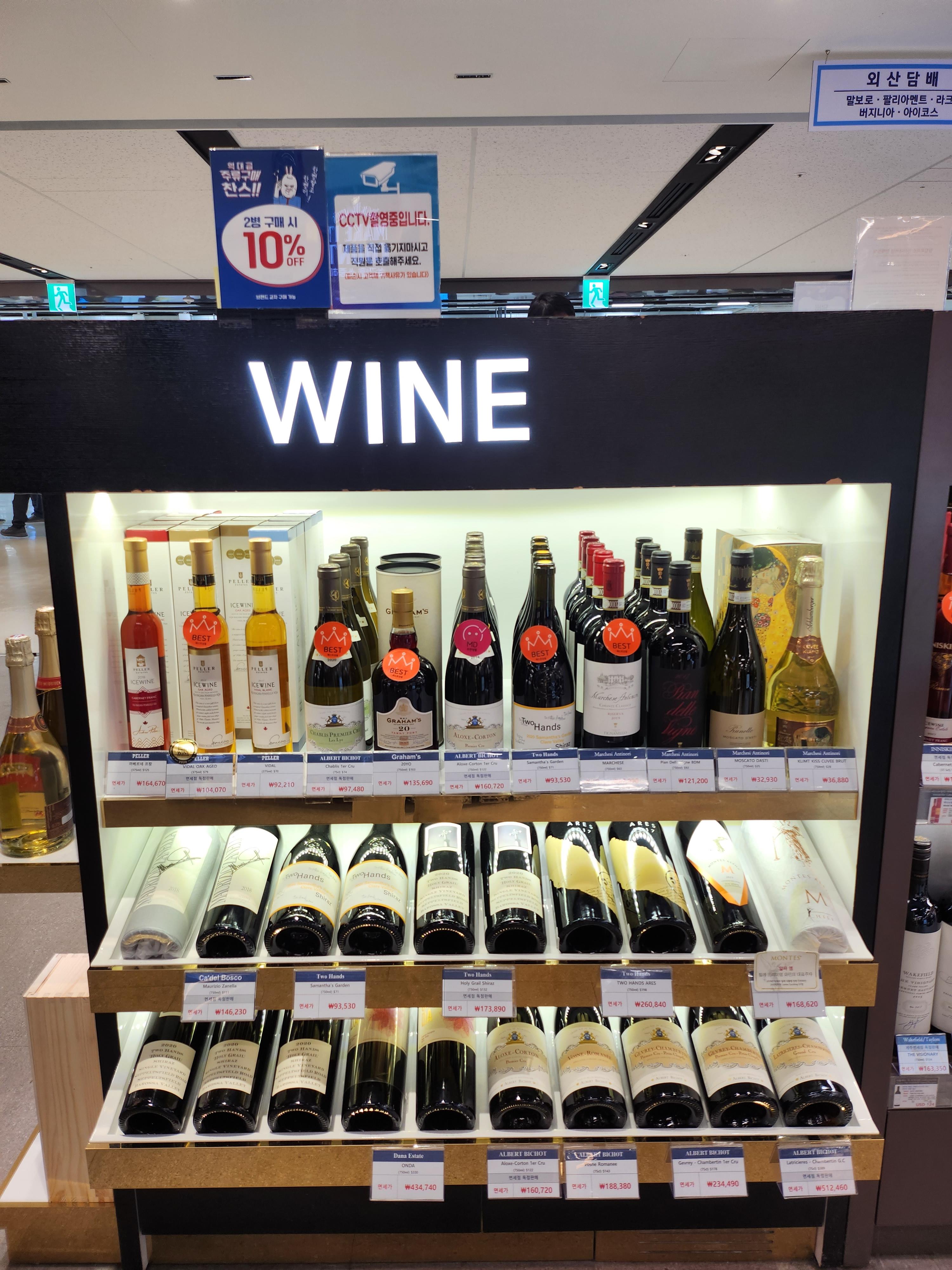 요즘 와인도 대중화가 되면서 면세점에도 와인리스트가 늘어나긴 했지만 아주 다양하지는 않아서, 좋아하는 와인이 있고 가격이 저렴하다면 구매해보는 것도 나쁘지 않을 것 같습니다.