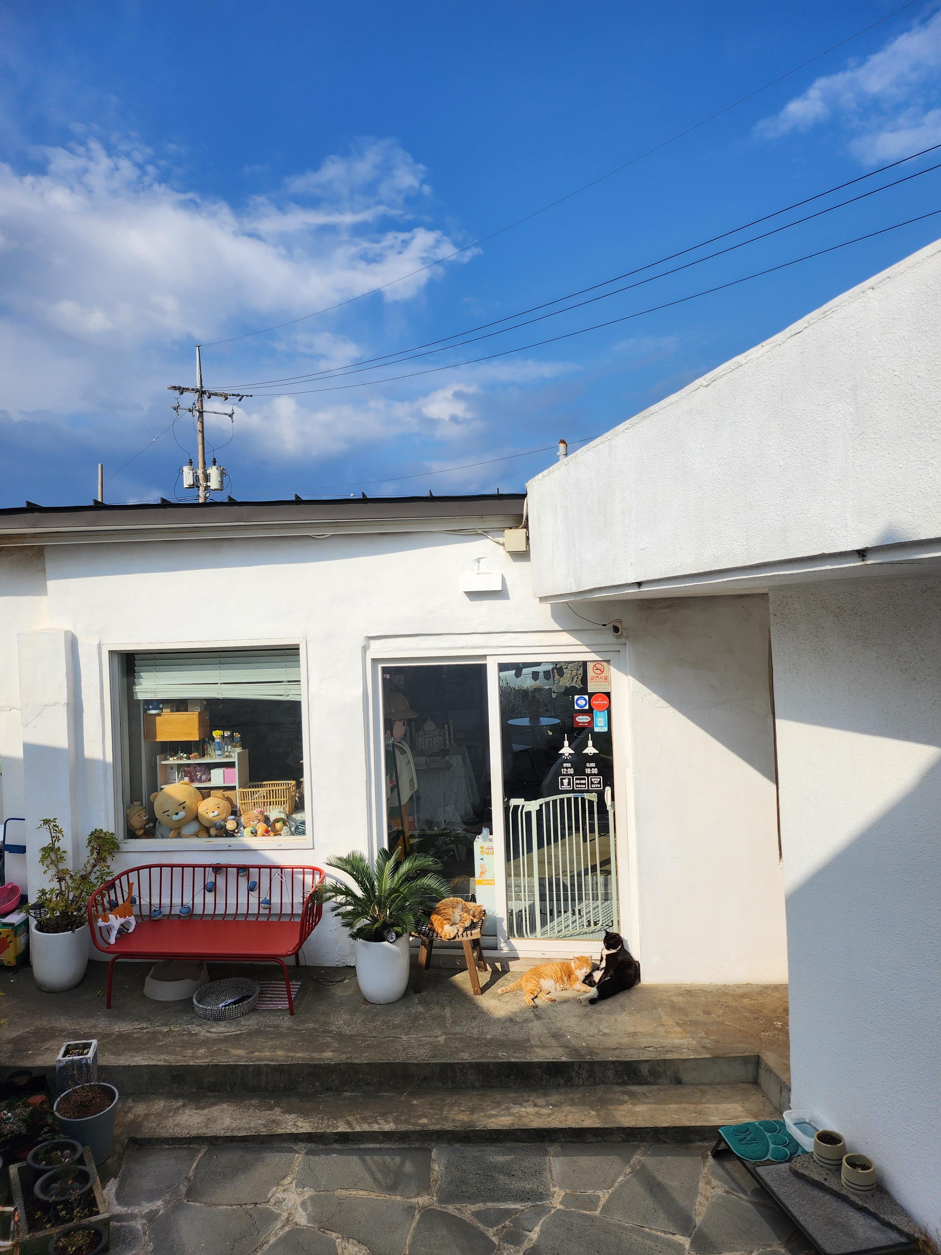 브릭스제주 카페 마당에 자리를 잡은지 벌써 6년차에 접어드는 탄광이와 옆동네에서 영역을 빼앗기고 온 턱시도 고양이 필통씨