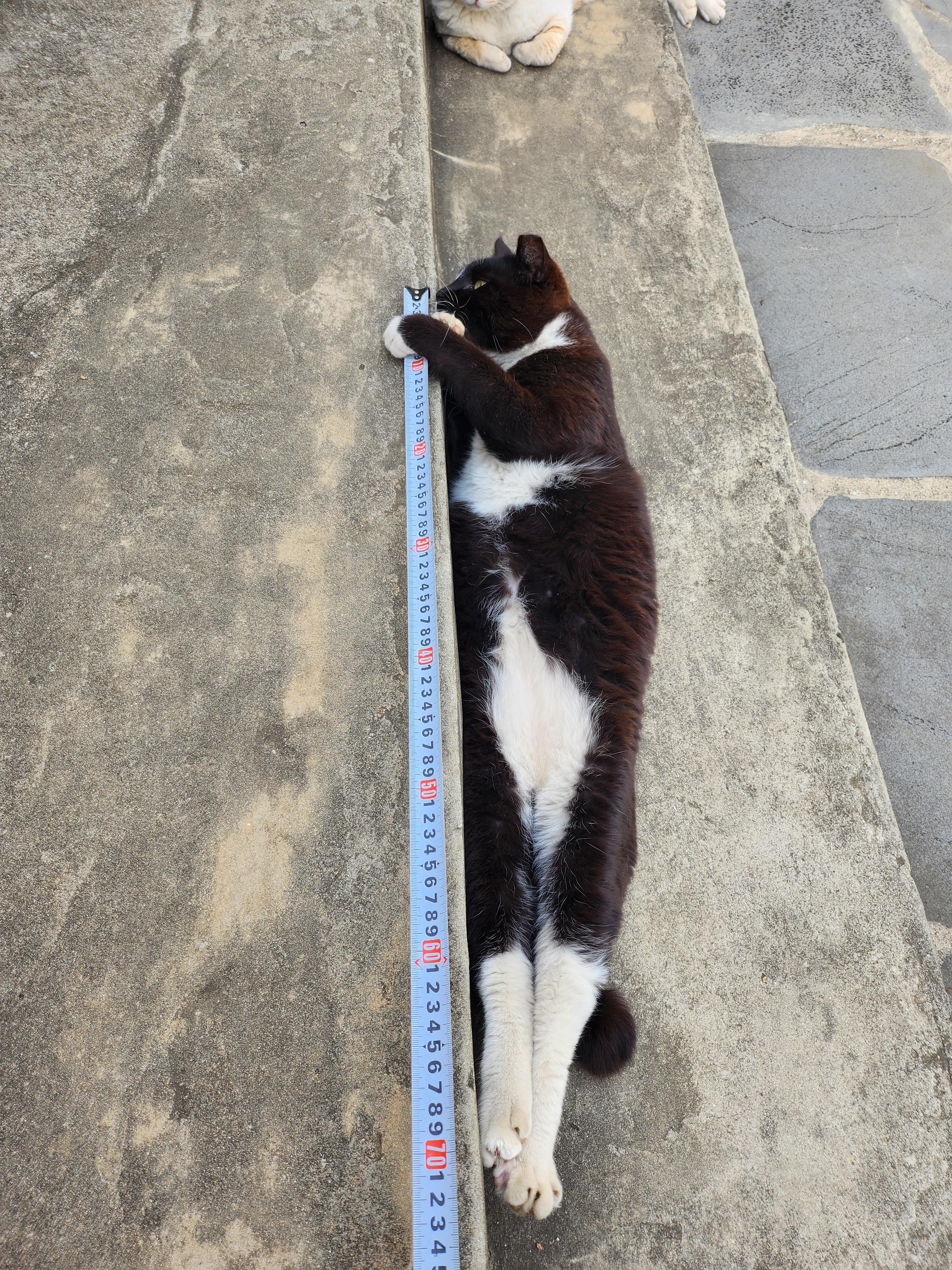 고양이 키 재는 꿀팁이라면, 미리 1M까지 줄자를 뺀 상태에서 접근해야한다. 소리 등에 예민하기 때문에 그 옆에서 줄자를 뺐다가는 금세 눈치를 채고 도망가 버린다.