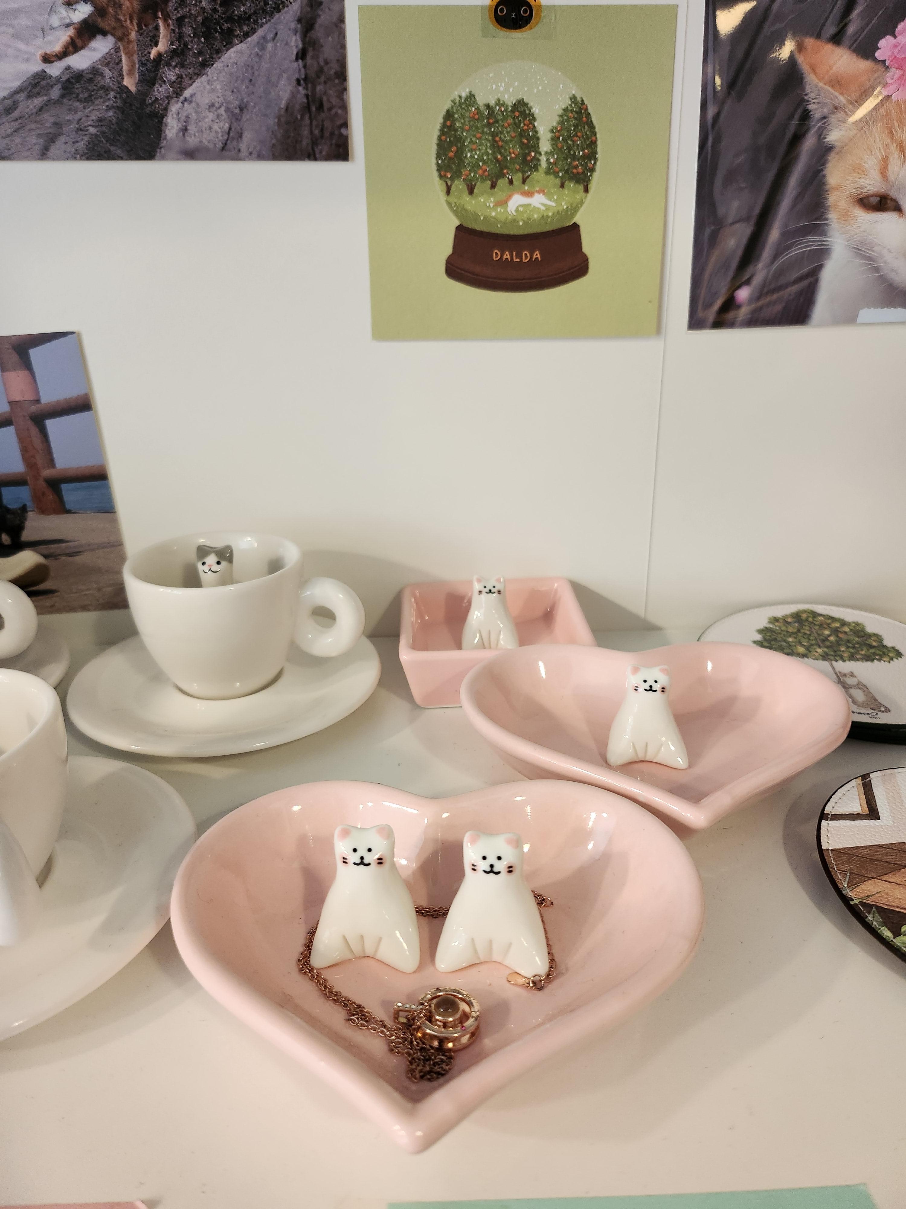 제주도에서는 아마 브릭스제주에서만 판매하는 제품인 고양이 찻잔과 고양이 반지걸이도 있다.