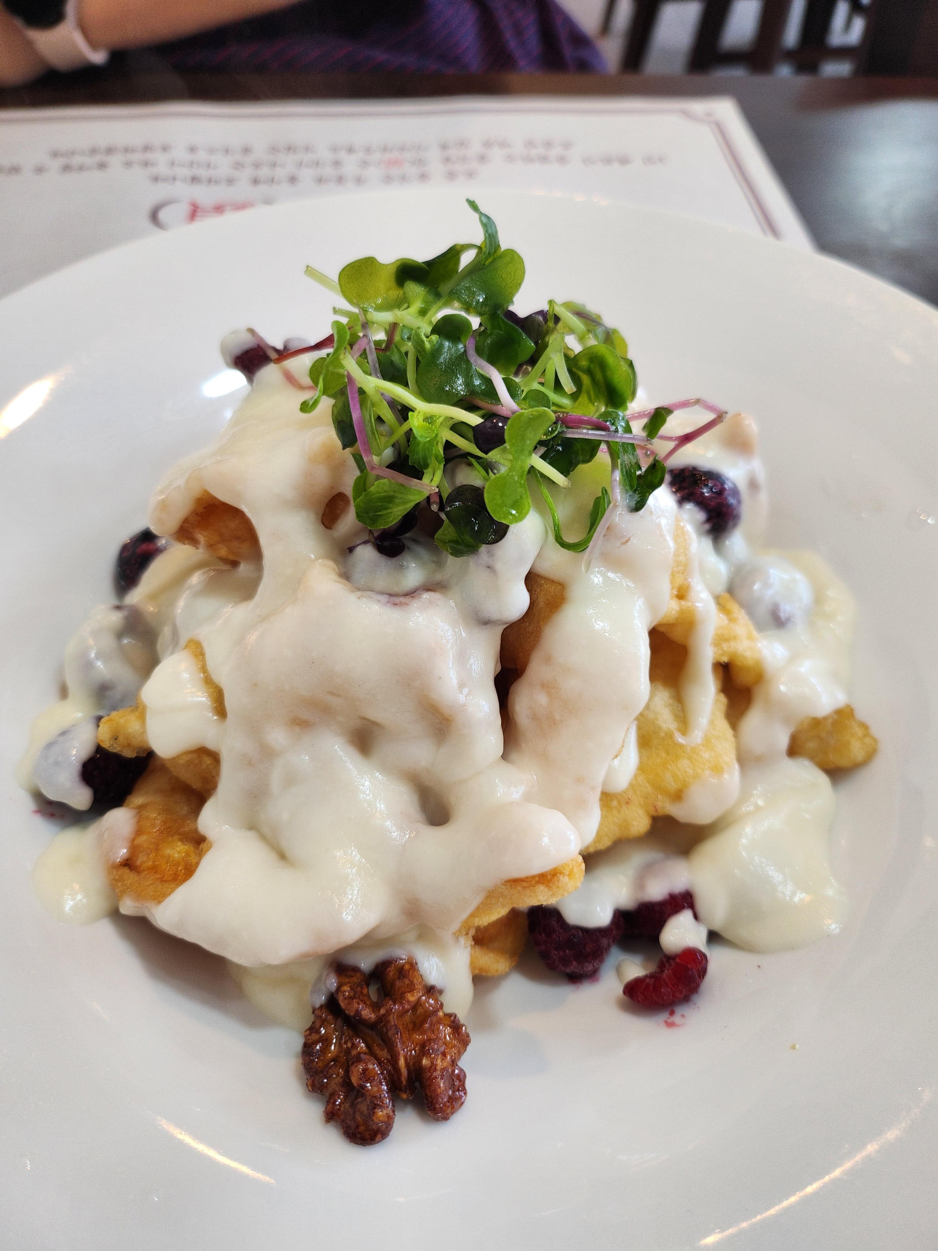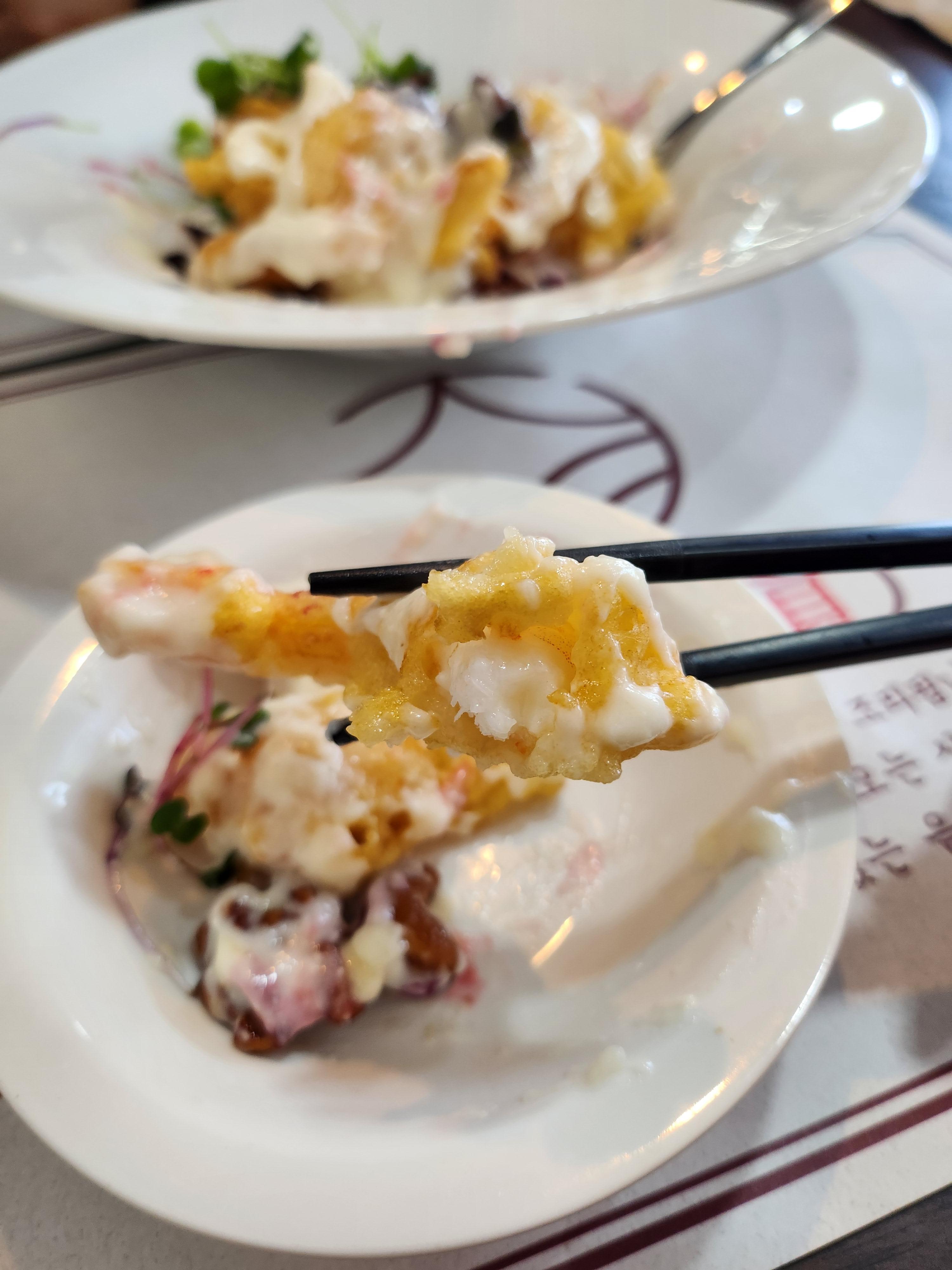 튀긴 재료에 크림을 올리는게 자칫 잘못하면 느끼+느끼가 될 수 있기때문에 어려운 메뉴라고 생각하는데, 튀김도 느끼하지 않았고 크림소스가 너무 상큼해서 마지막 한입까지 깔끔하고 맛있게 먹었다.