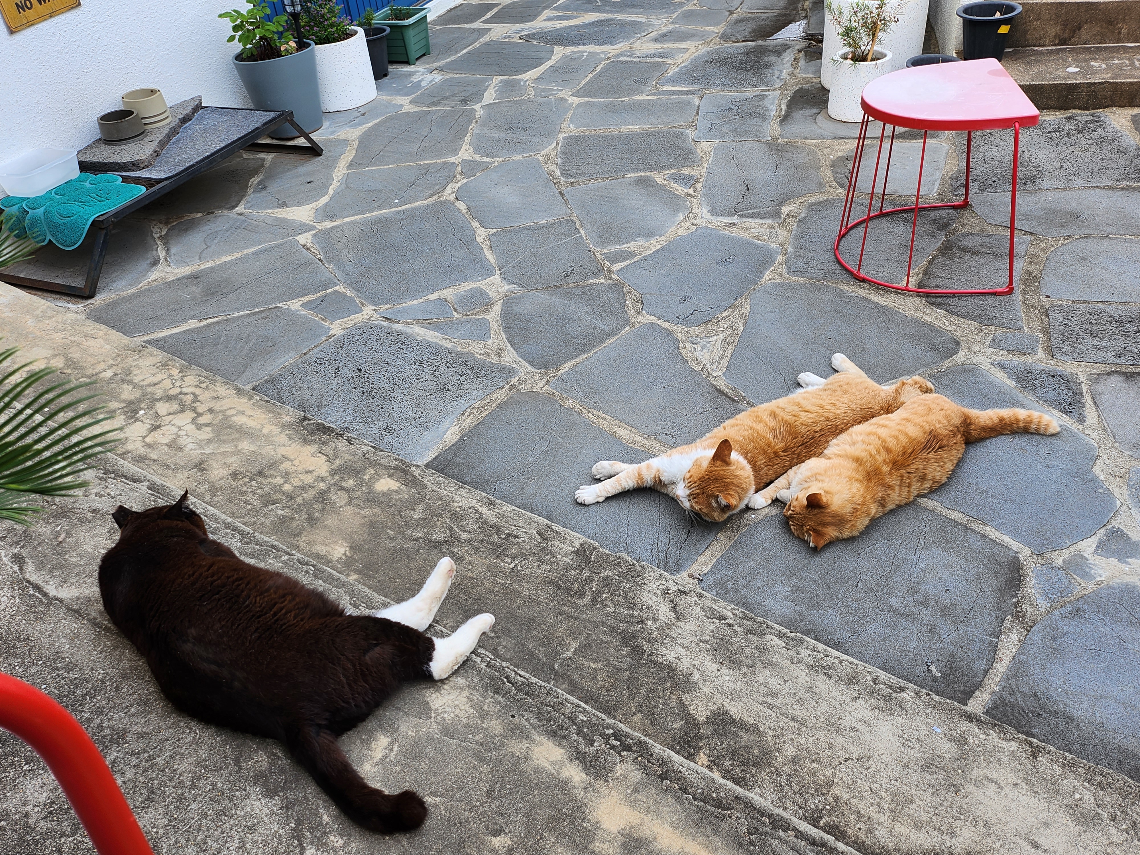 뜨거운 햇볕이 강하게 내리쬐는 여름이 시작되었다. 고양이들이 살고 있는 제주도는 뜨거운 햇볕과 함께 장마도 시작되어 비오기 전, 비 온 후의 습도가 마치 물속에 있는 것과 비슷할정도이다.