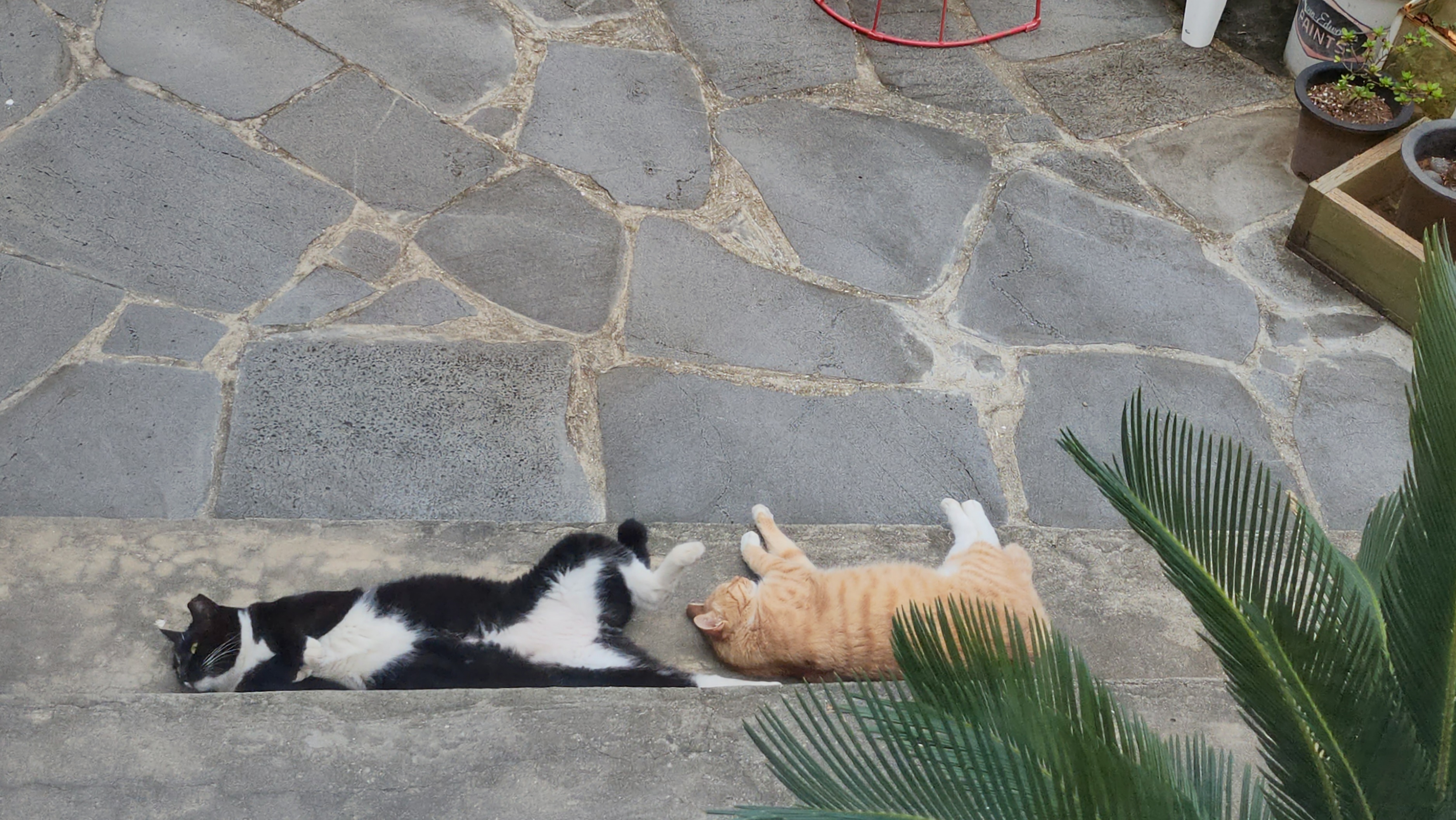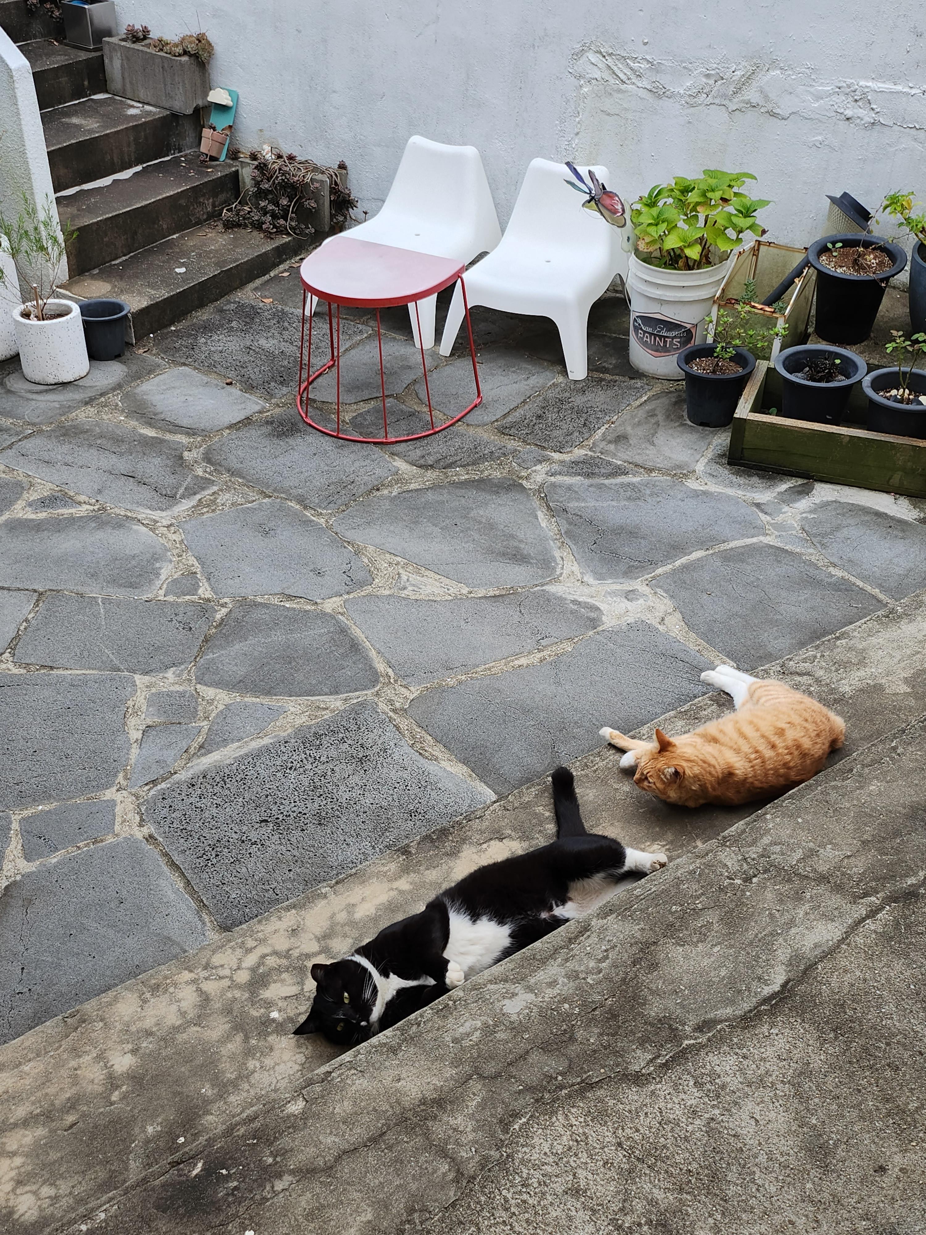 한 여름에는 바닥도 뜨거워서 이렇게 누워있는 광경도 잘 보지 못했는데, 고양이들이 바닥에 누워있는 걸 보니 내 마음도 편안해진다.