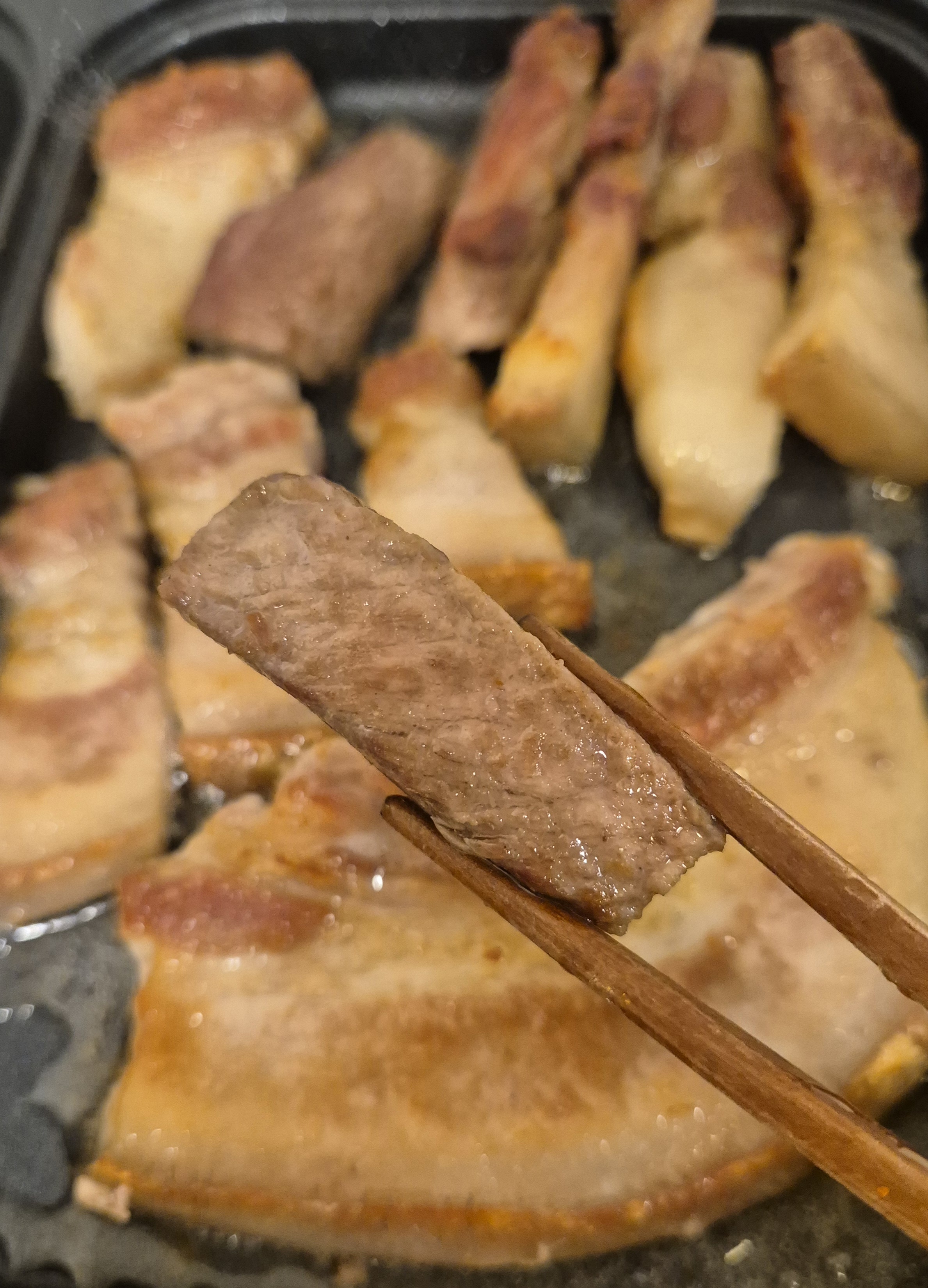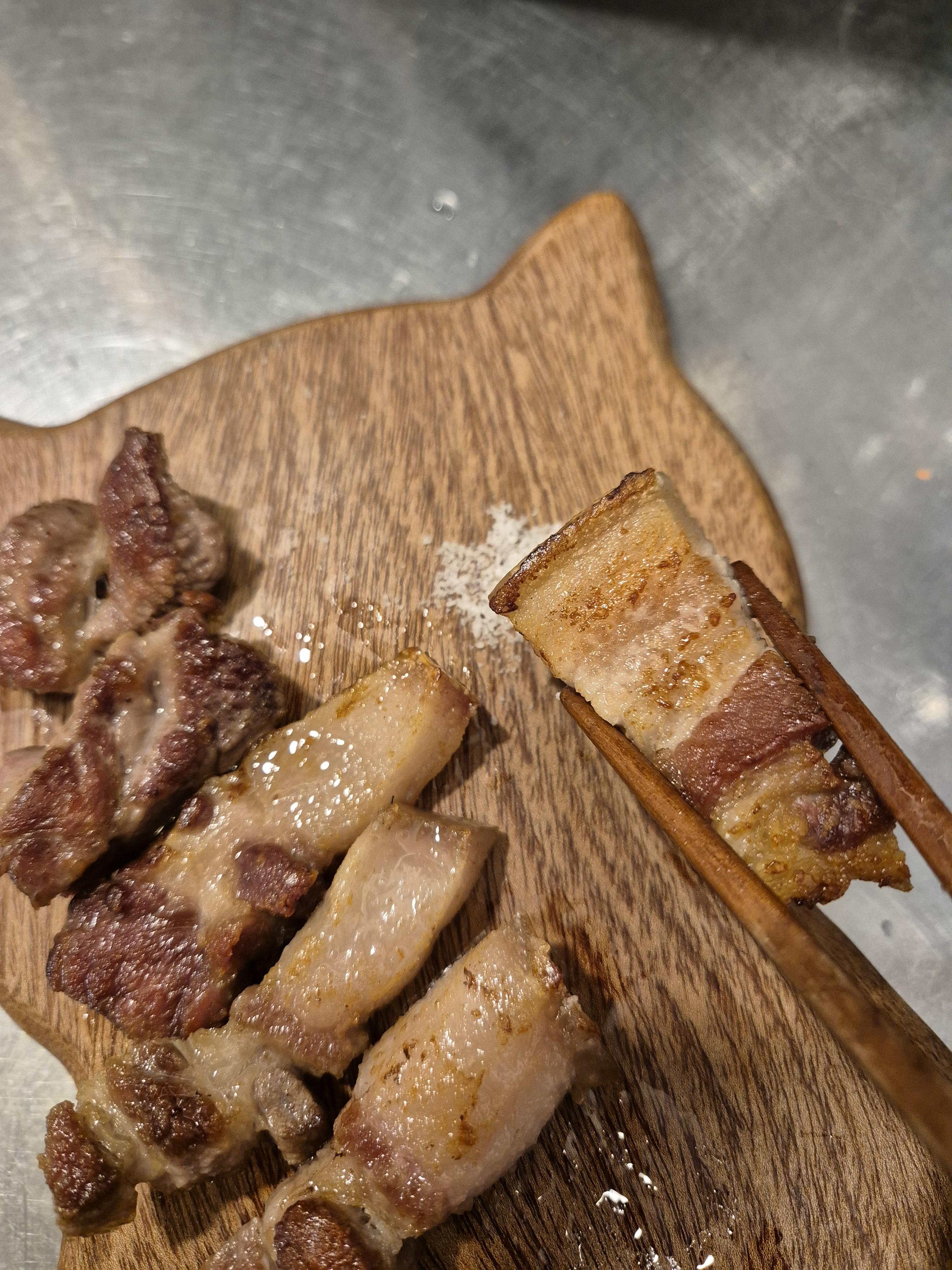 껍질이 붙어있고, 비계와 살이 겹겹이 있는 오겹살은 쫀득하고 고소함이 이루말할 수 없고, 먹자마자 우와 하는 소리가 나왔던건 목살이었습니다. 저 두께 보이시나요? 비계없는 부분을 먹었는데도 입에 넣는 순간 가득차는 육즙과 육향, 성공의 맛이 이런건가 싶더라고요.