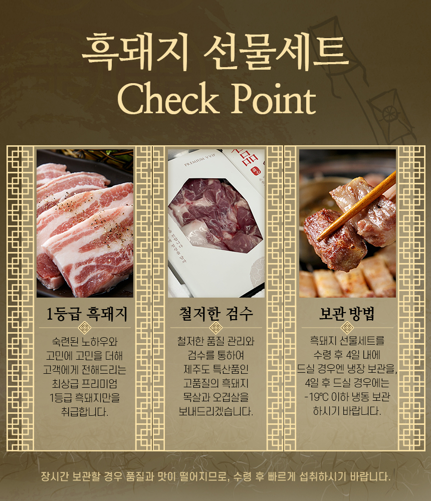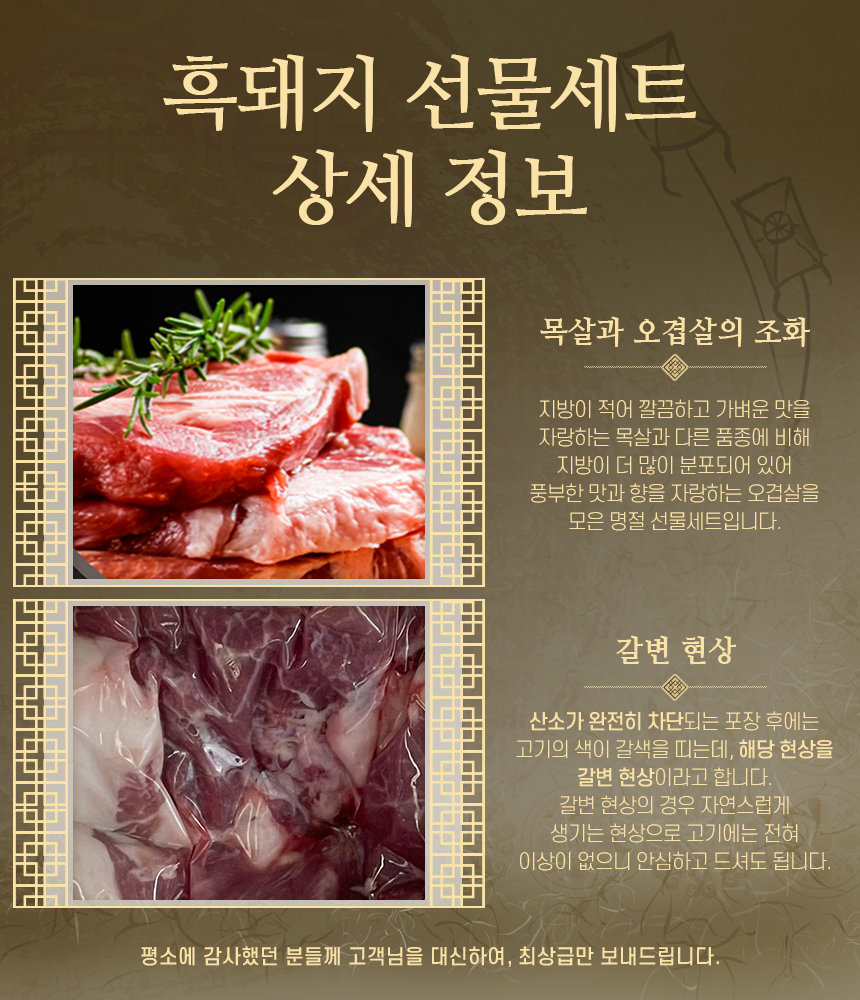 주변 분들과 나눠드시고는 너무 맛있다며 일년에 몇 번씩 주문을 하셨는데, 그게 이번 설날 선물 추천 제품으로 흑돼지를 선정하게 된 이유가 된 것 같습니다.
