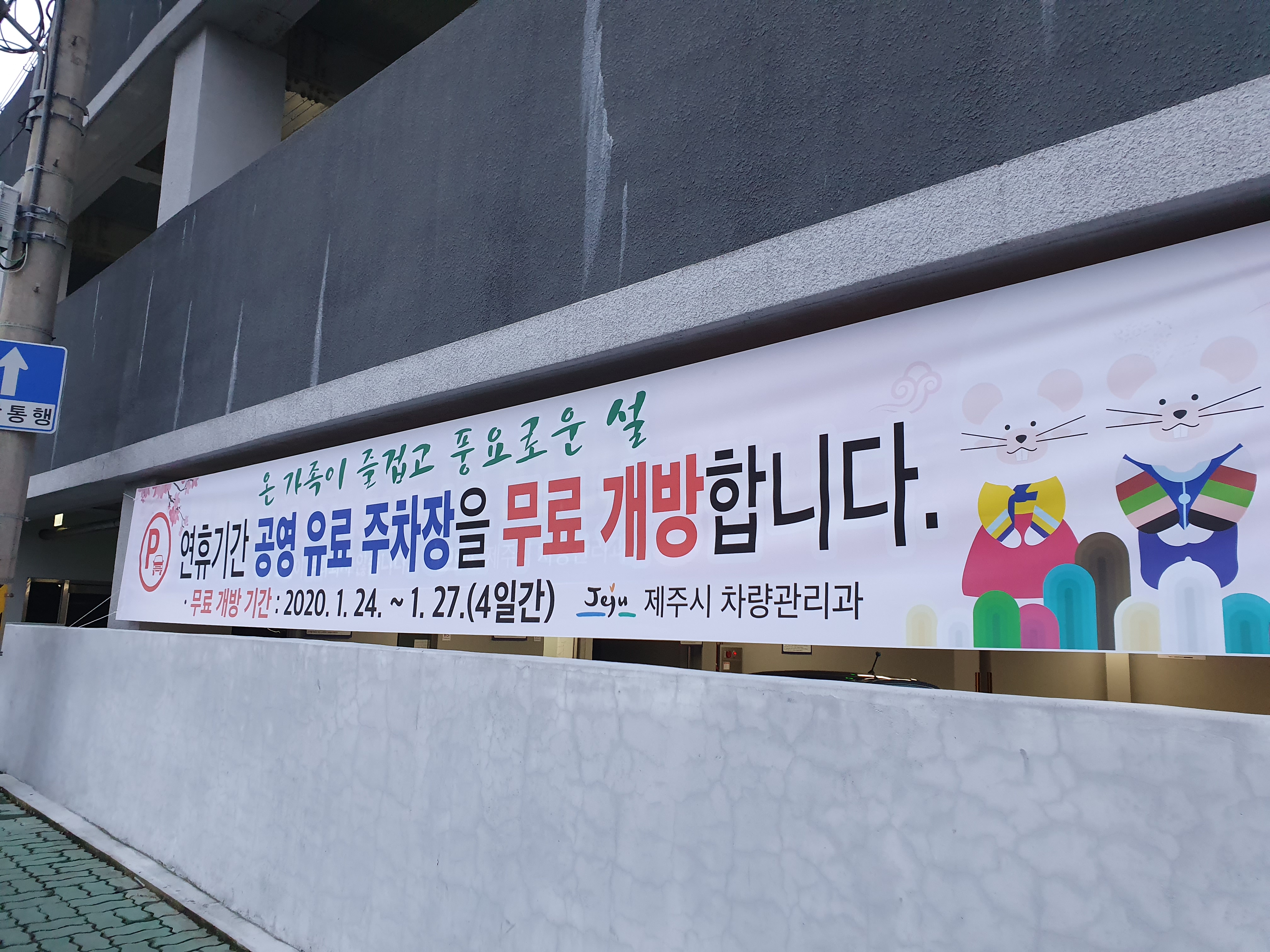 2020년 2월 현재 동문재래시장 공영주차장 공사로