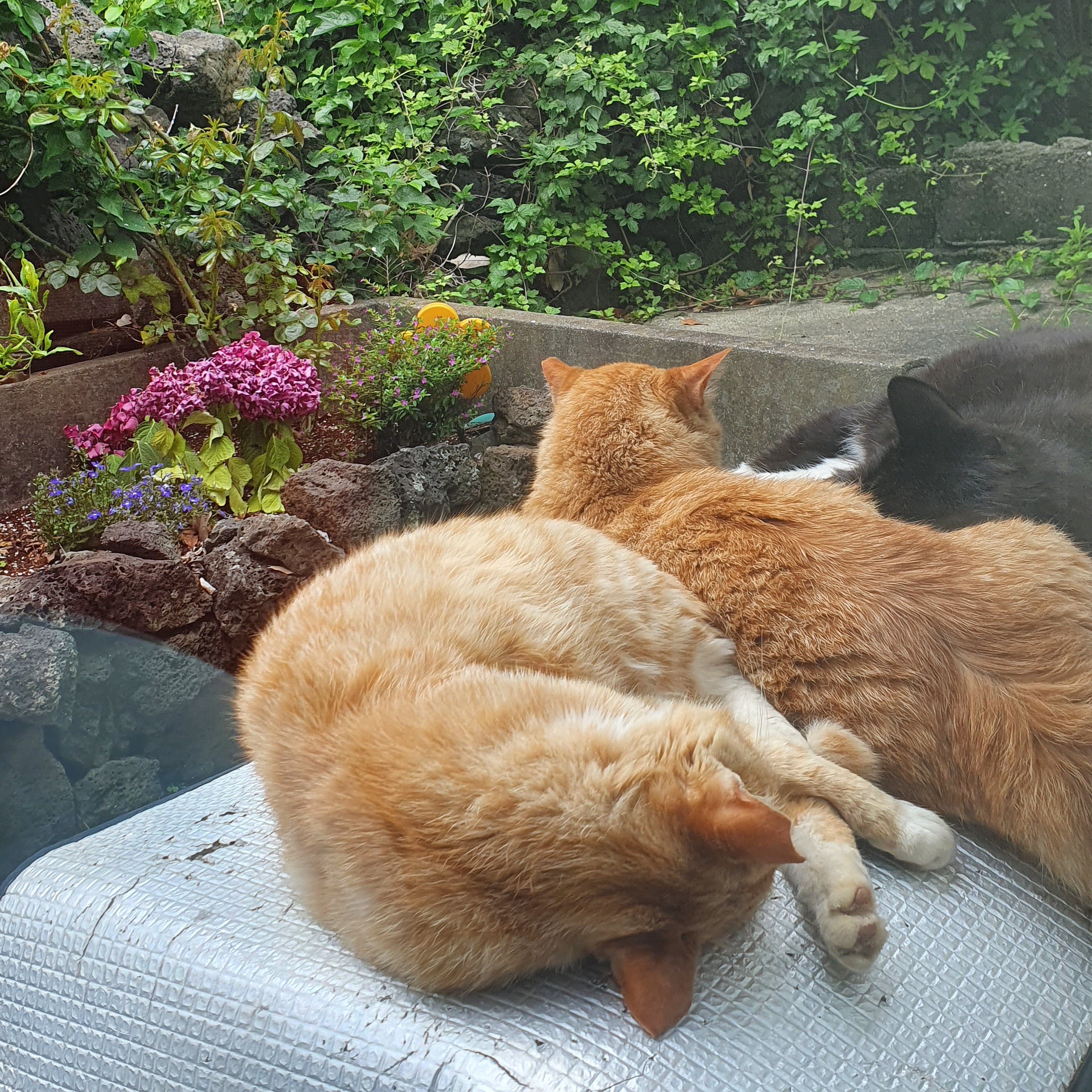 여름이 오기 전, 6월의 제주도 날씨는 이른 장마가 시작되어 일주일내내 비가 내릴것으로 예상되고 있다. 내일까지는 강풍을 동반한 비가 내릴것으로 예상되어 안전 안내 문자가 수시로 발송되고 있는 상황이다. 며칠동안 비예보가 있으면 가장 걱정되는건 역시 동네 고양이들이다. 하지만 길 위의 고양이들은 비가 오면 나름의 아지트가 있는지, 장대비가 쏟아부을때는 보이지 않다가 빗줄기 약해지면 어디에선가 뽀송뽀송한 모습으로 타나난다.