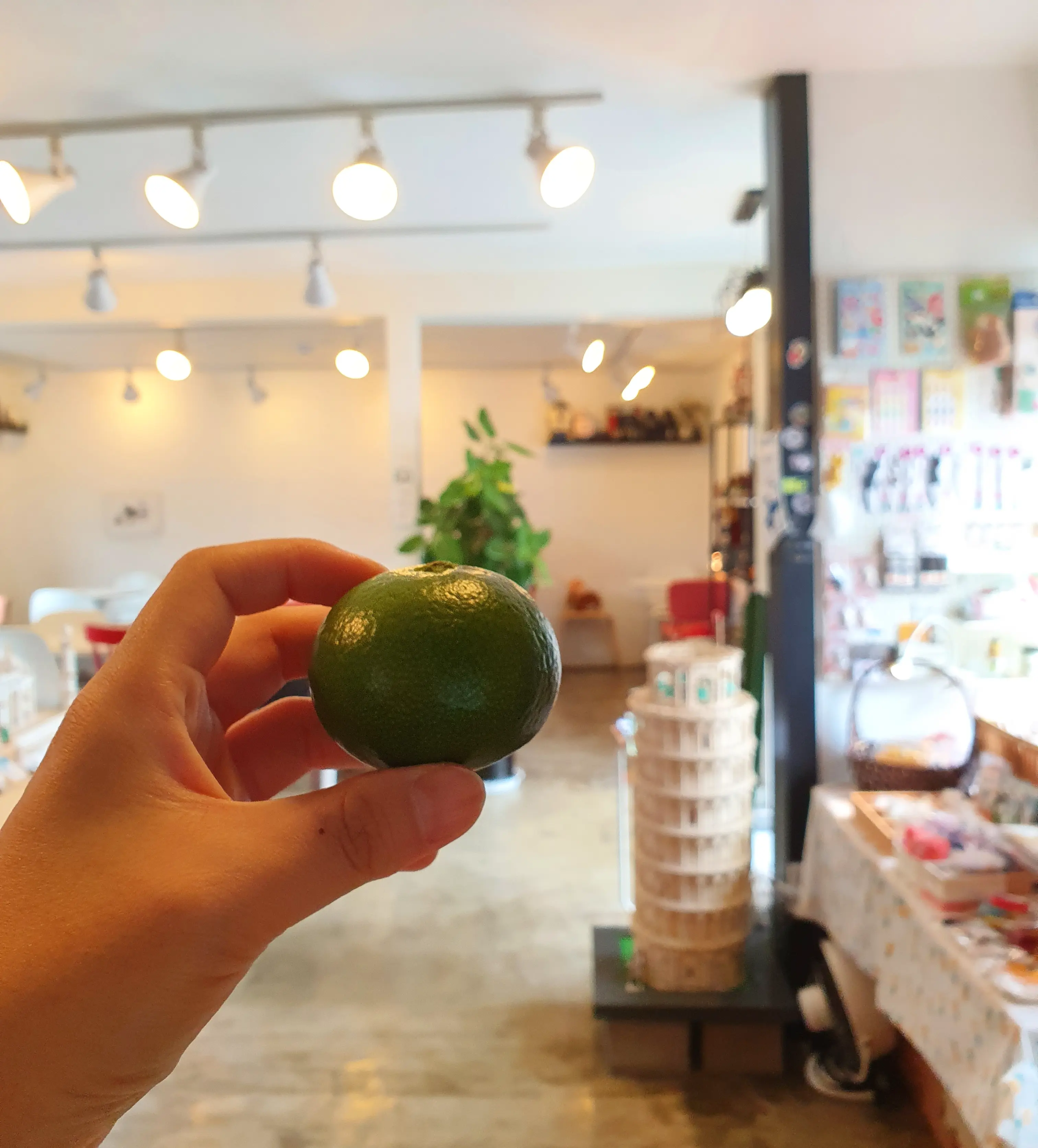 서귀포시 남원의 카페 알맞은 시간에 다녀왔다. 알맞은 시간 카페 옆에는 작은 귤밭이 있는데, 필요한만큼 청귤을 따가도 좋다는 말씀을 해주셔서 청귤을 따고 알맞은 시간의 맛있는 커피도 마