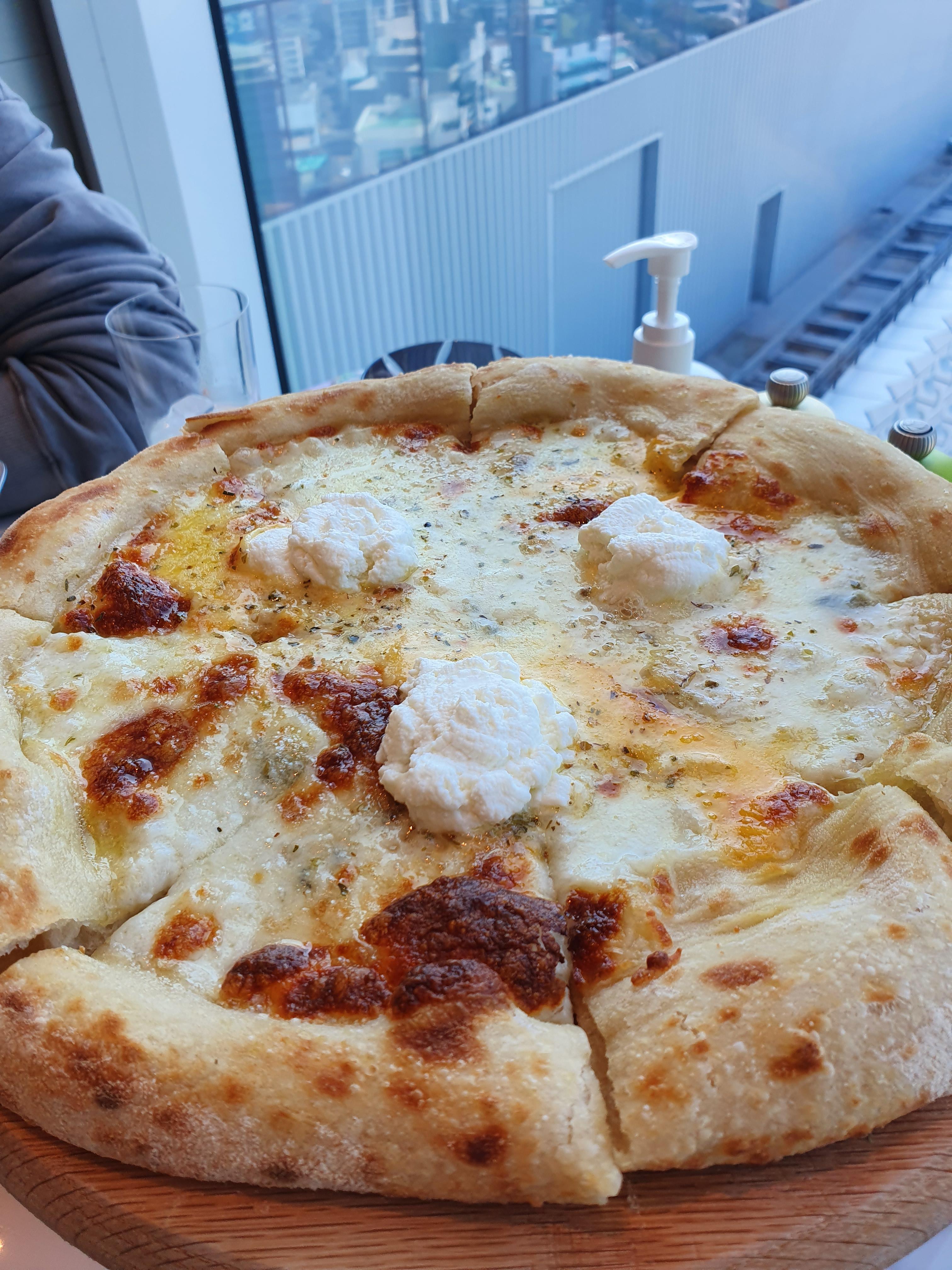 고르곤졸라, 탈레지오, 리코타, 모짜렐라가 토핑된 모둠 치즈 피자. 꿀에 콕 찍어서 먹으면 되는 우리 모두 한번쯤 먹어보고 즐겨본 바로 그 맛이다. 맛이 없을 수 조합이었다.