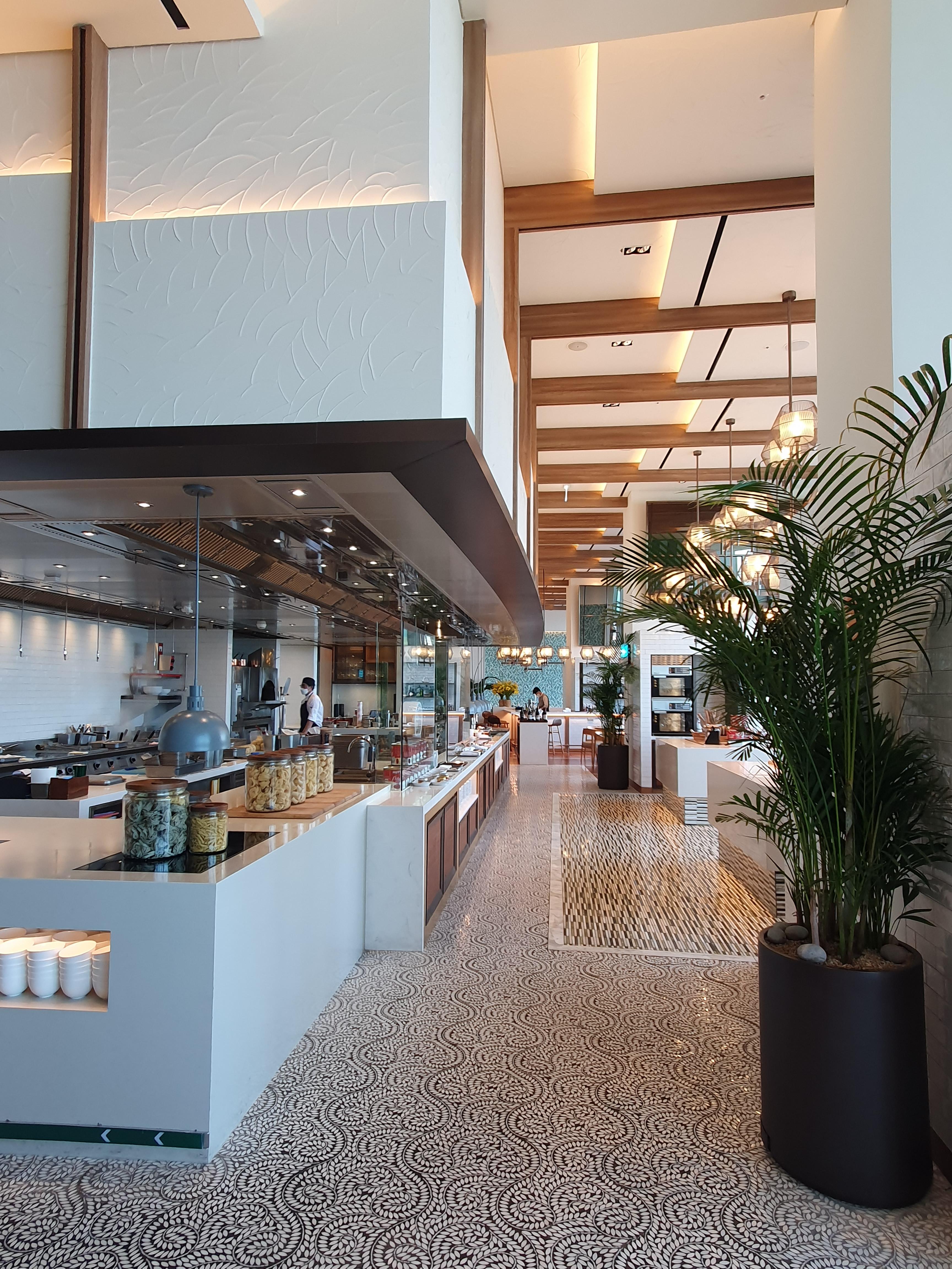 그랜드 하얏트 호텔 제주의 야외 수영장도 같은 층에 위치해 있어, 엘리베이터에서 내리면 정면에 수영장이 눈에 들어오고 카페8은 오른편에 위치해있다. 호텔 숙박객의 조식도 카페 에잇에서 이용할 수 있었는데 우리가 방문했을 때는 조식 마감 후 런치와 디너로 운영되고 있었다. 카페 8의 런치 영업시간은 11시부터 밤 10시까지이다.