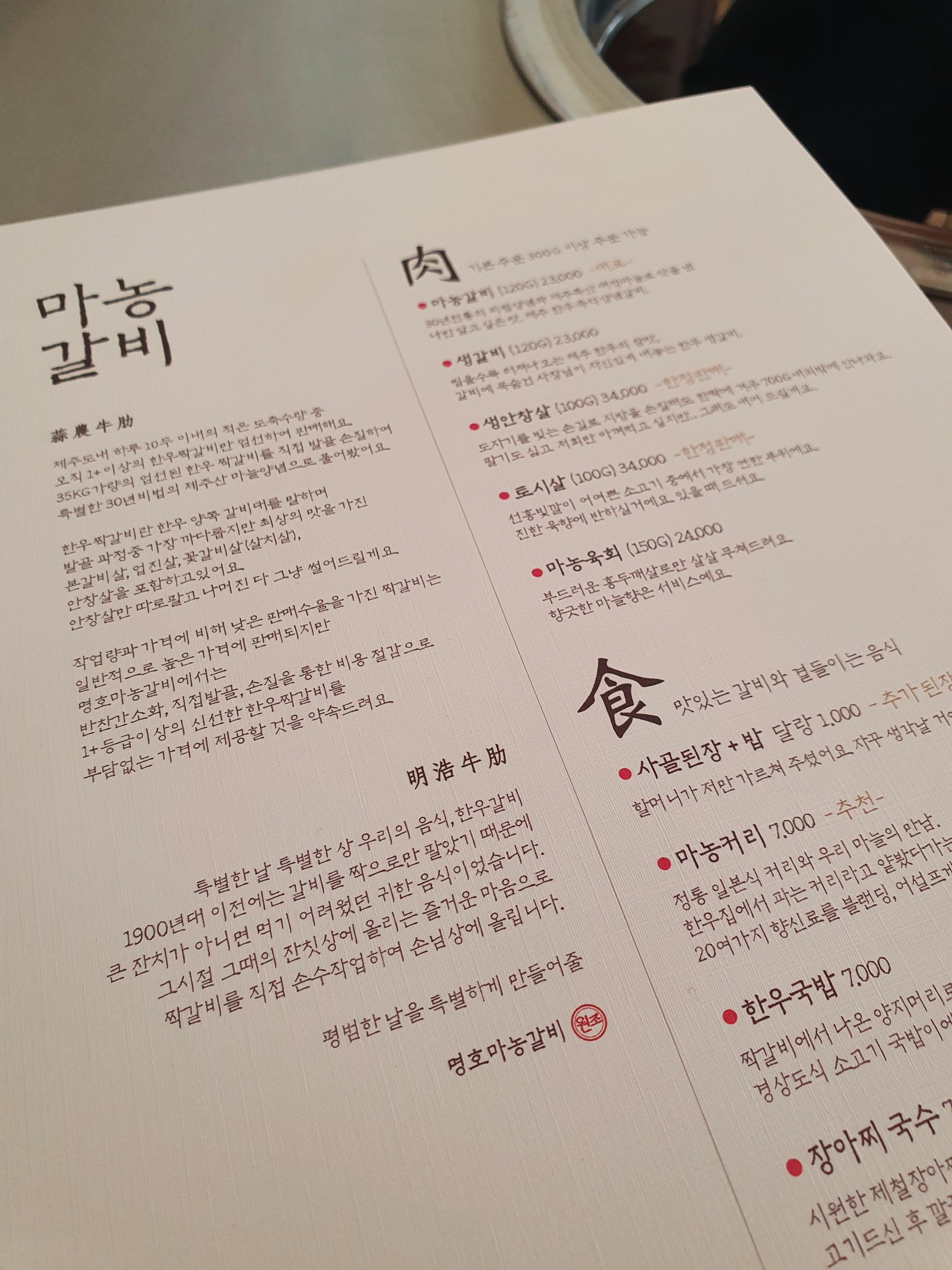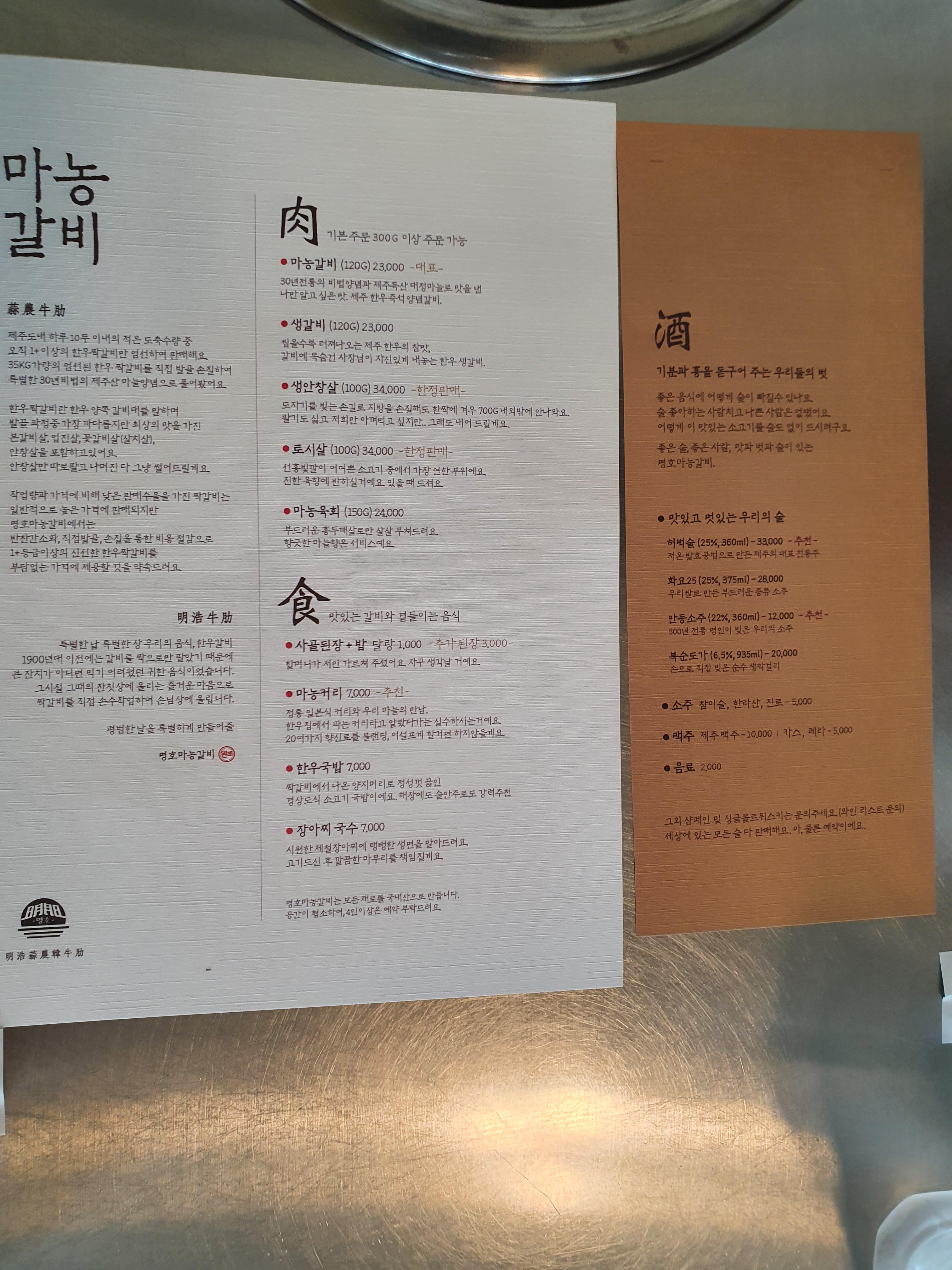 제주산 한우갈비 전문점인 명호 마농갈비는