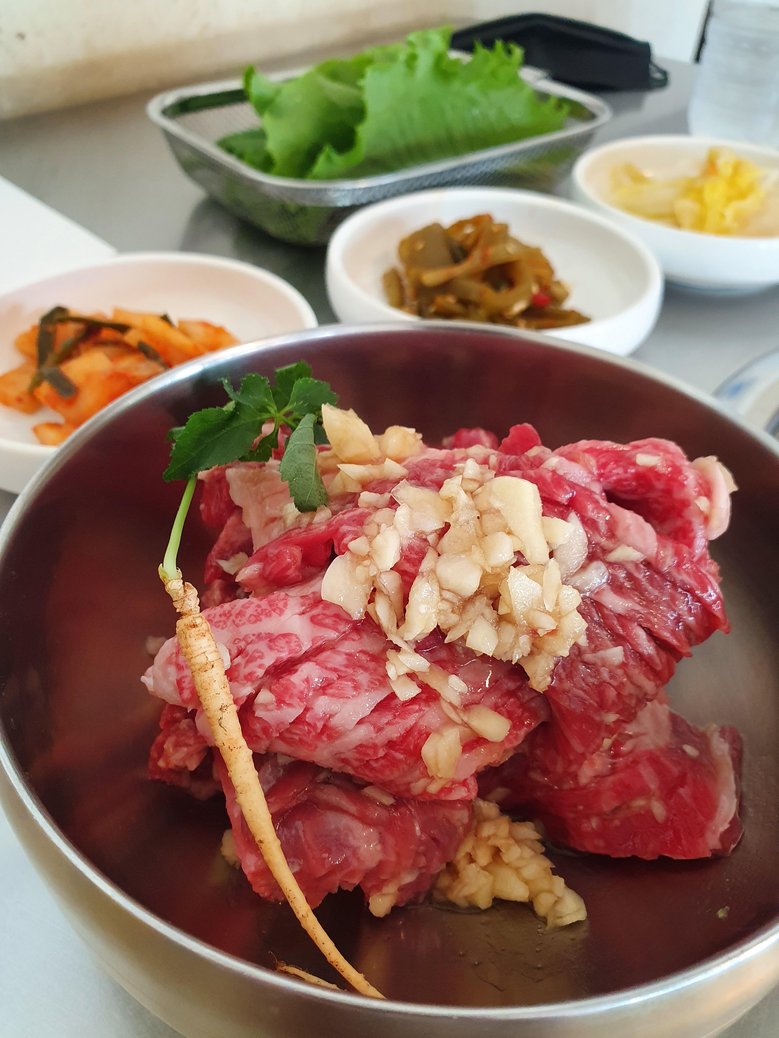 이렇게 맛있는 고기에 마늘 양념까지 과하지 않고