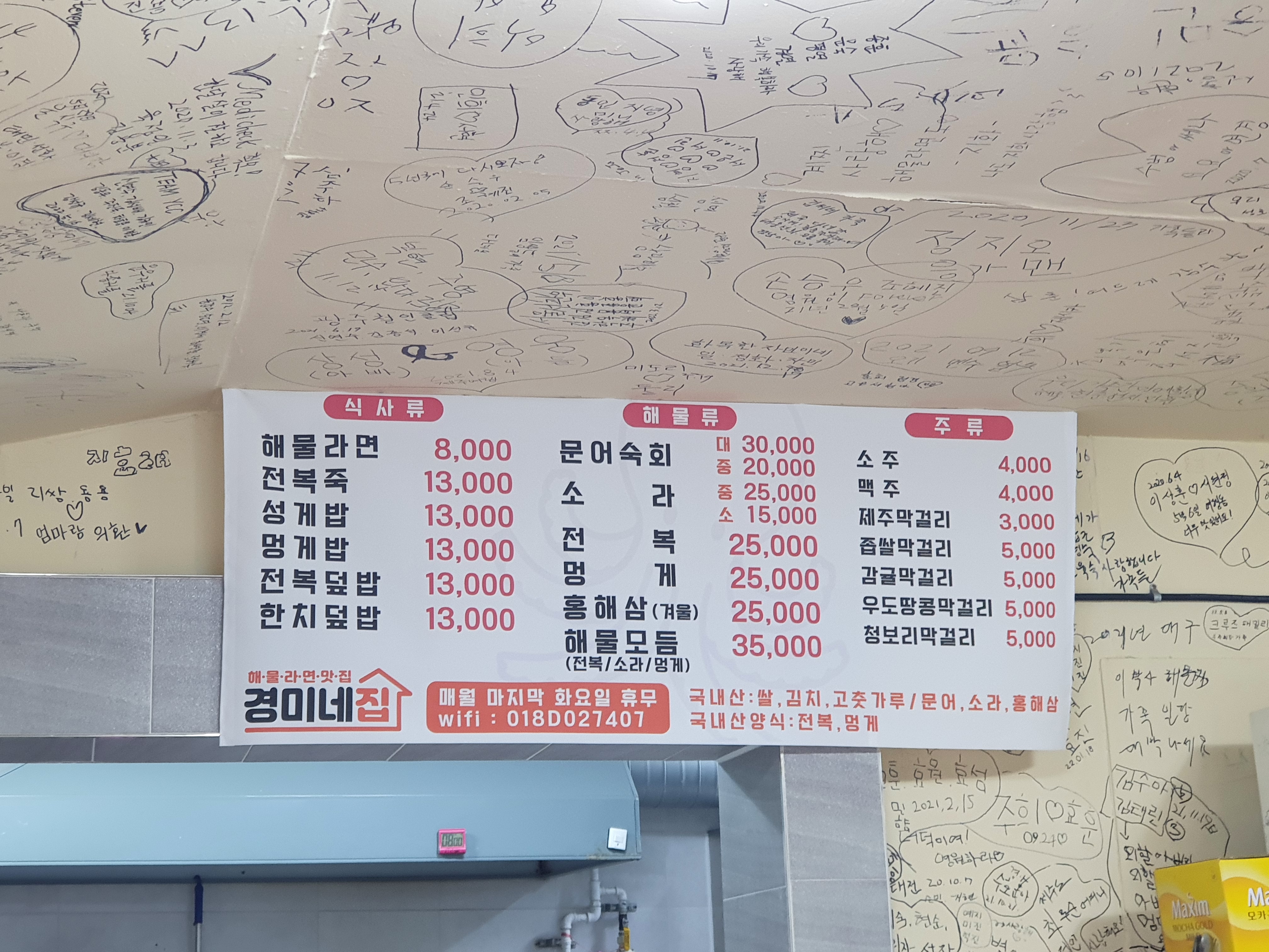 성게밥 두개를 주문하면서 해물라면을 주문할까말까 했는데,