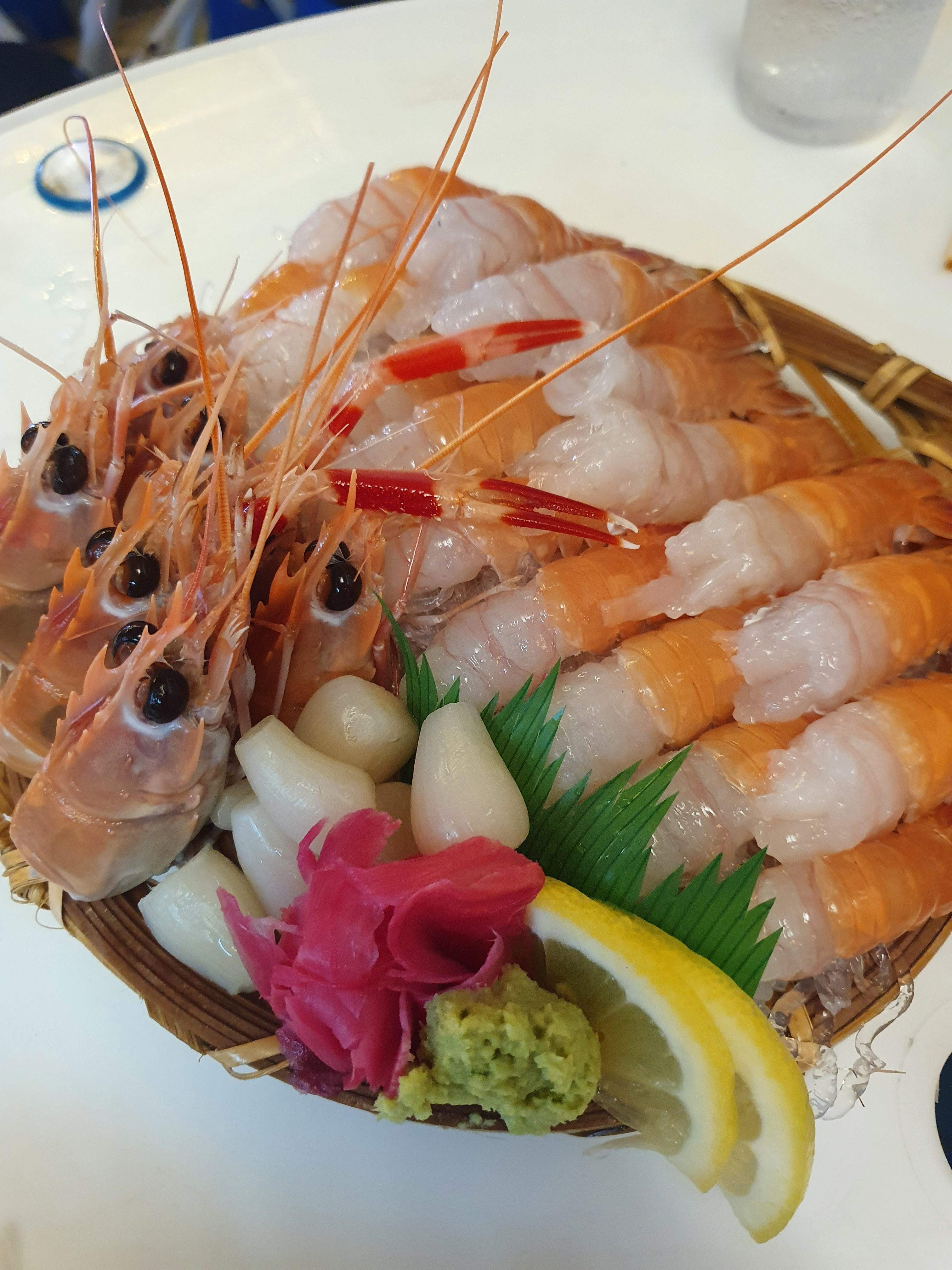요즘 딱새우값이 너무 많이 올라서 평소에는 쳐다보지 않는 딱새우회인데, 일행중에 갑각류 킬러가 있어서 오랜만에 주문해보았다.