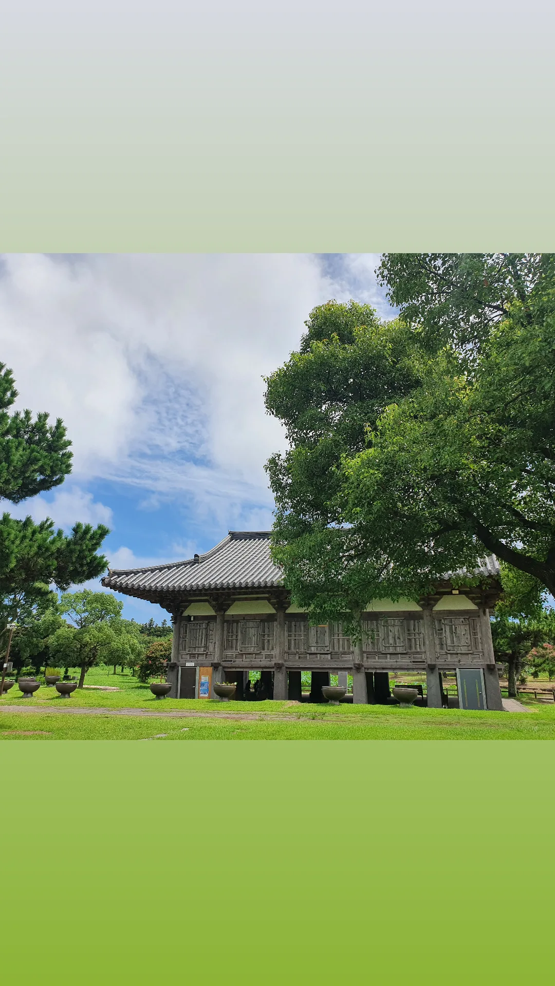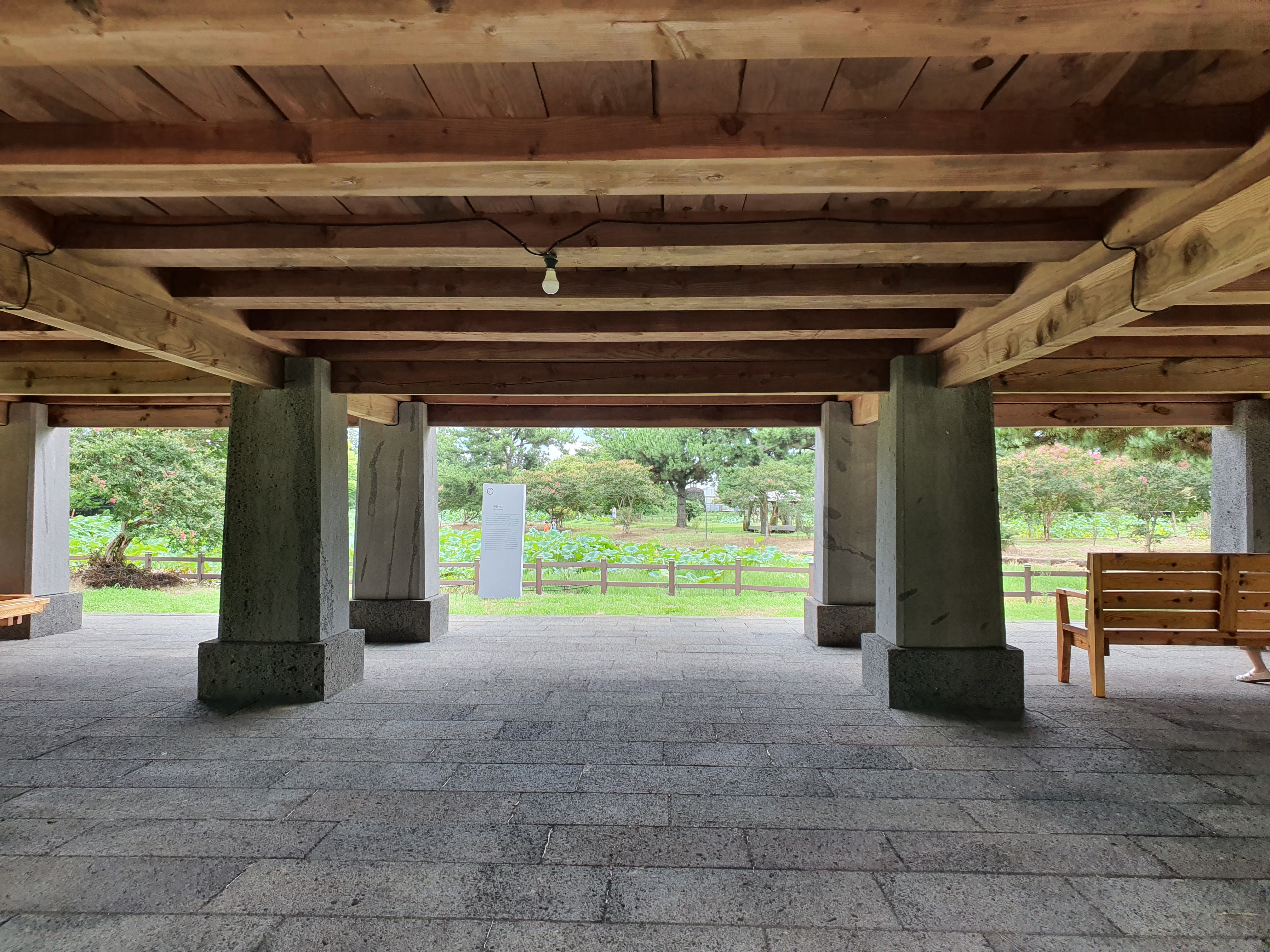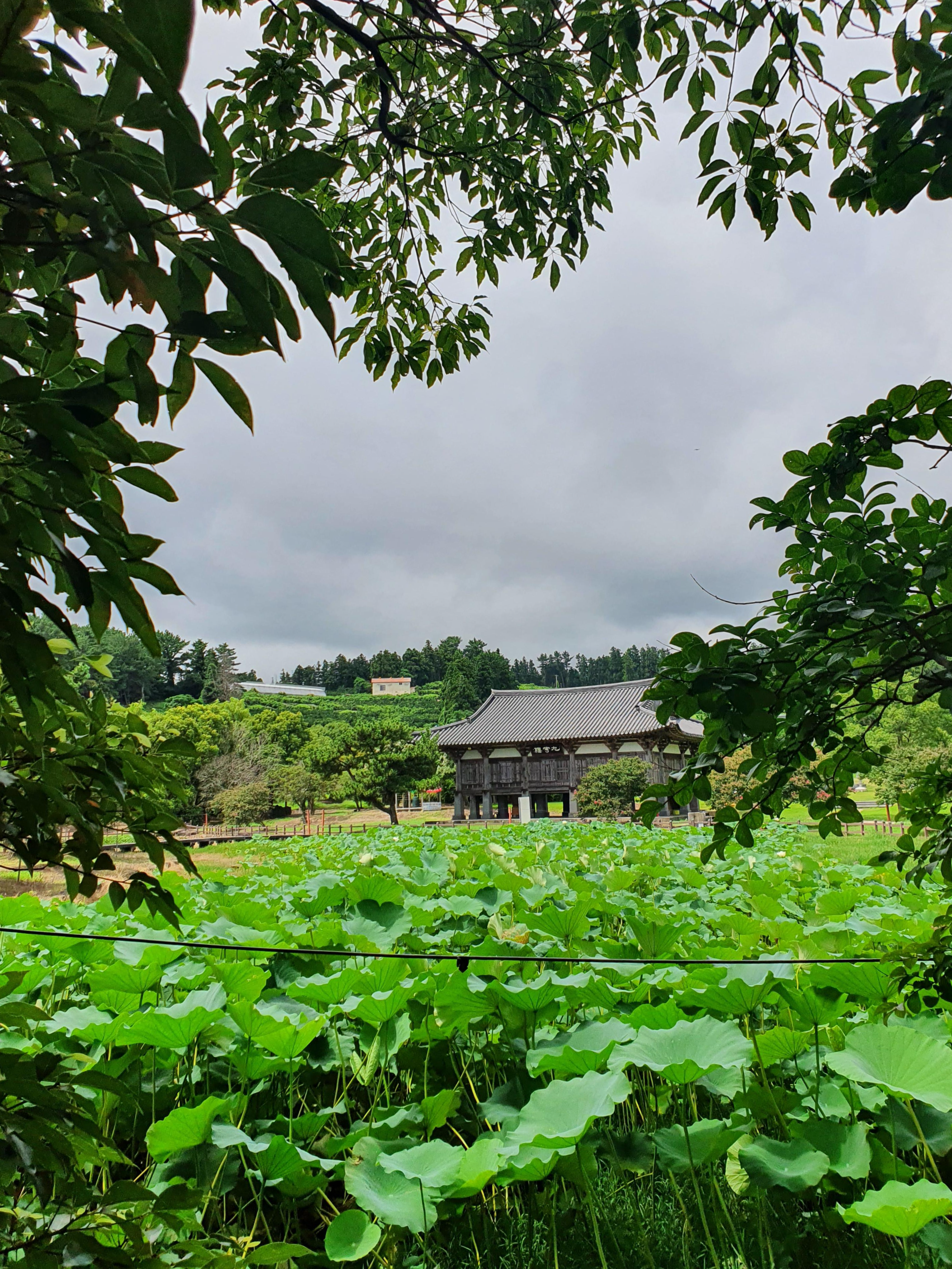 햇볓이나 비를 피하며 구품연지(연못)을
