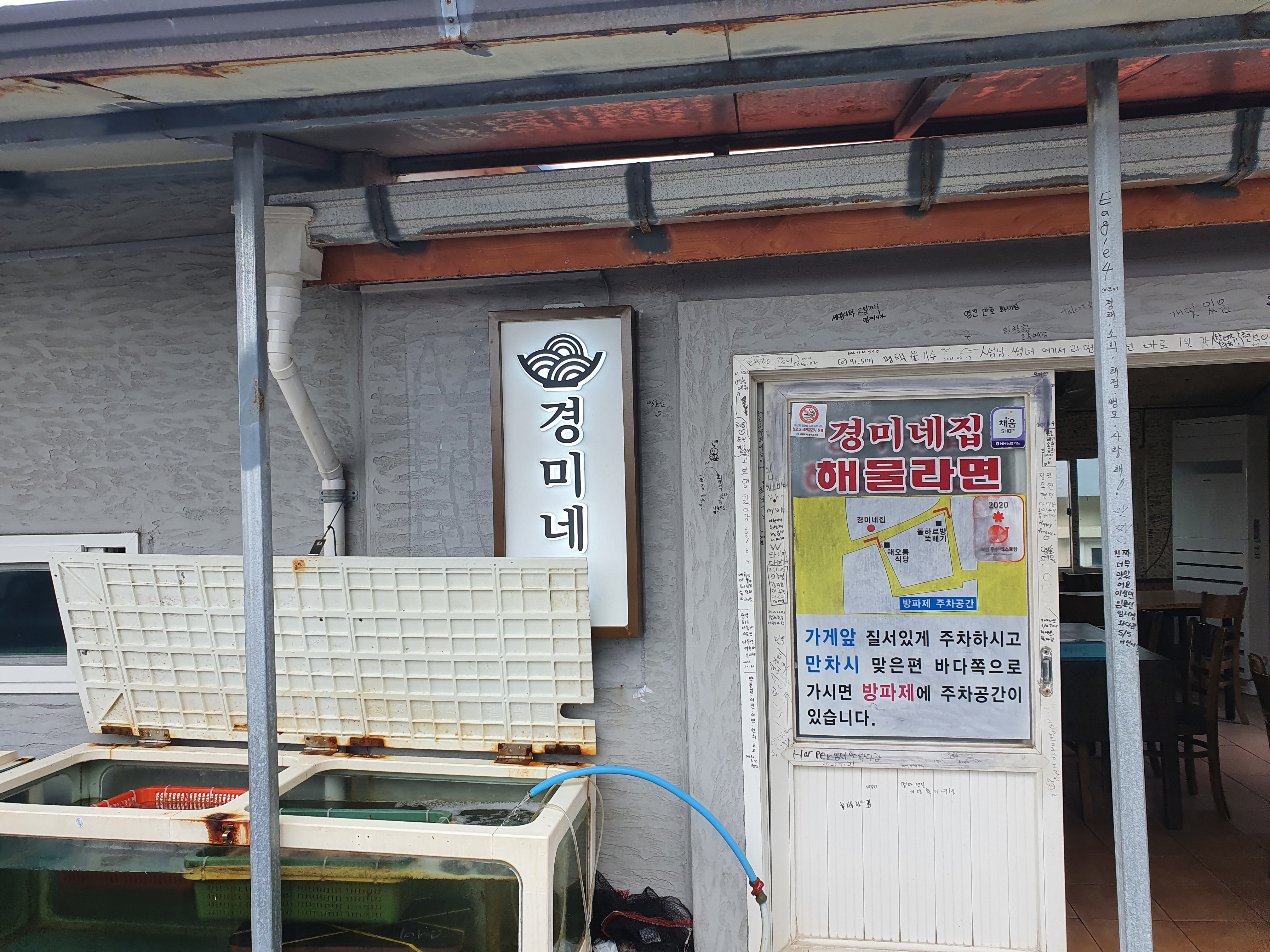 맞은편 바다쪽 방파제에 주차공간이 있다.