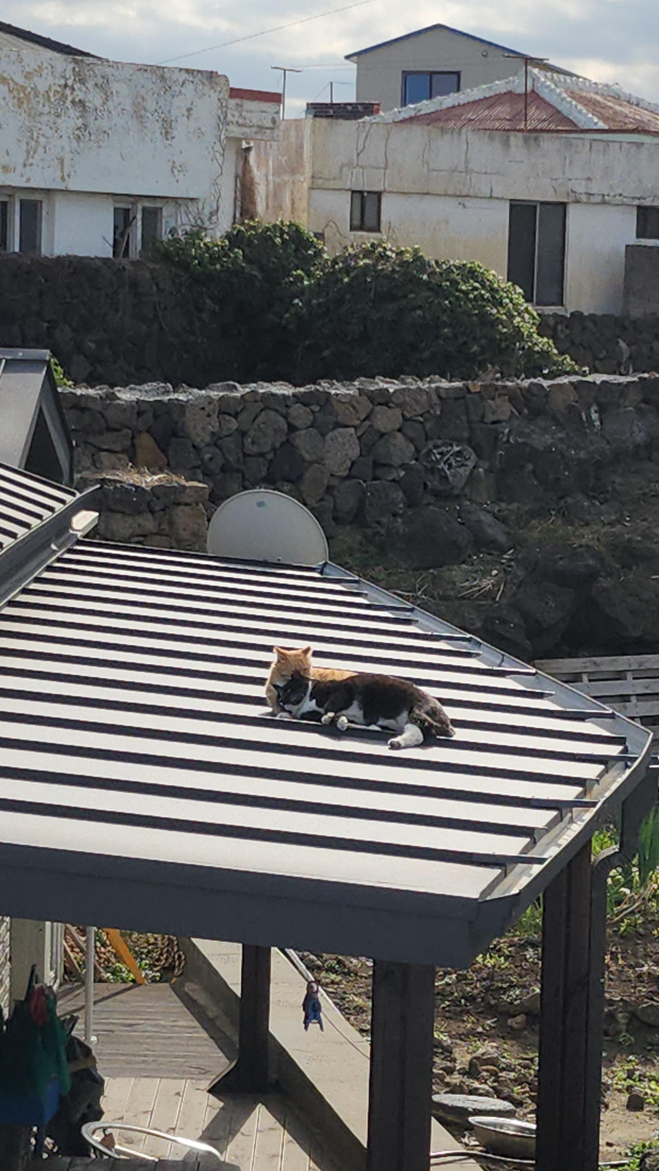 지붕 위에 올라가서 달궈진 지붕에 몸을 지지며