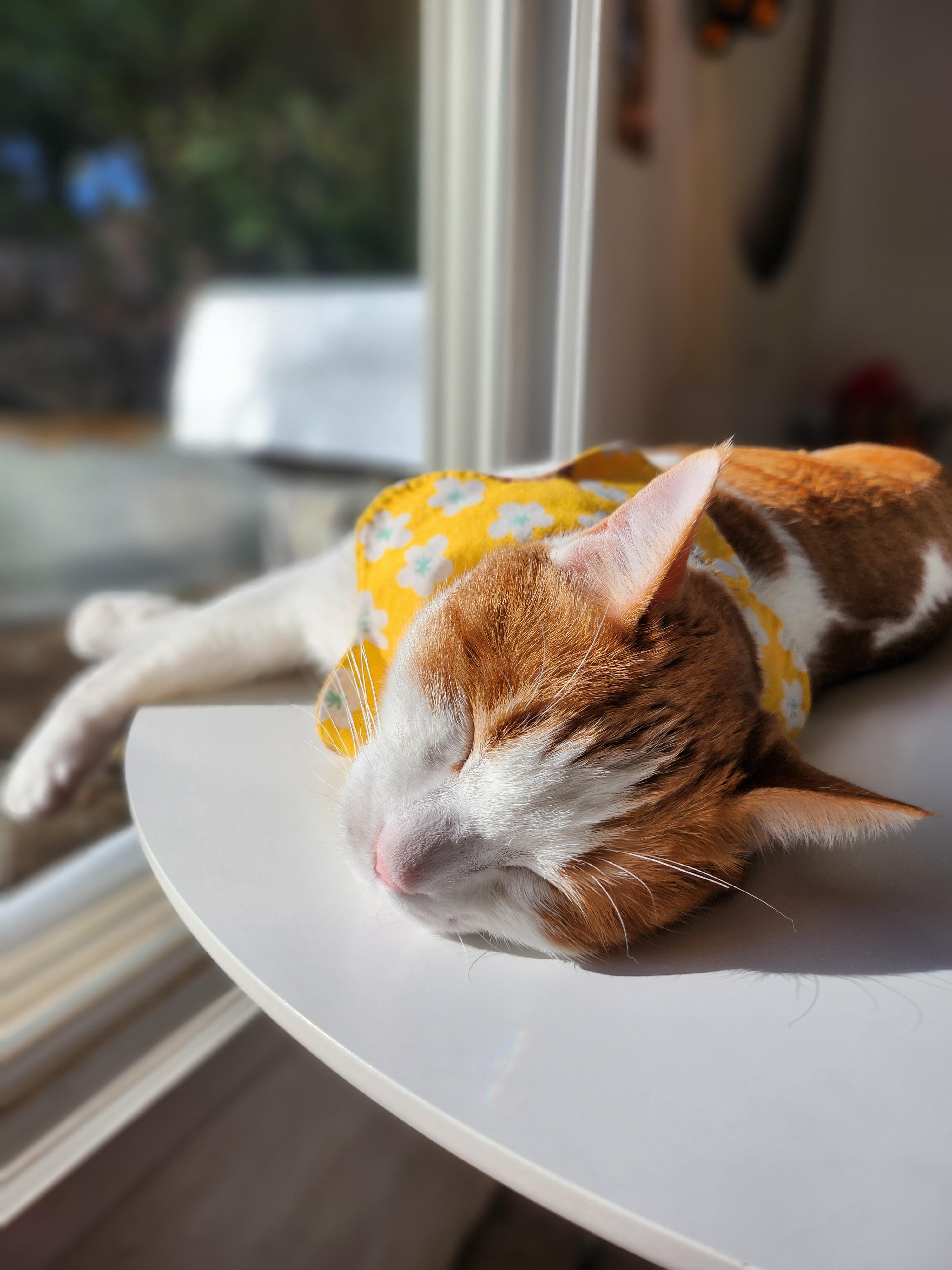 카페 고양이 채영이도 햇볕이 들어오는 시간에는 가장 볕이 좋은 자리에 누워서 잠을 청한다.