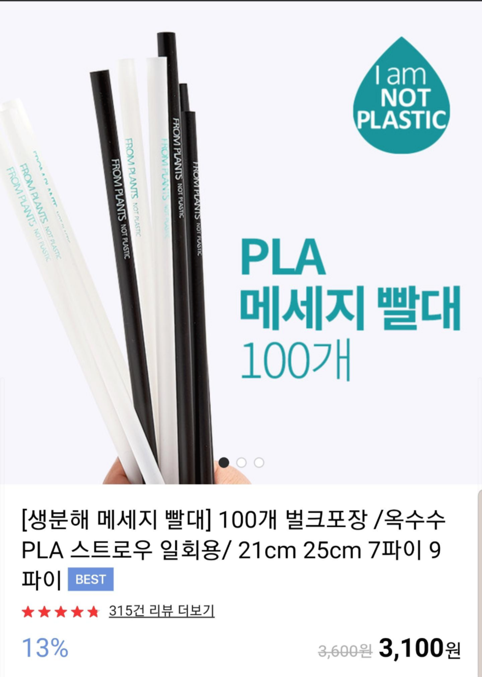 옥수수로 만든 빨대인 PLA빨대는