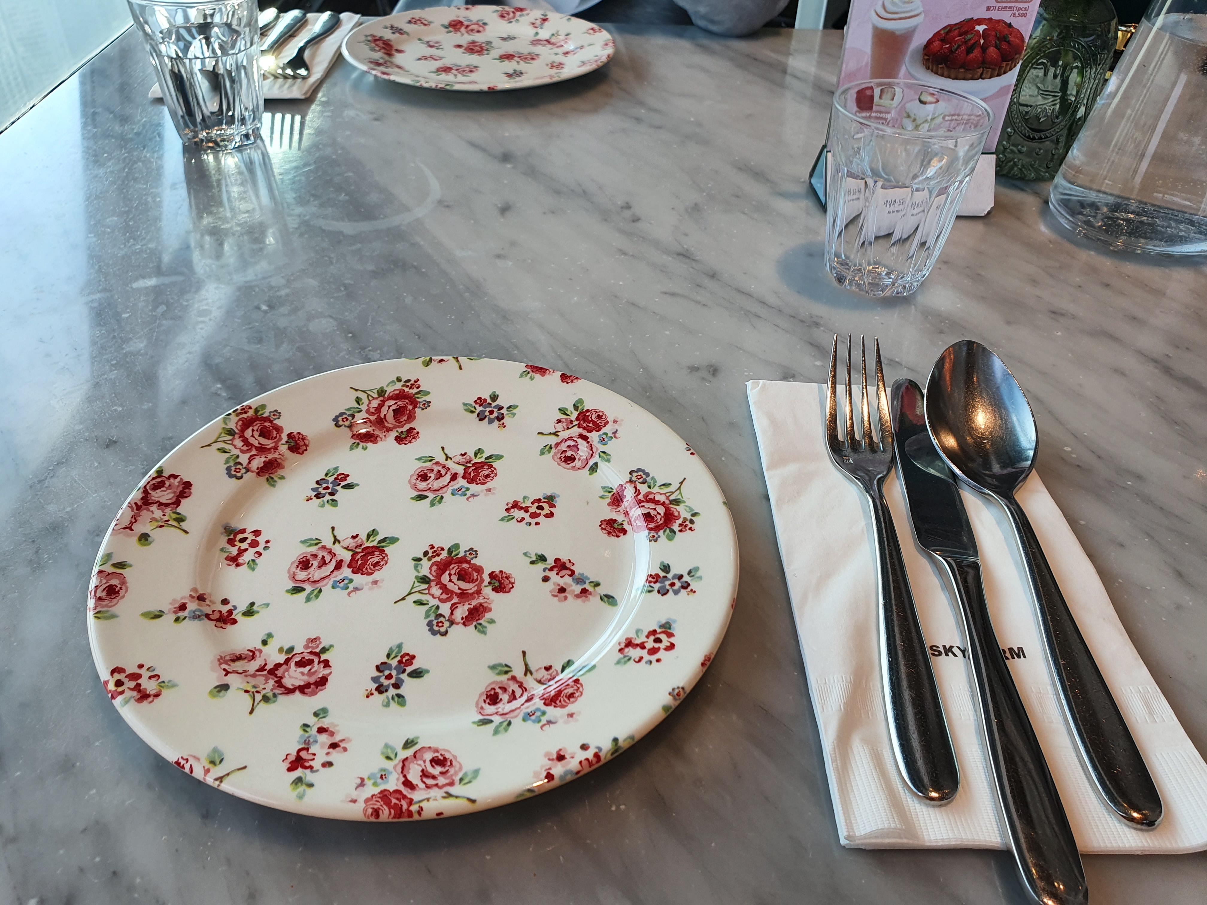 화사한 플라워 접시가 미리 세팅되어 있었다