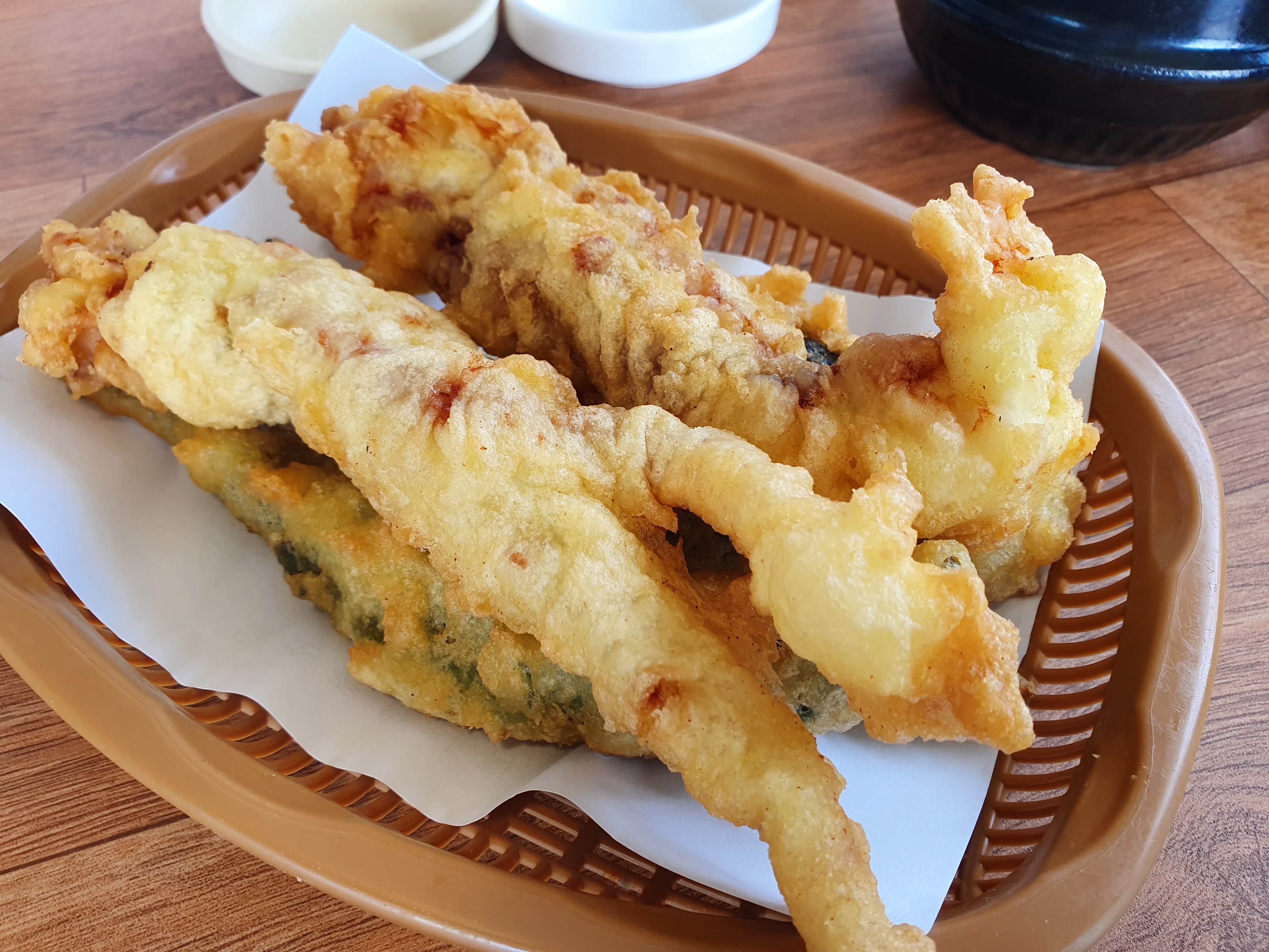 오징어튀김 2개랑 고추튀김 김말이 섞어서~