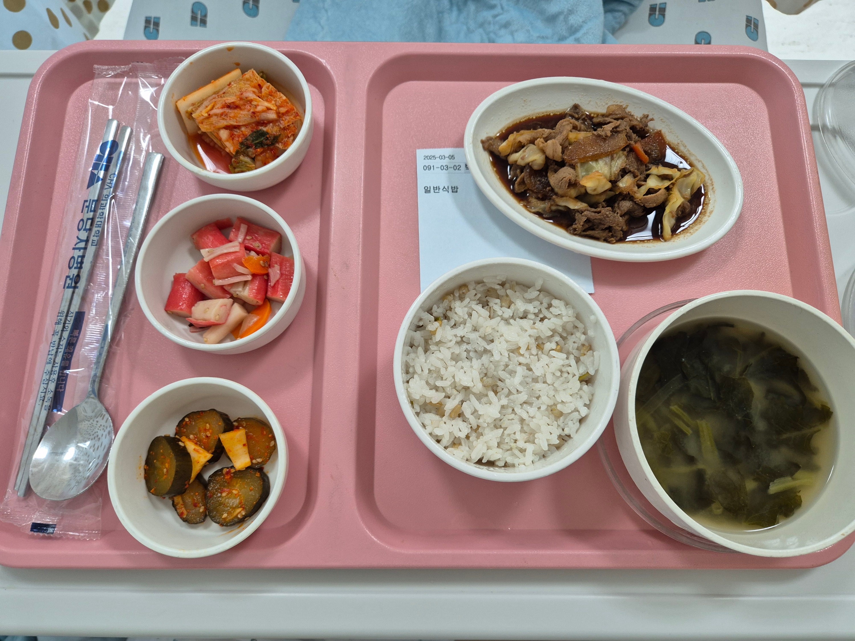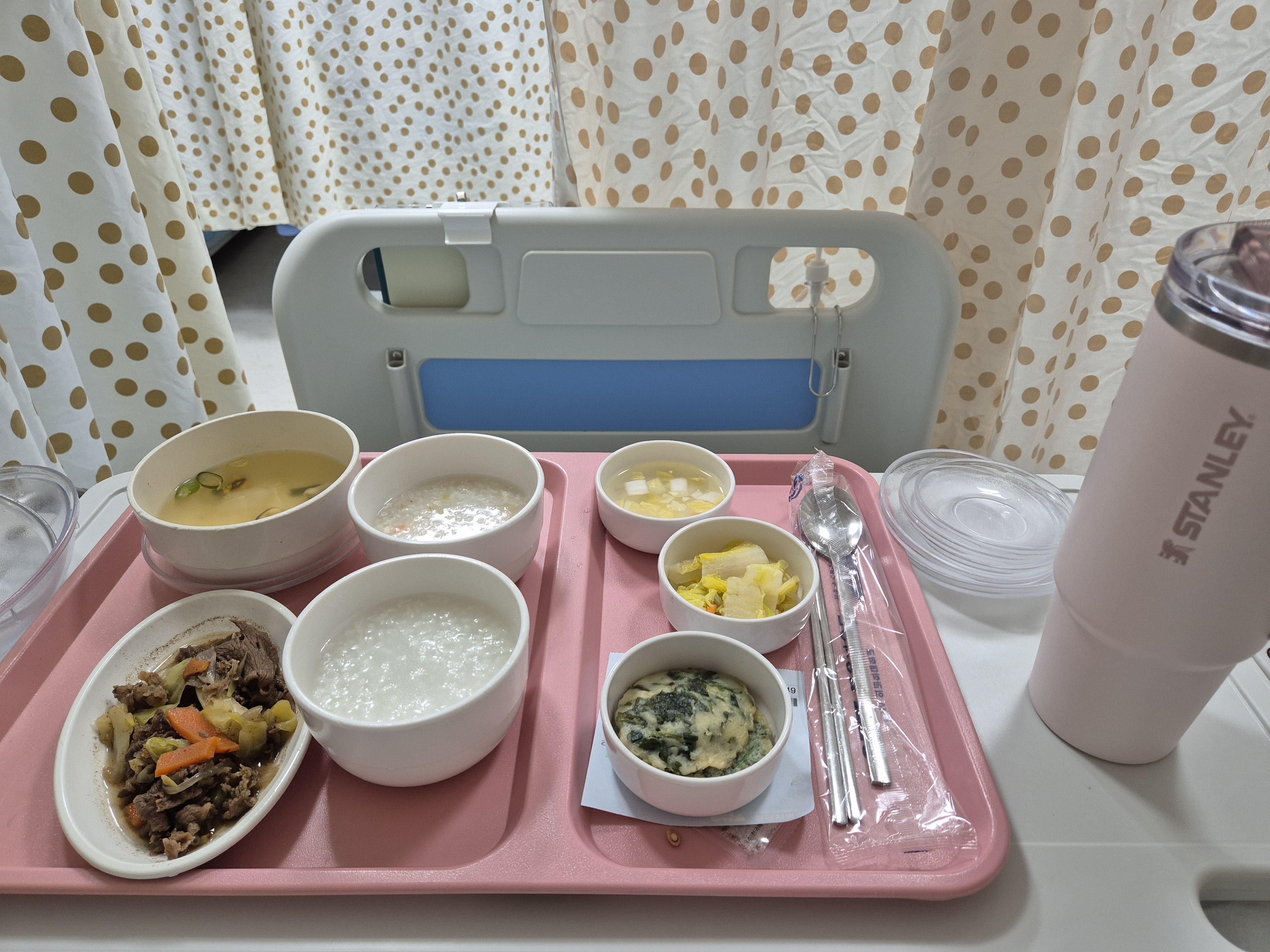 이제 회복하려면 잘 먹어야 한다. 내가 있던 곳은 간호사통합관리 병동?이라서 중증환자를 제외하고는 보호자가 상주할 수 없었는데, 식사시간이 되면 자리로 식사를 가져다주고 식사를 마치면 치워주시고 했다.