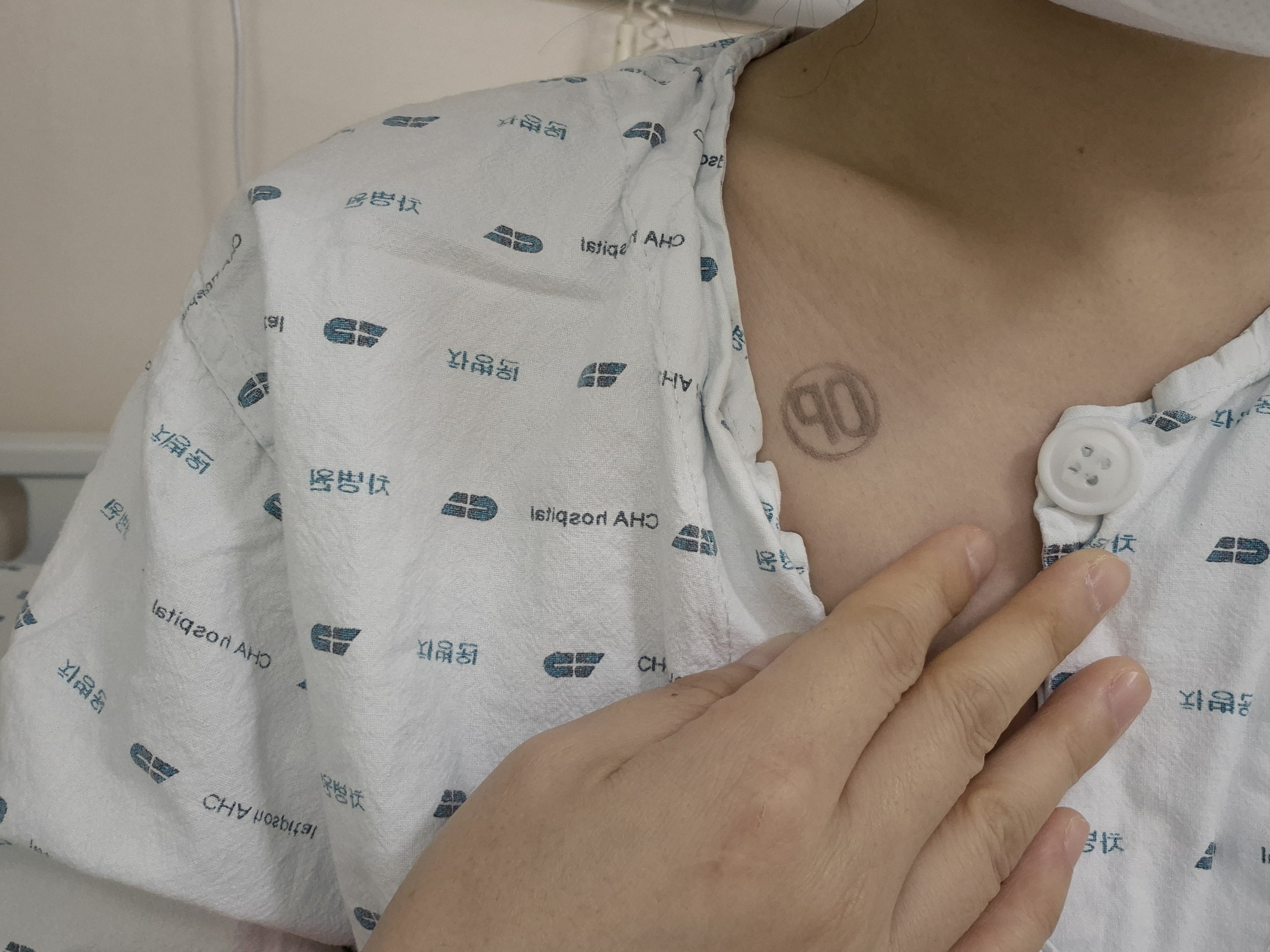 수술 3시간 전 수술 준비가 끝나면 머리를 양갈래로 묶고 수술 전 검사실로 향한다. 간호조무사 선생님들이 베드를 밀며 검사 장소로 이동시켜 주신다. 수술 전에 두 가지 준비를 하는데, 하나는 암이 있는 자리에 바늘을 꽂는 것이고 또 하나는 유륜 주사를 맞는 것이다. 소문으로는 이 유륜주사가 정말 아프다고 들어서 걱정을 했는데, 나는 바늘 꽂는 게 너무 아파서 유륜 주사는 기억도 나지 않는다.