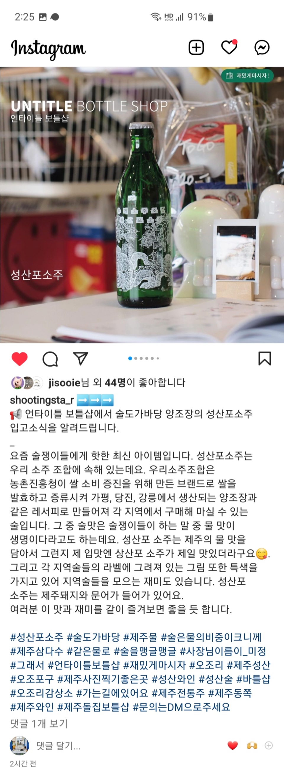 제주스런 보틀샵, 서귀포시 성산에 위치한