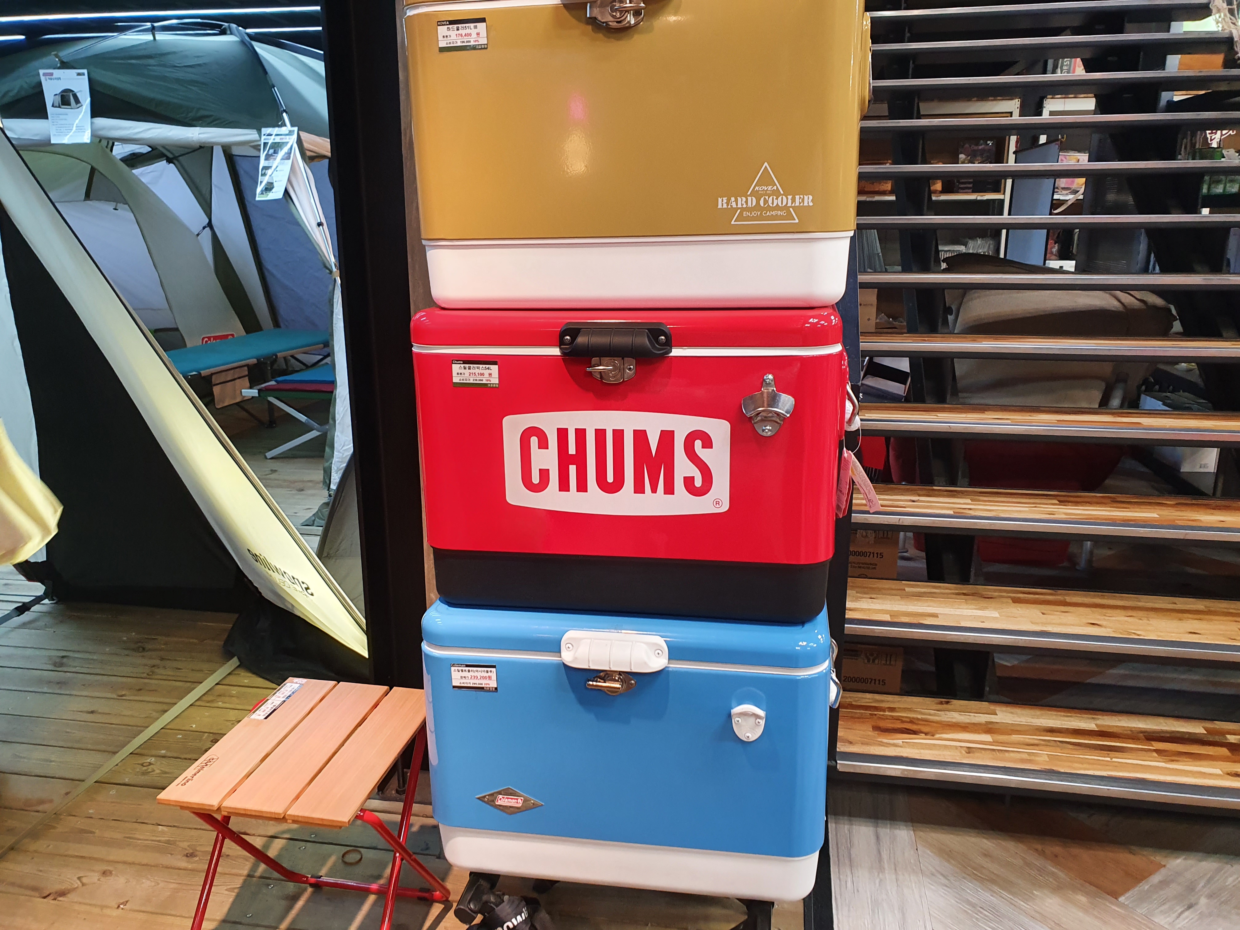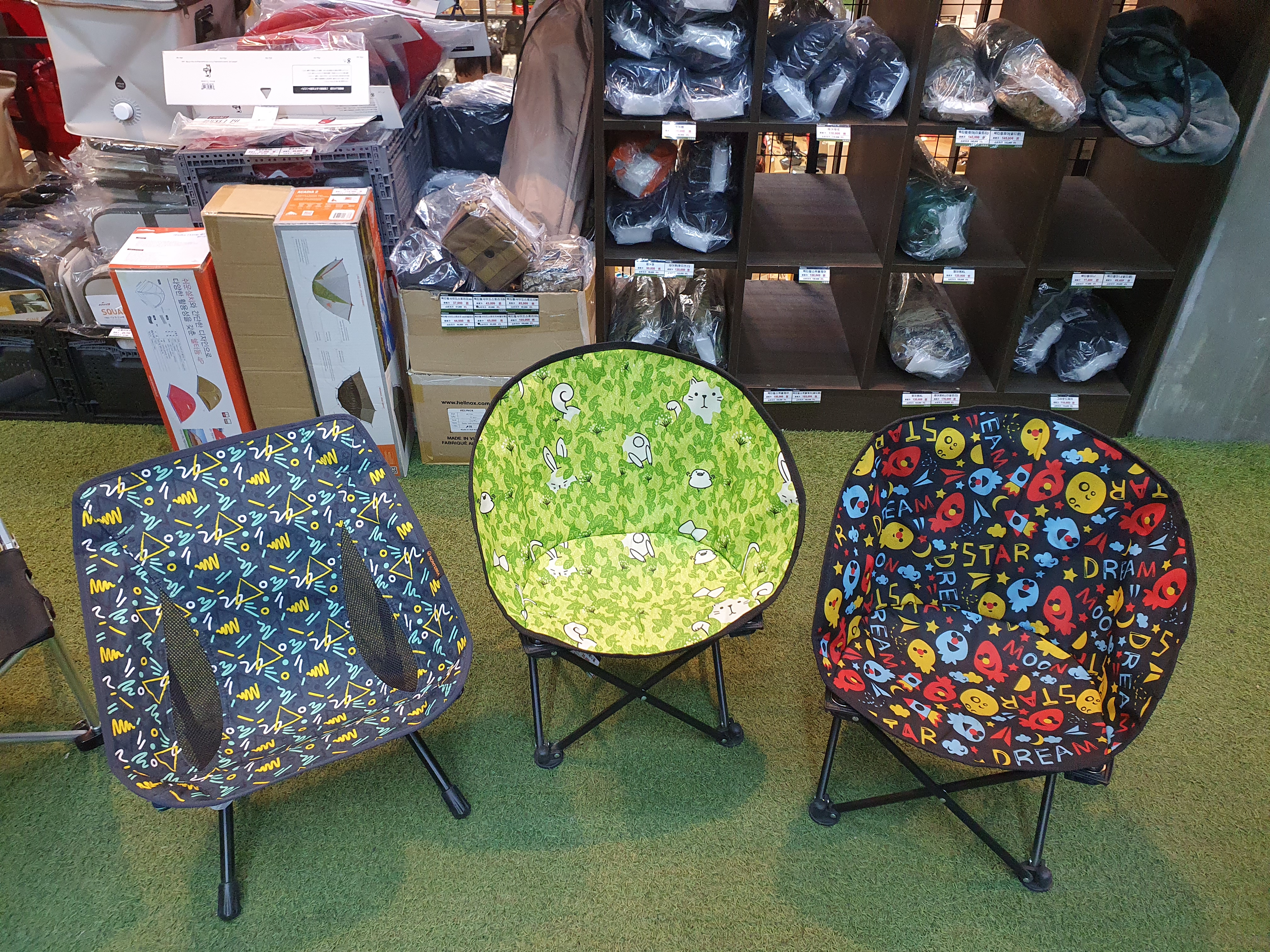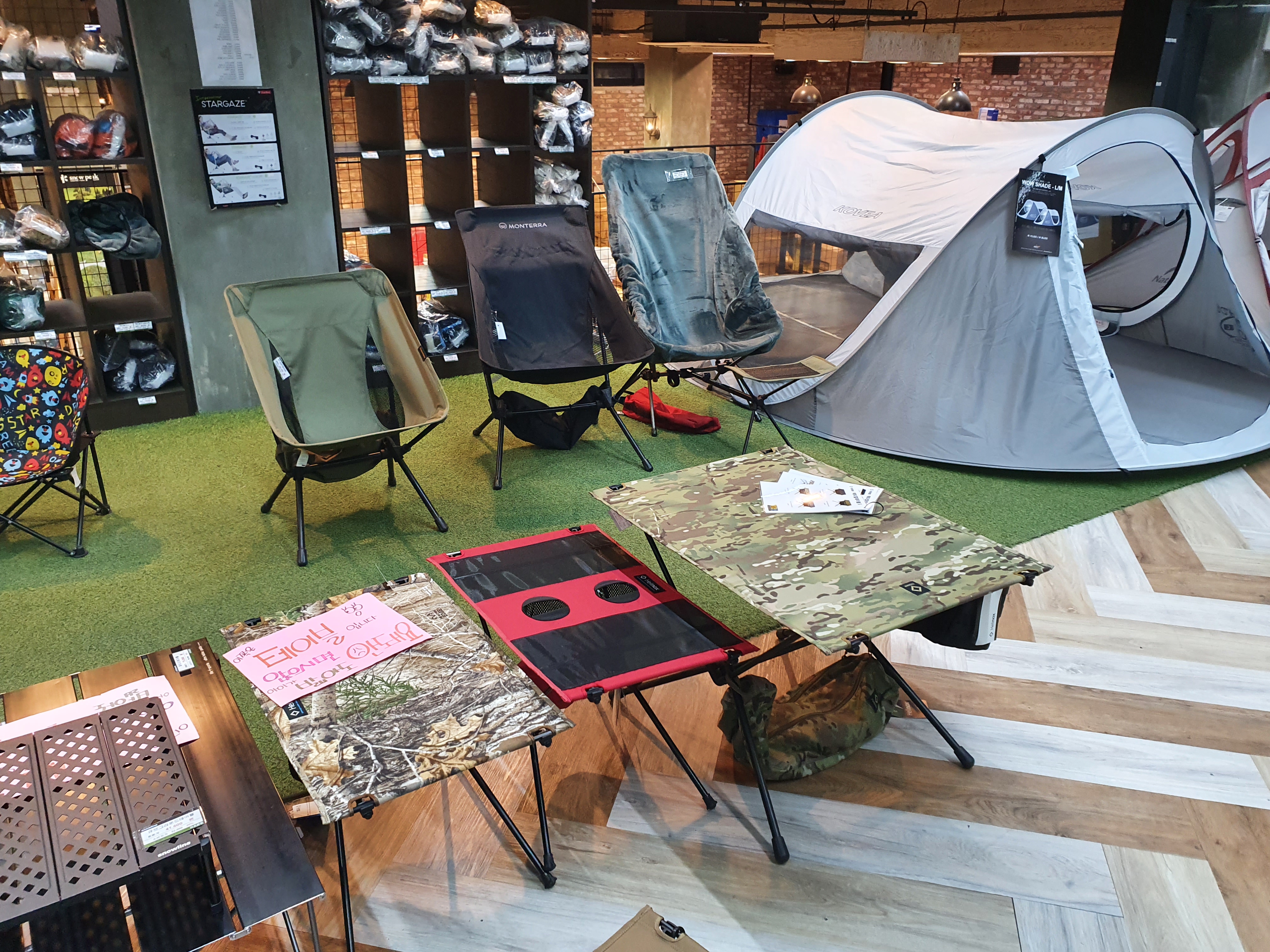 그리고 캠핑 체어들이 전시되어있다