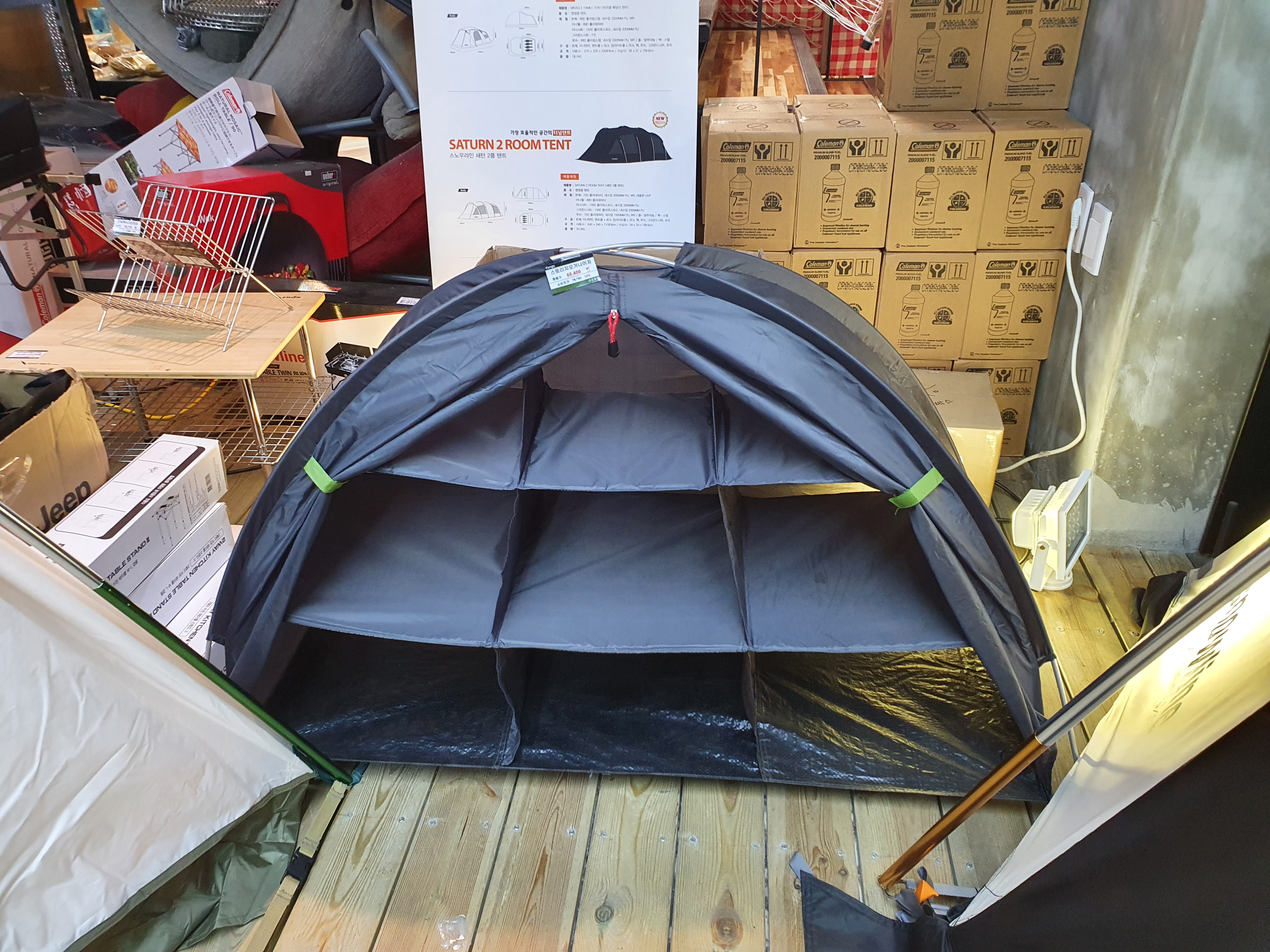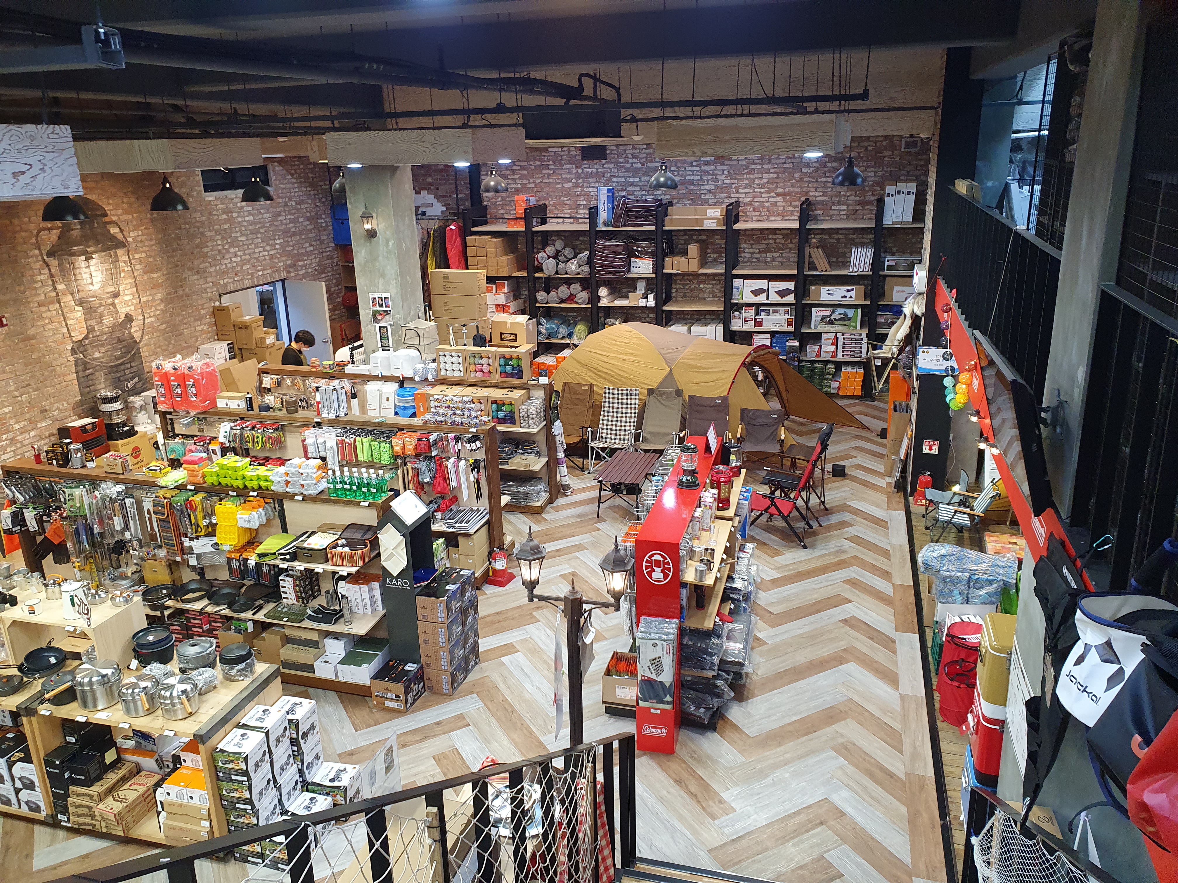 반층 내려가면 각종 테이블과 텐트
