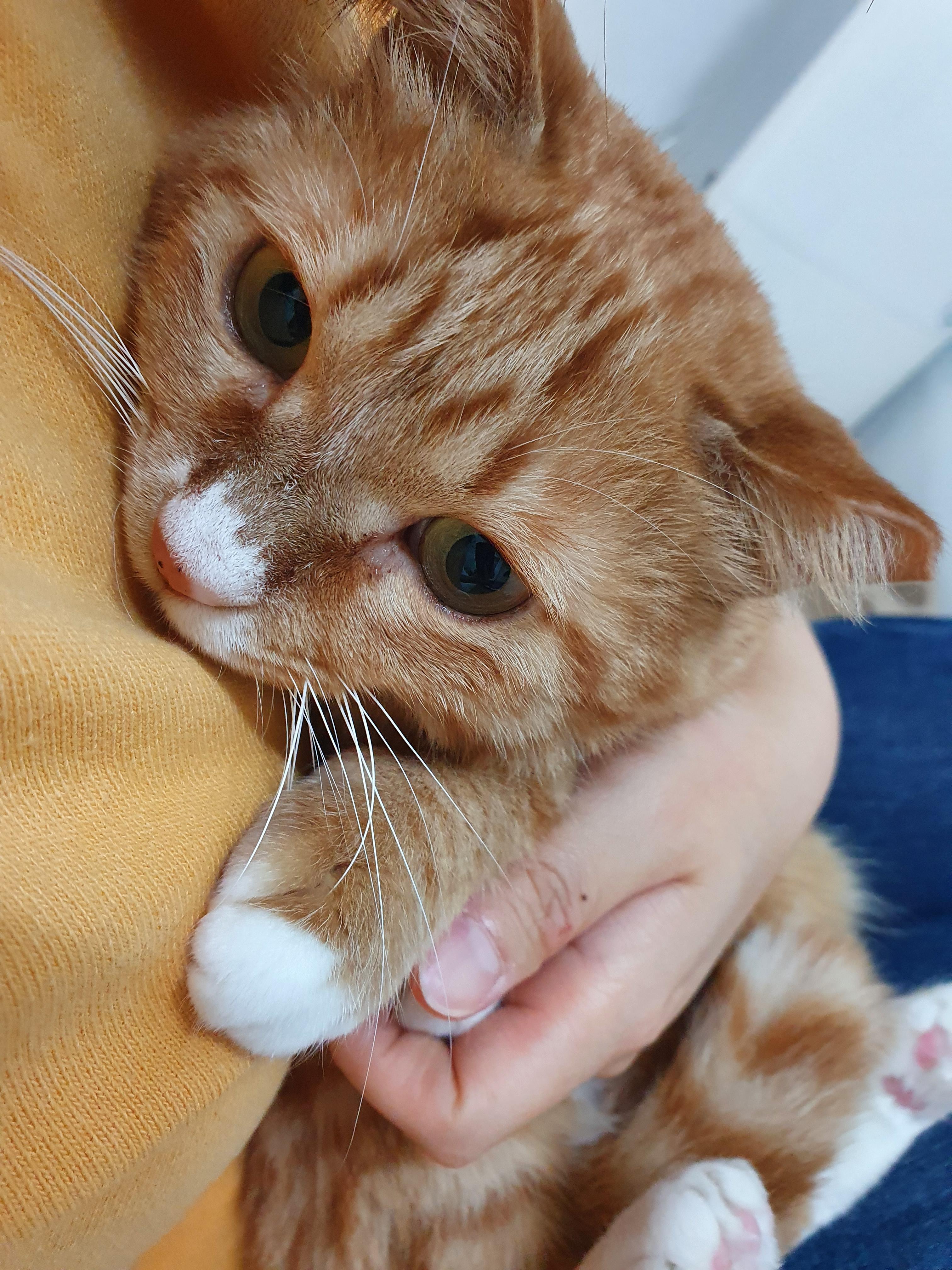 겁이 많지만 사람과 고양이를 무척 좋아함