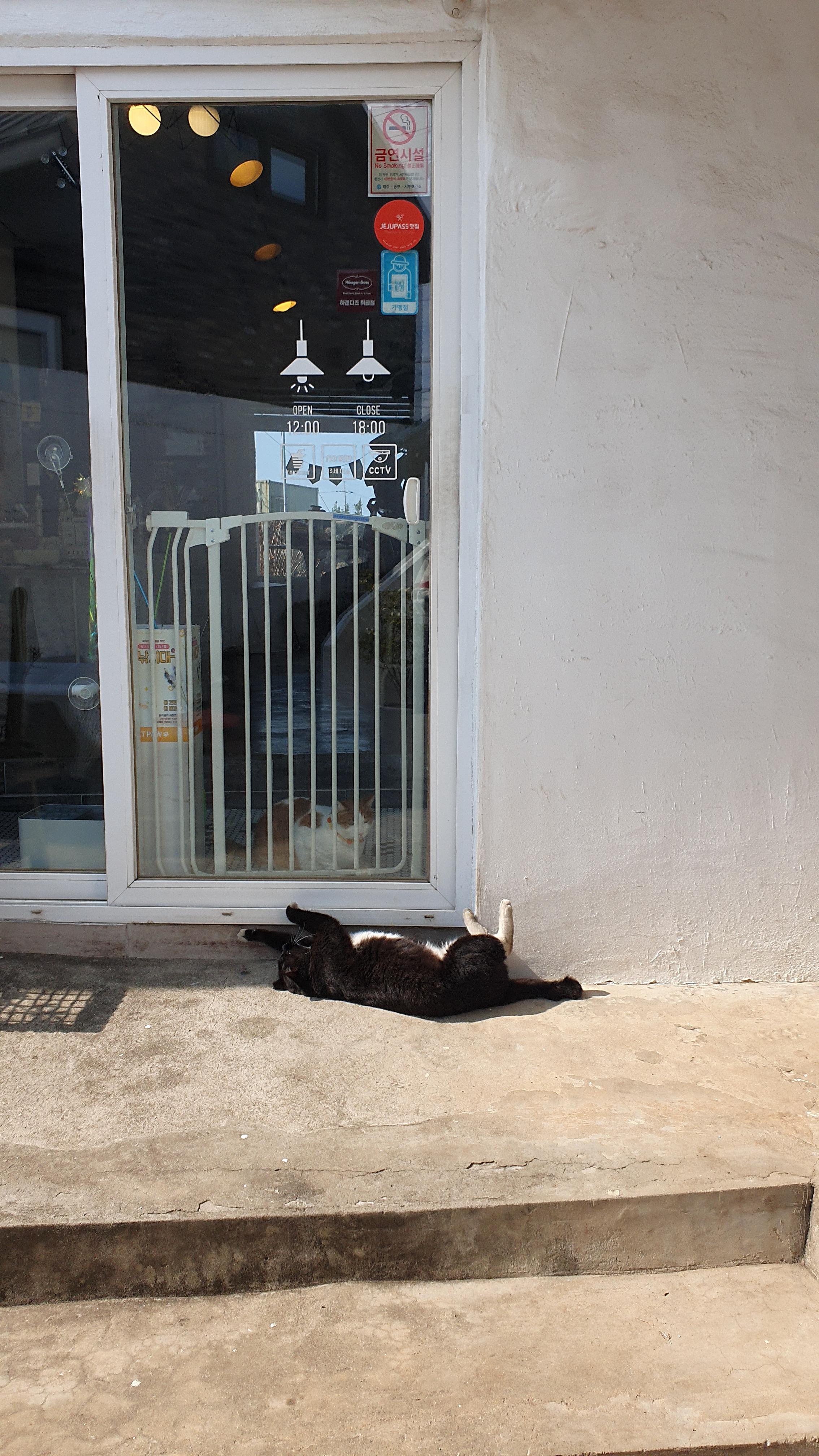 카페 창문을 통창으로 바꾼 후 가장 좋은 건 쏟아지는 햇살을 받으며 잠든 고양이를 볼 수 있다는 것이다. 햇살이 카페 안으로 들어오는 시간 채영이는 어김없이 따뜻한 햇살을 따라 자리를 옮
