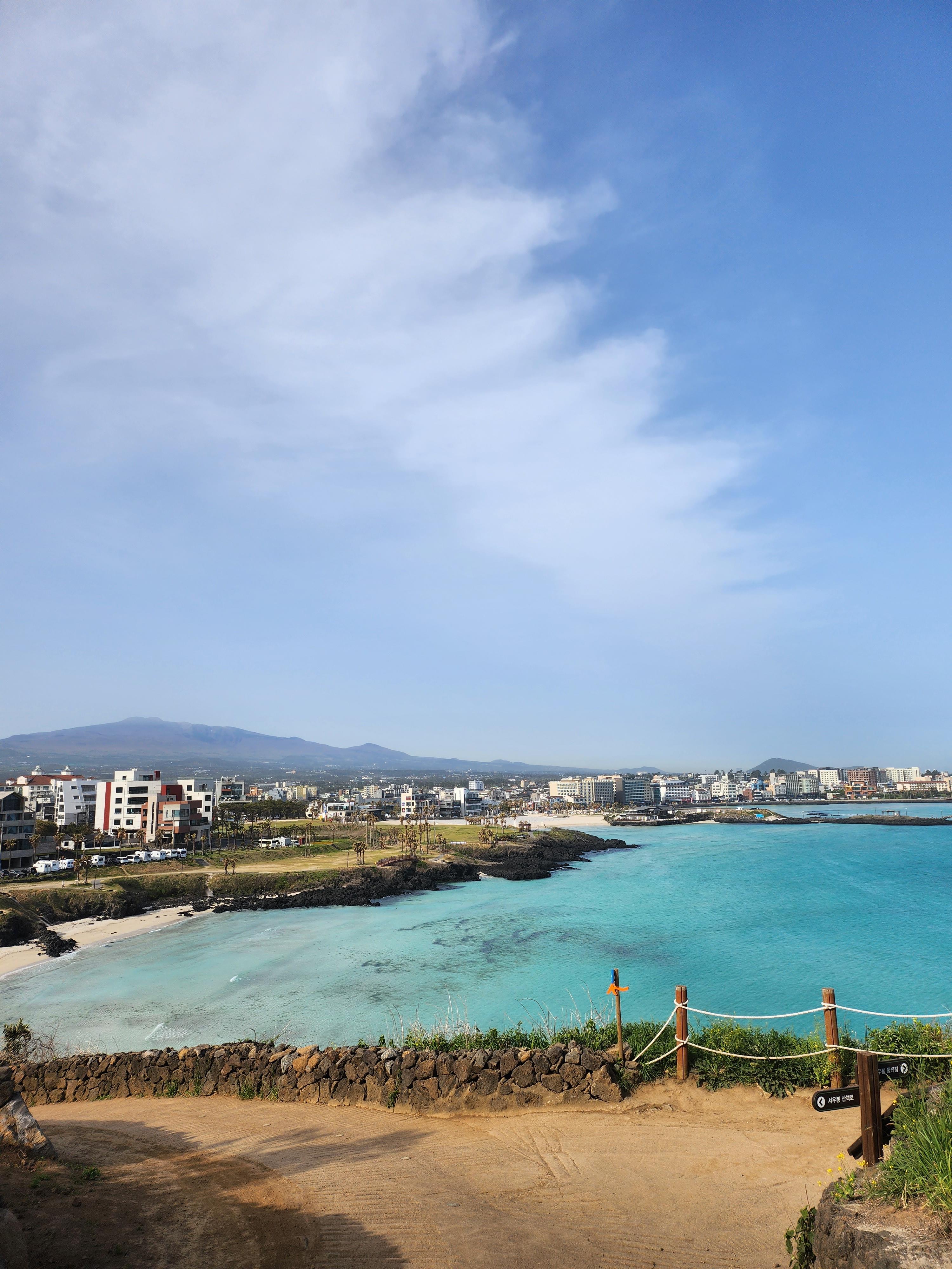 함덕 서우봉은 함덕 해수욕장 오른편에 위치한 오름인데, 5분 정도만 올라가도 함덕 바다를 멀리까지 시원하게 볼 수 있어서 자주 가는 곳이다. 약간 오르막이지만 짧은 코스이고, 정자까지만 올라가면 바다를 옆에 두고 둘레길을 걷거나 정상까지 올라갈 수 있다.