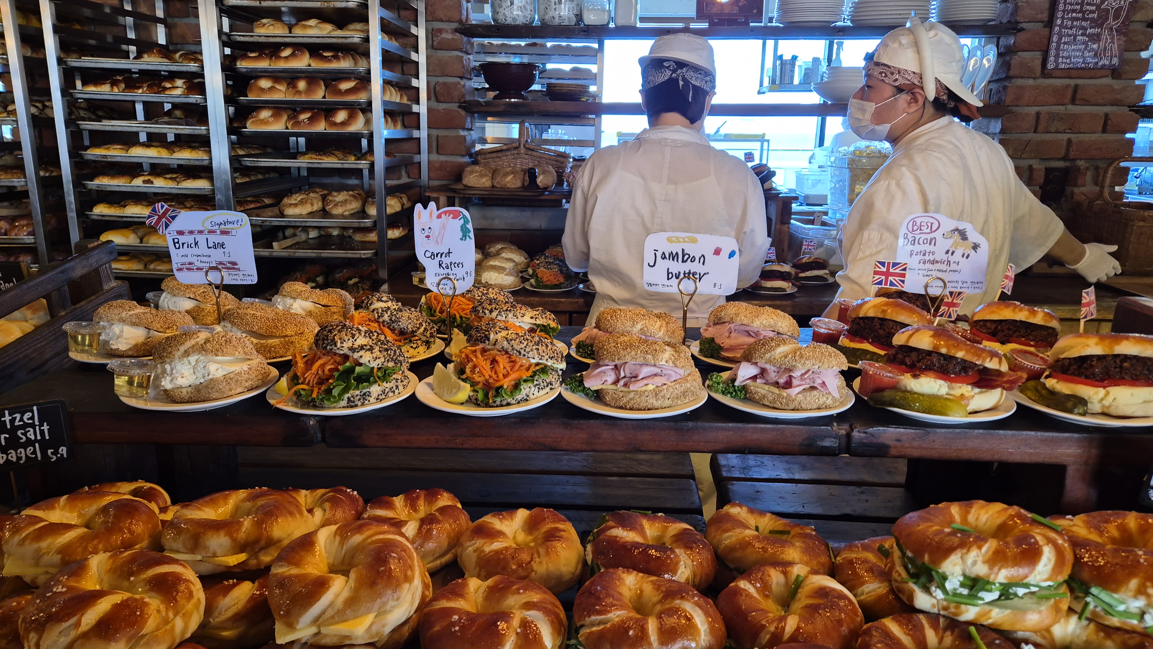 캐치테이블로 미리 웨이팅을 걸어둔 런던베이글에서 베이글을 포장했다.