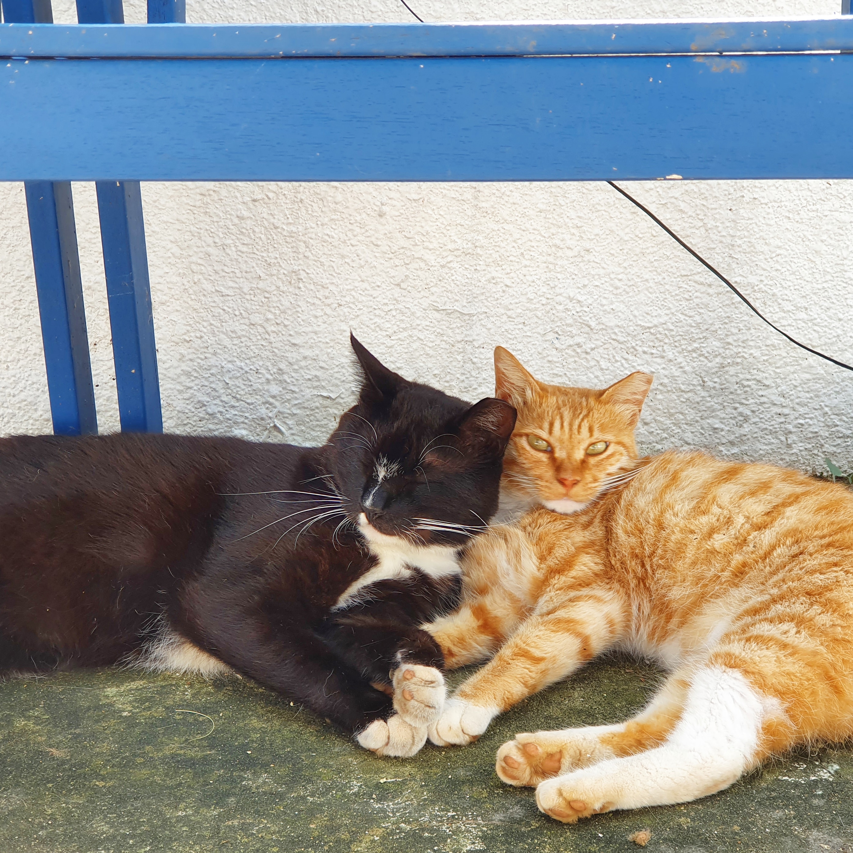 육지는 장맛비로 난리인데, 제주도는 그에 비해 비가 많이 내리지는 않았다 가끔 이렇게 쨍한 여름 하늘도 보여주는 제주도 구좌읍 김녕의 날씨 이 더운날도 고양이들은 덥지도 않은지 꼭 붙어
