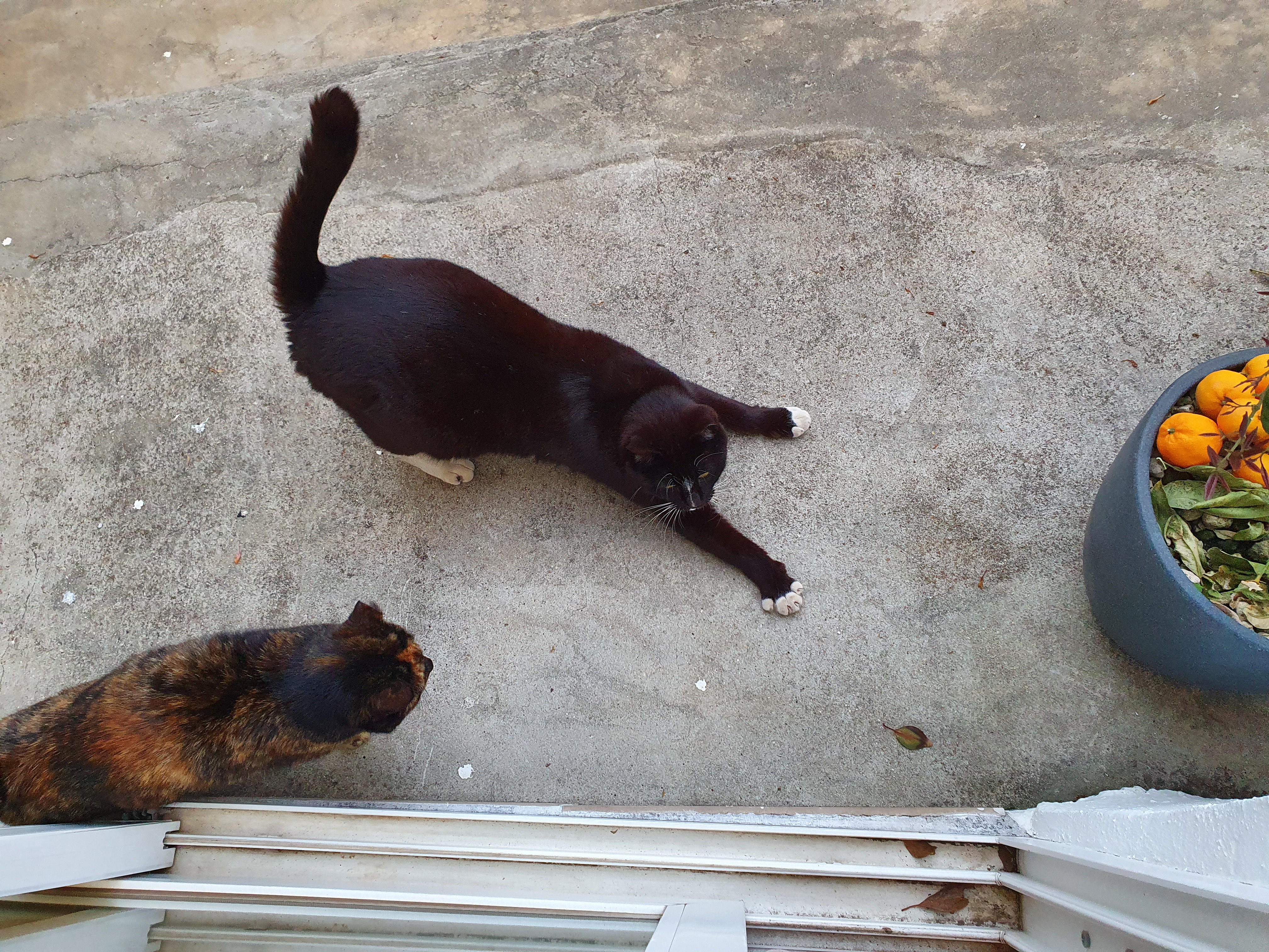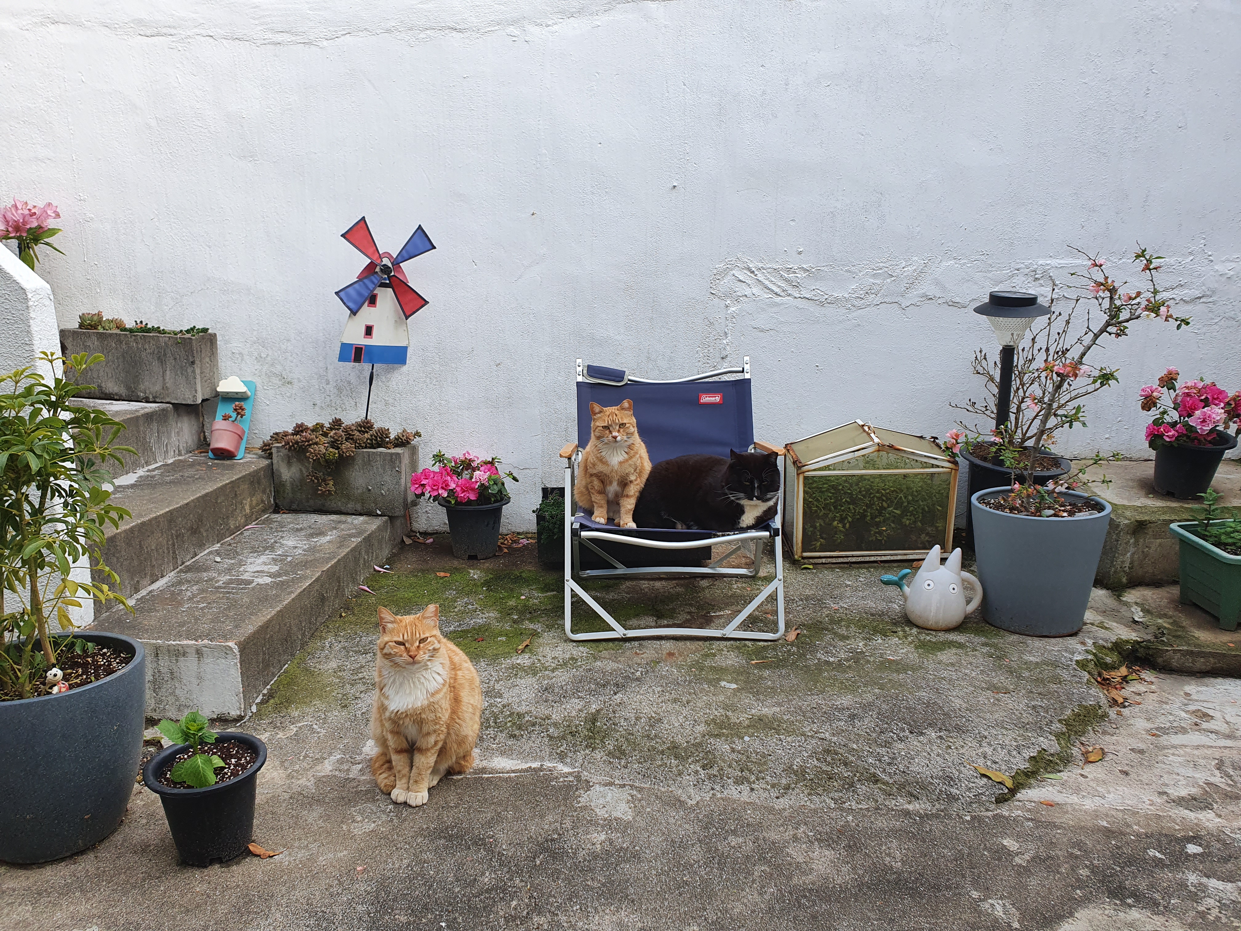 고양이들이 마당에 있는 일이 더 많아지긴했다