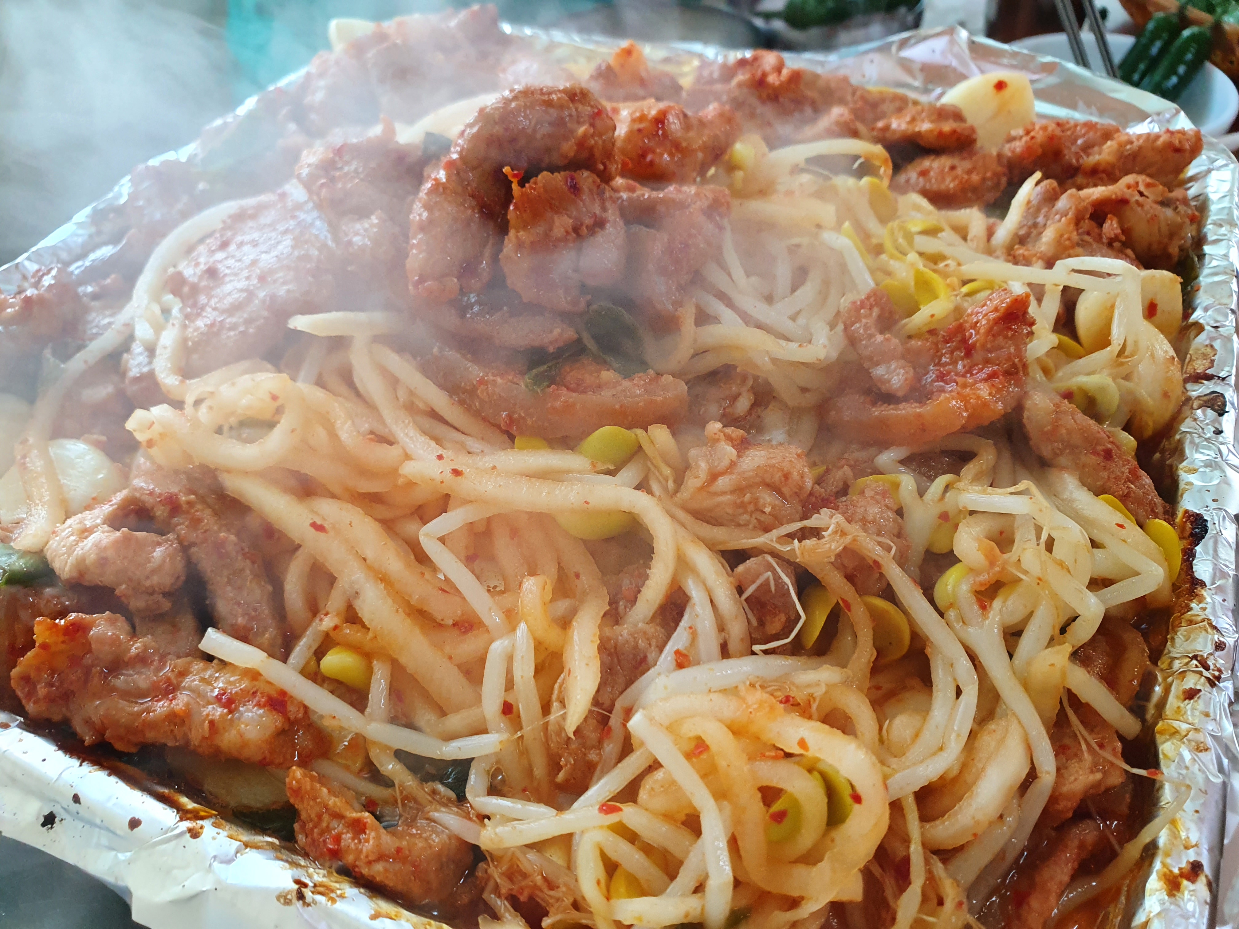 두루치기에 함께 나온 콩나물과 무생채를 넣어
