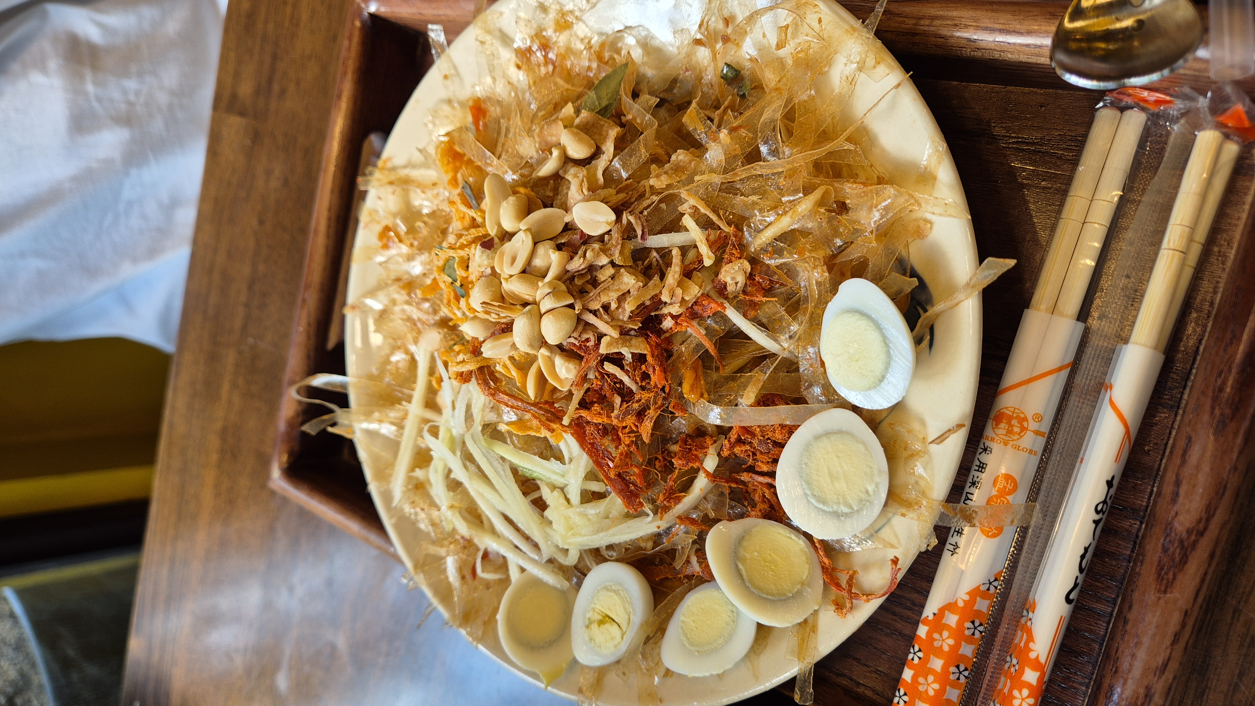 유튜브에서 봤던 음식인데 라이스페이퍼를 잘라 피쉬소스등을 넣고 약간 매콤하게 무쳐먹는 간식이다.