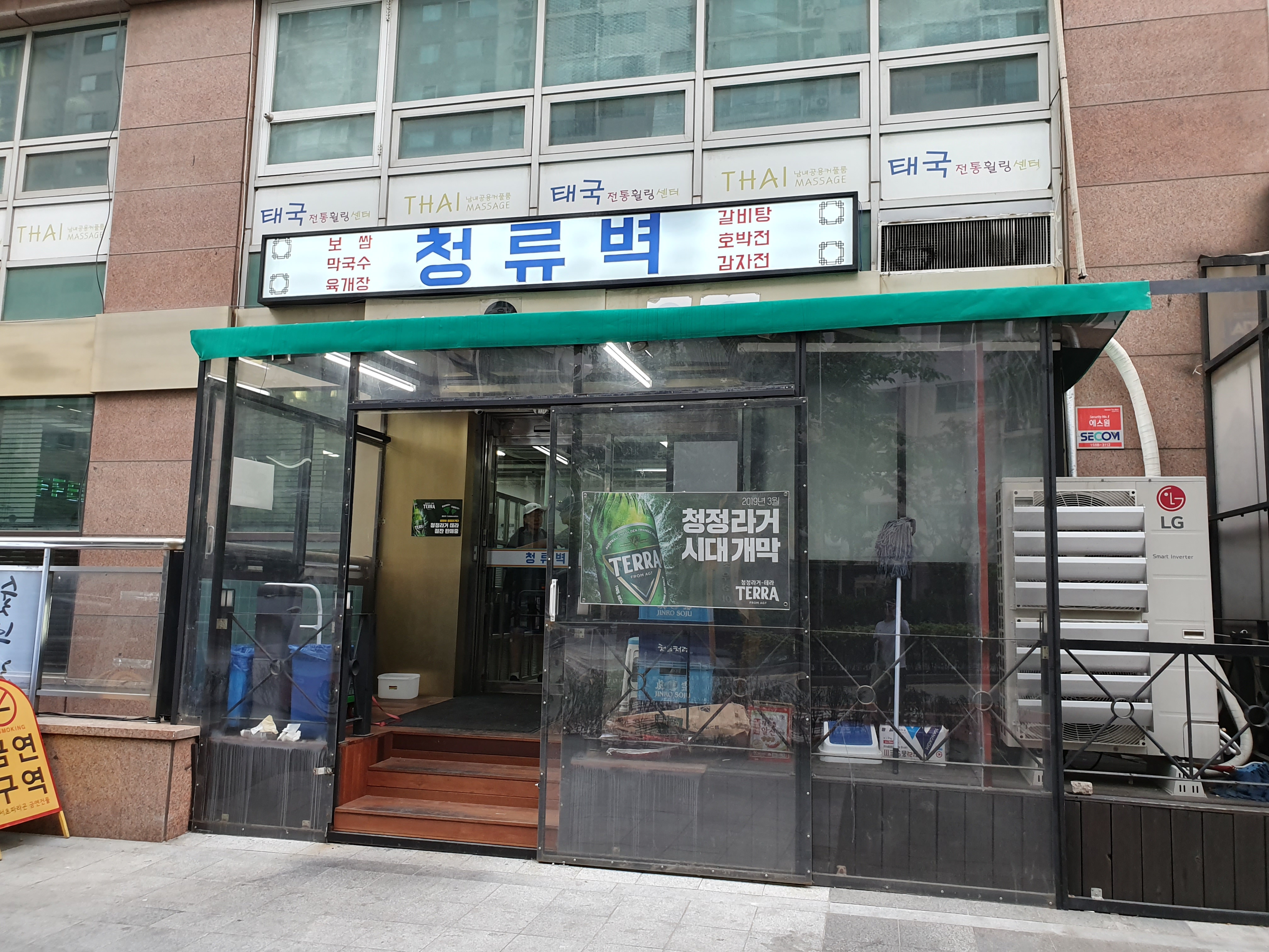 아파트 단지쪽에서 바라보는 식당 정면은 이렇게 생겼다