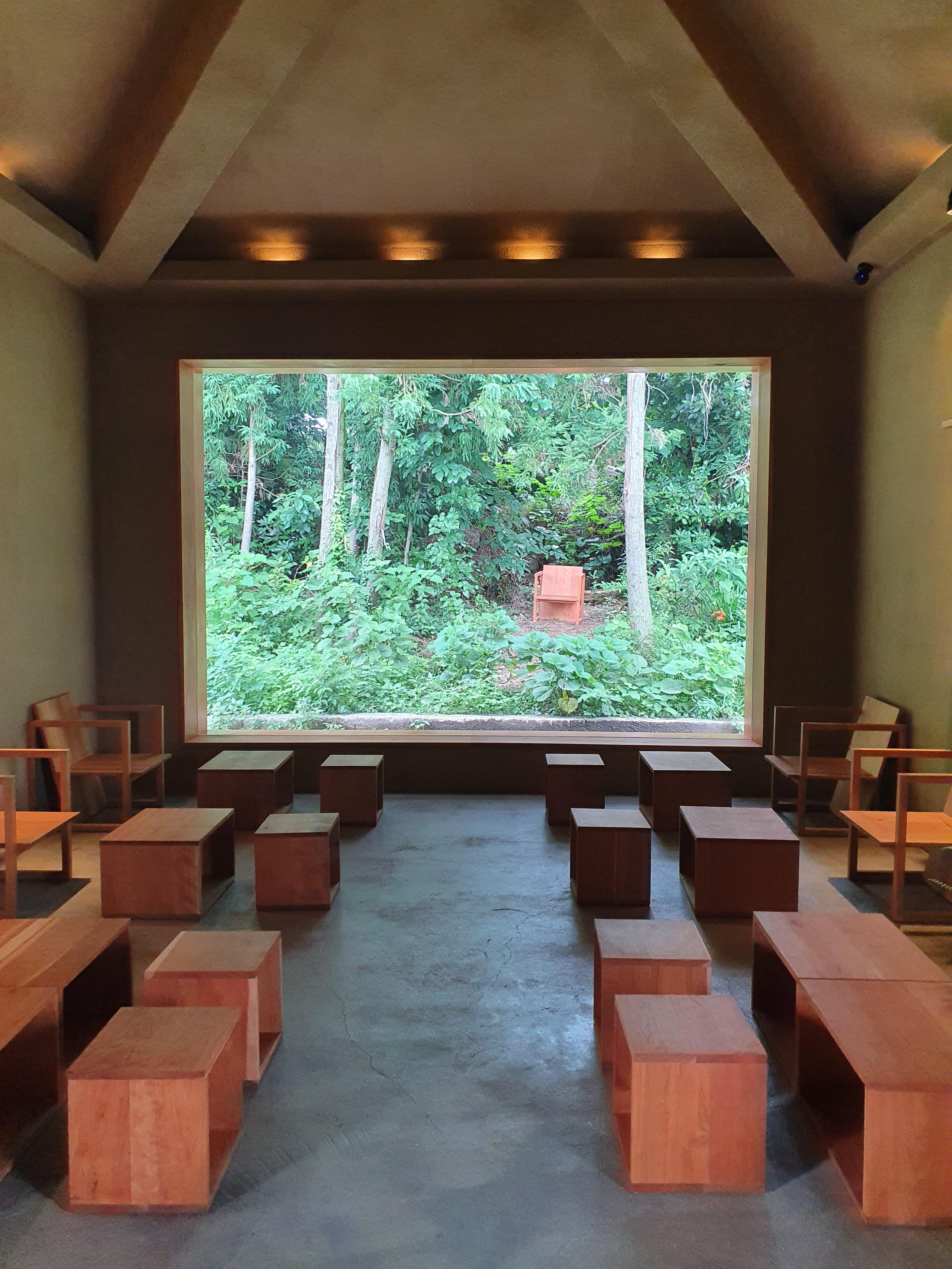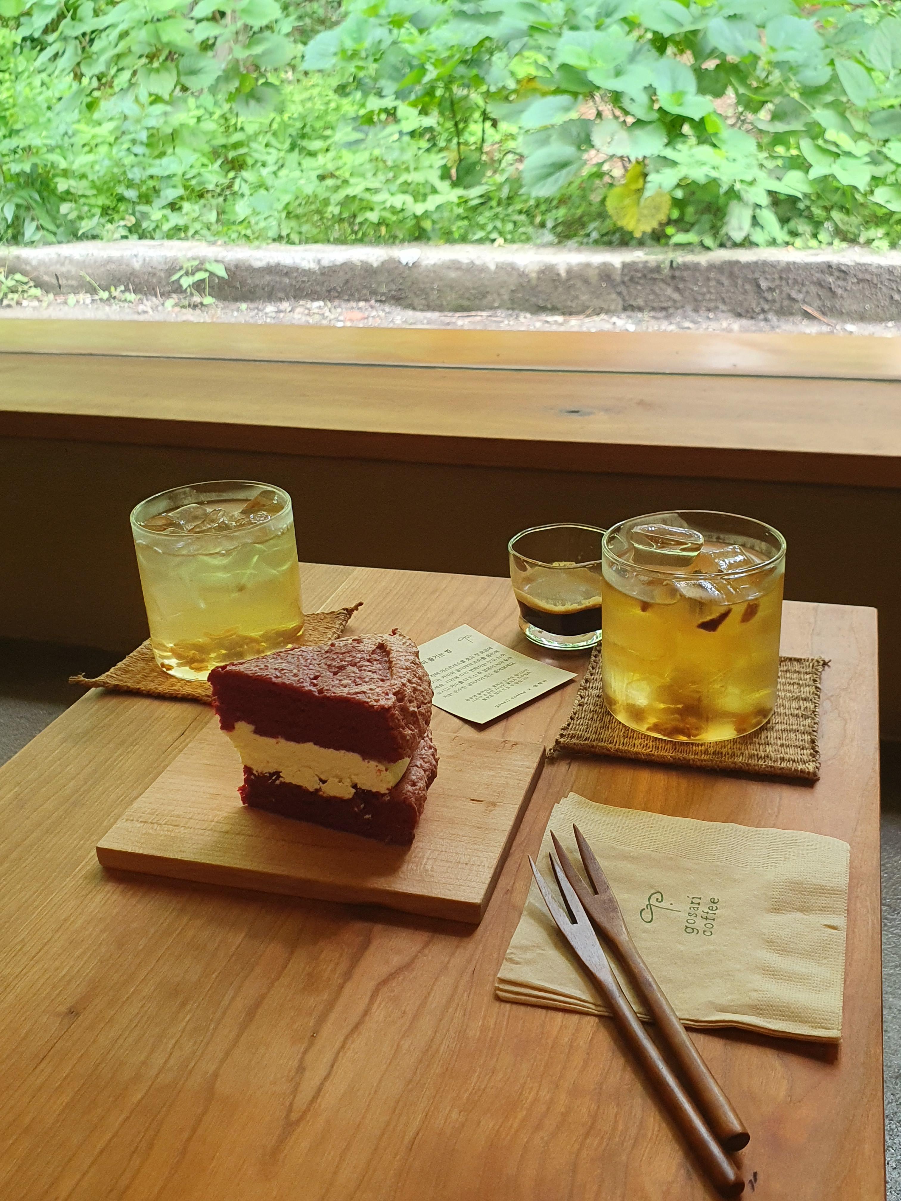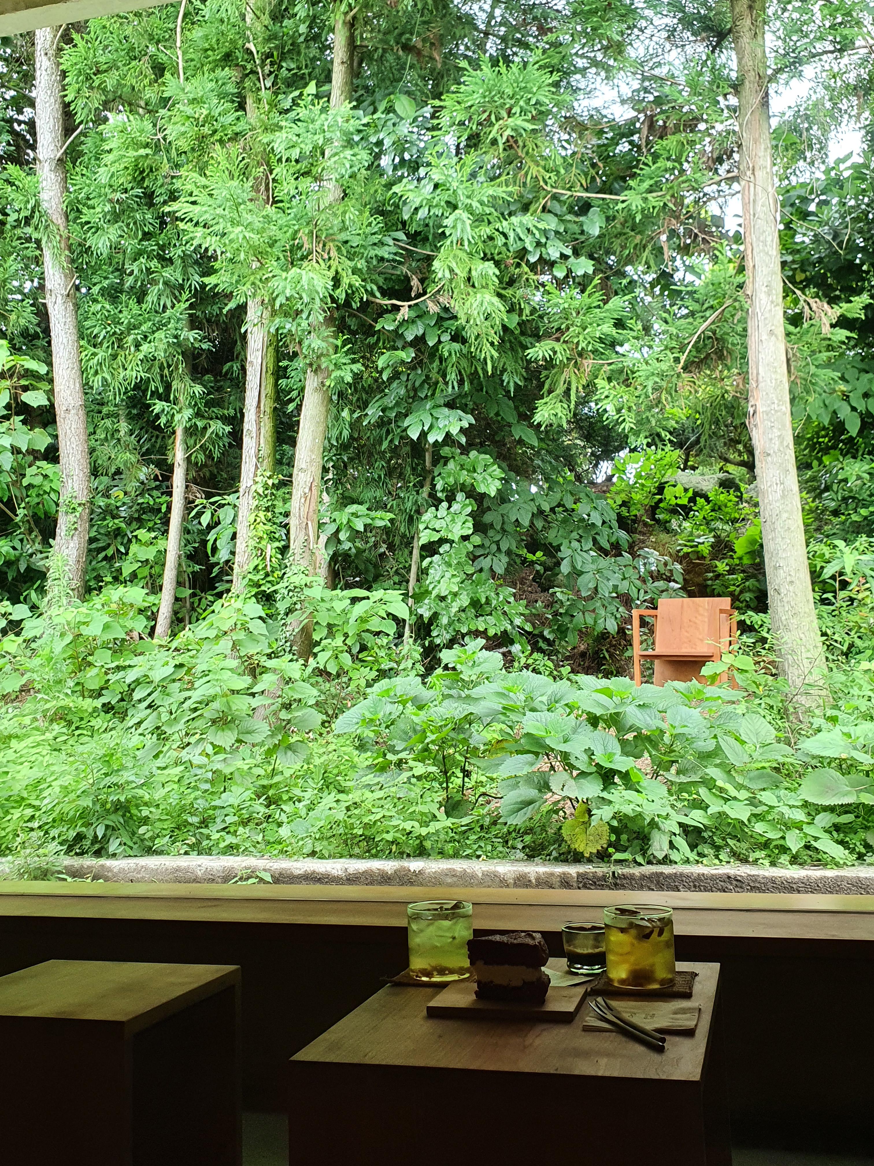 큰 창으로 초록잎을 바라보니 어쩐지 기분이 묘해지는 곳.