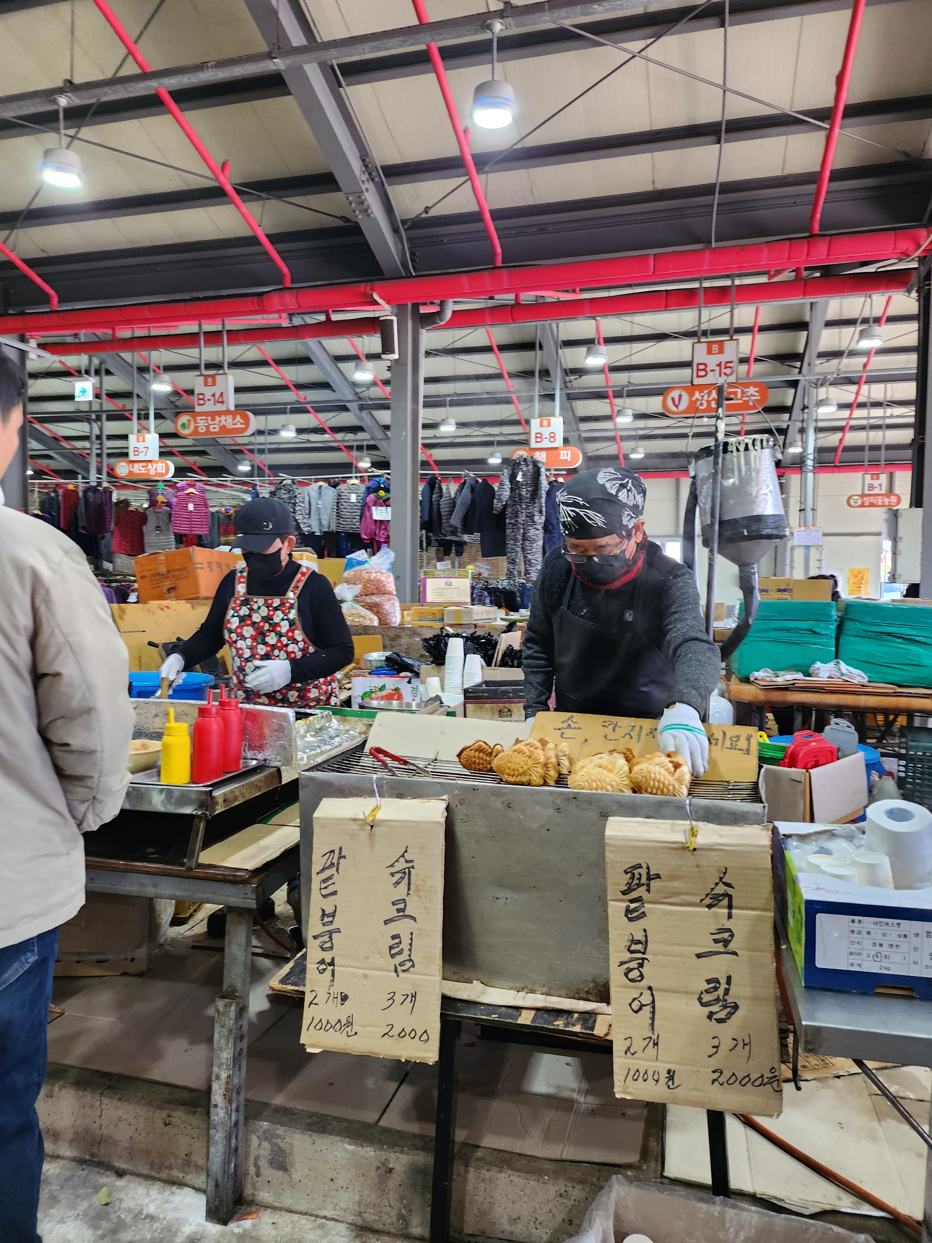 하지만 역시 오일장의 꽃은 군것질 아니겠는가? 세화 오일장에서 자주 사먹었던 삼춘들이 고성 오일장에서도 호떡과 붕어빵을 판매하고 계셨다.