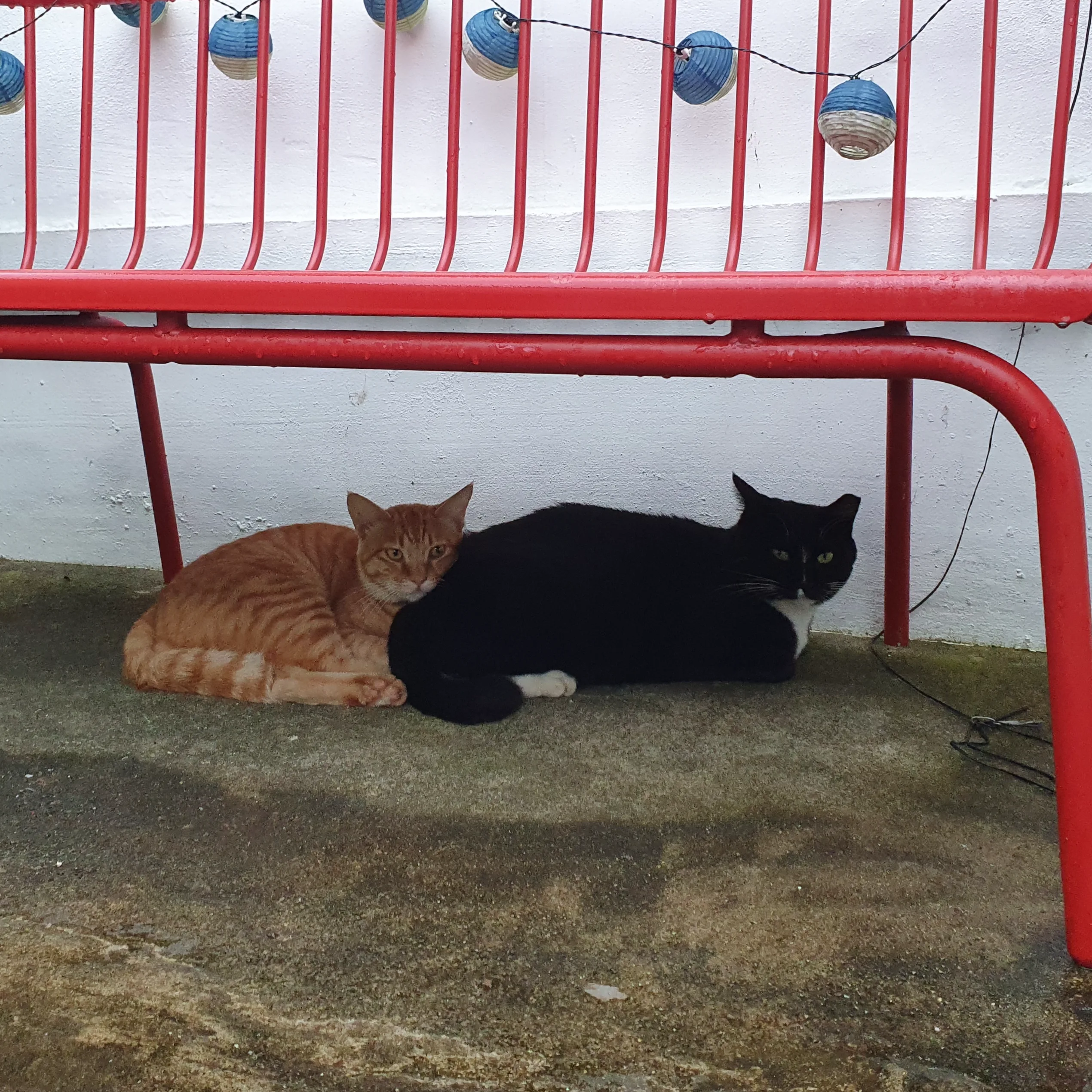 비가 잠시 그친 틈에 치즈들과 필통씨가