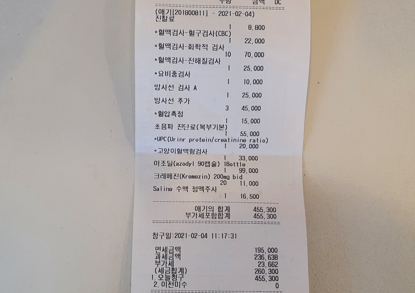 크레메진이 추가되어 45만원이 청구되었다